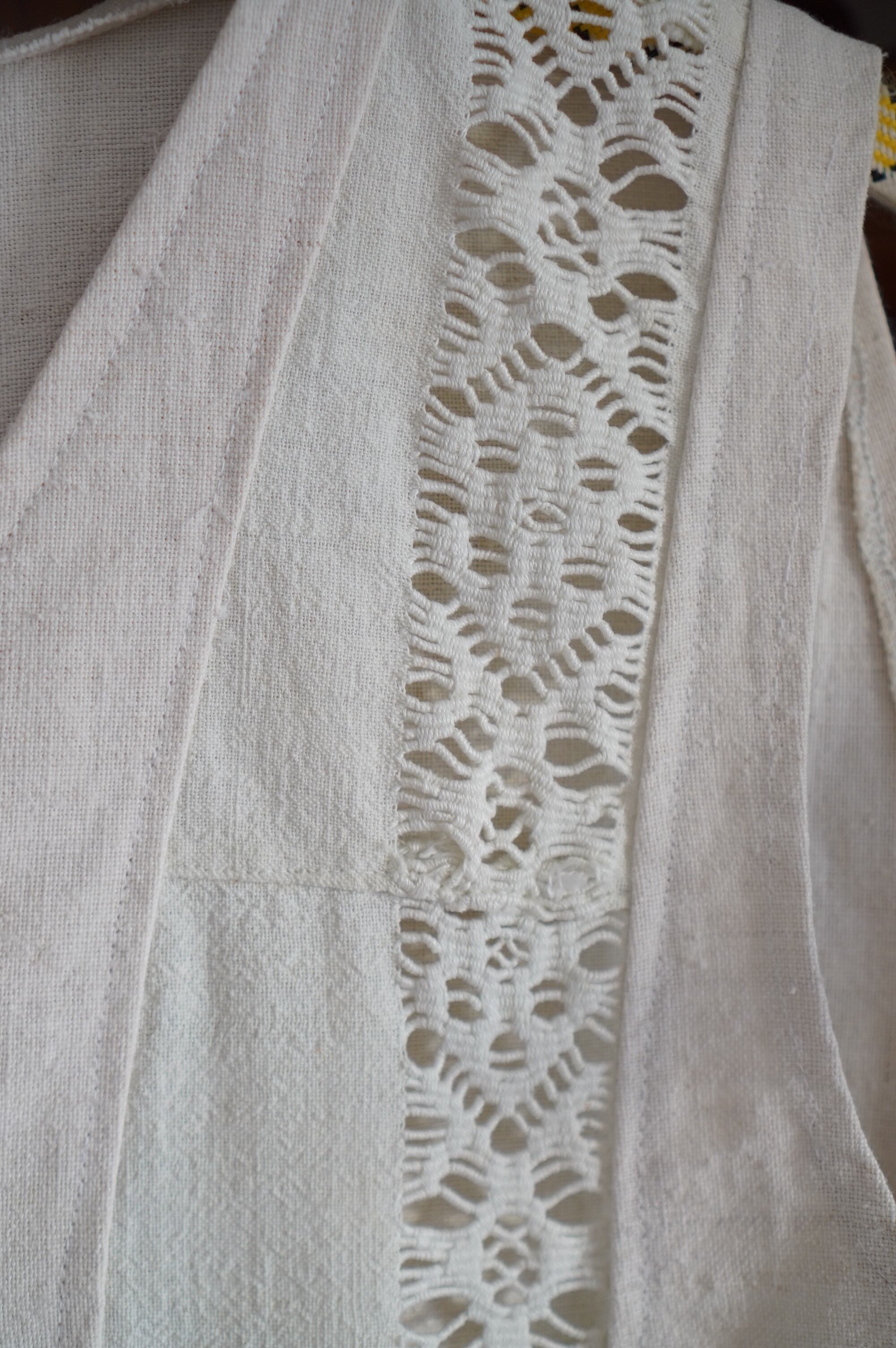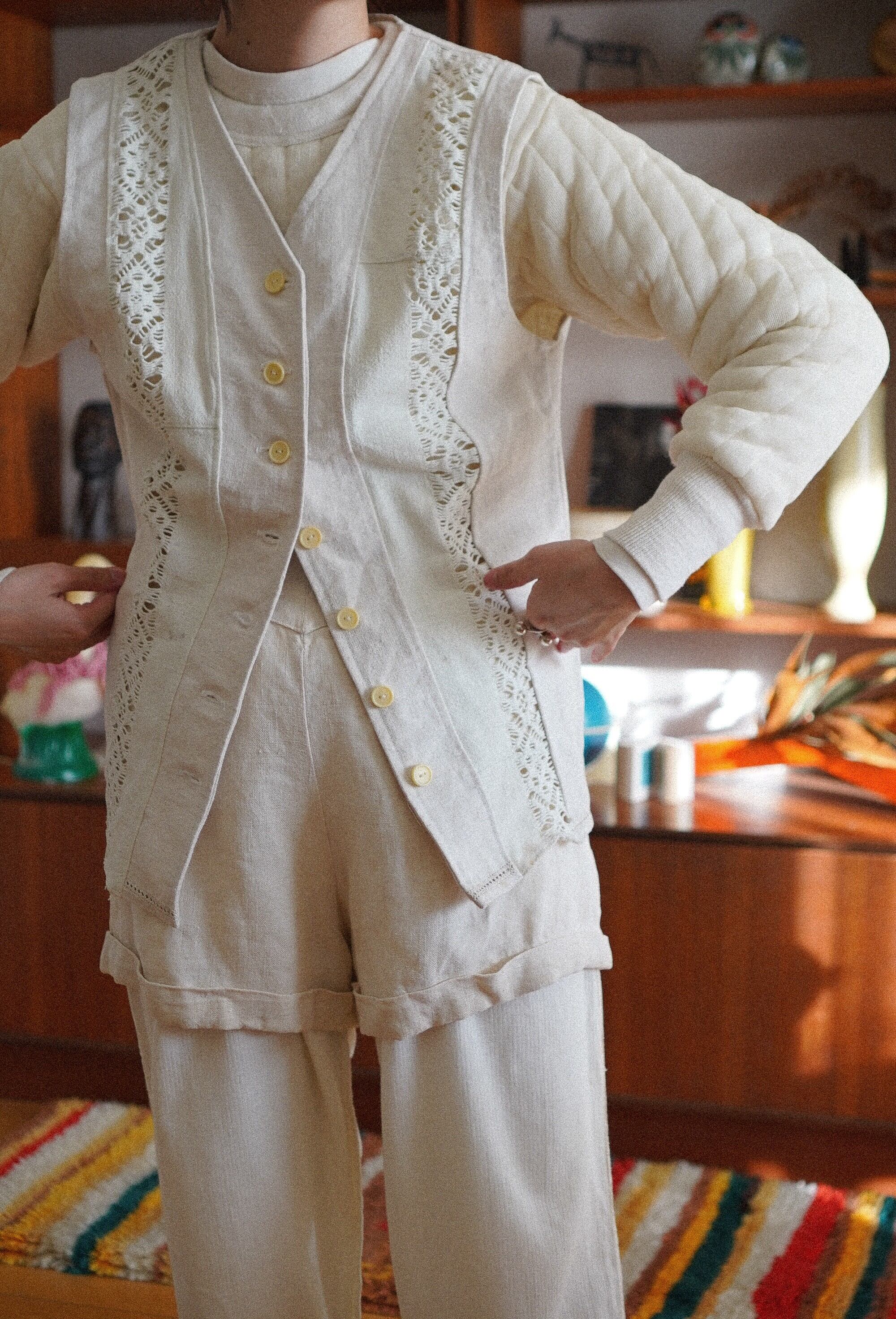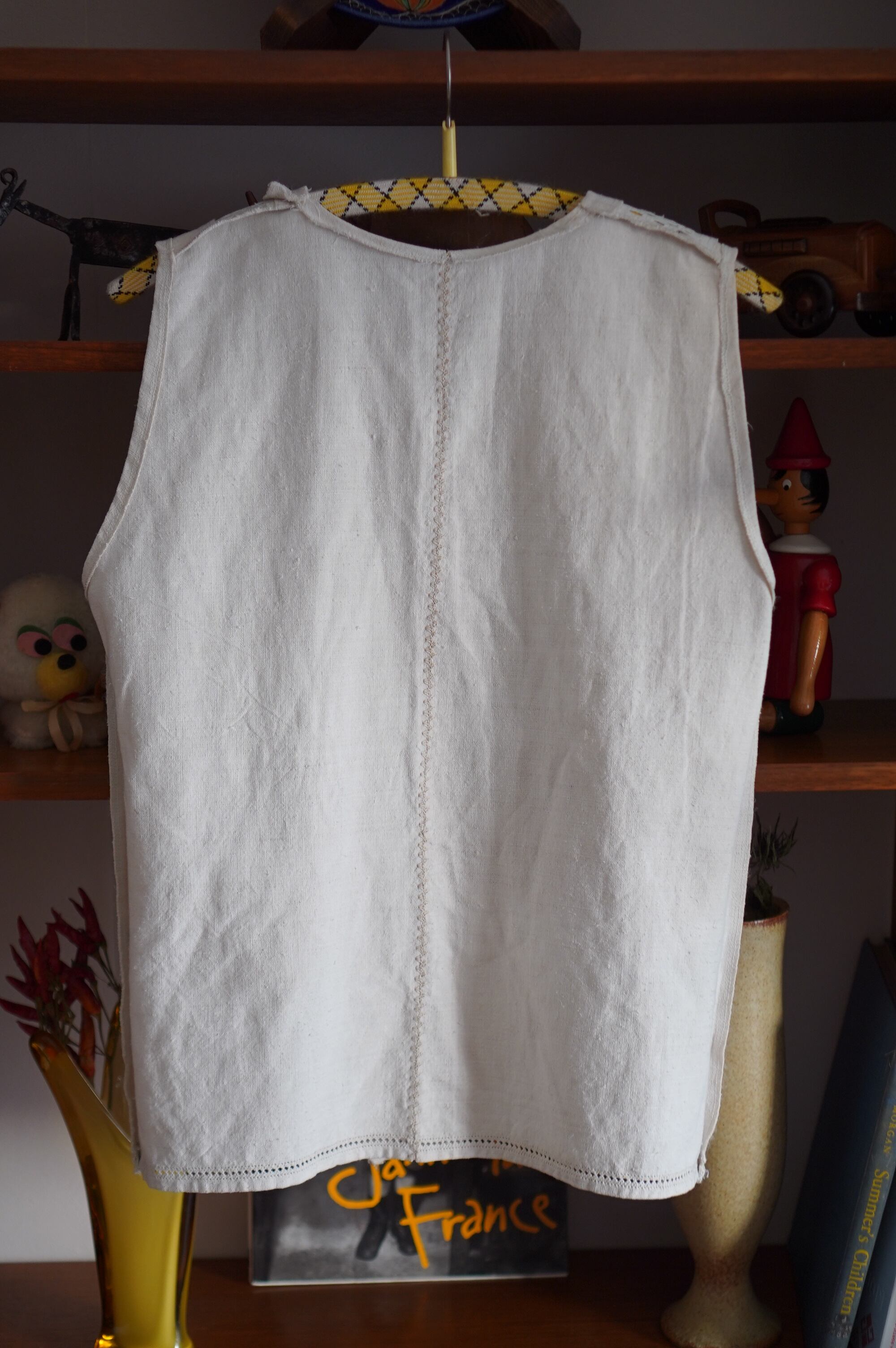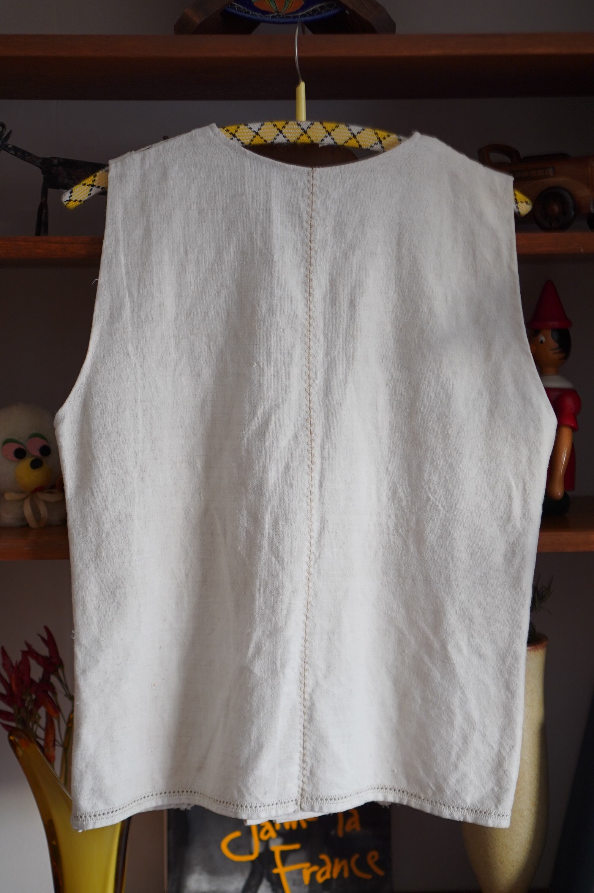 ヴィンテージの厚手なコットンリネン生地でつくられたベスト。