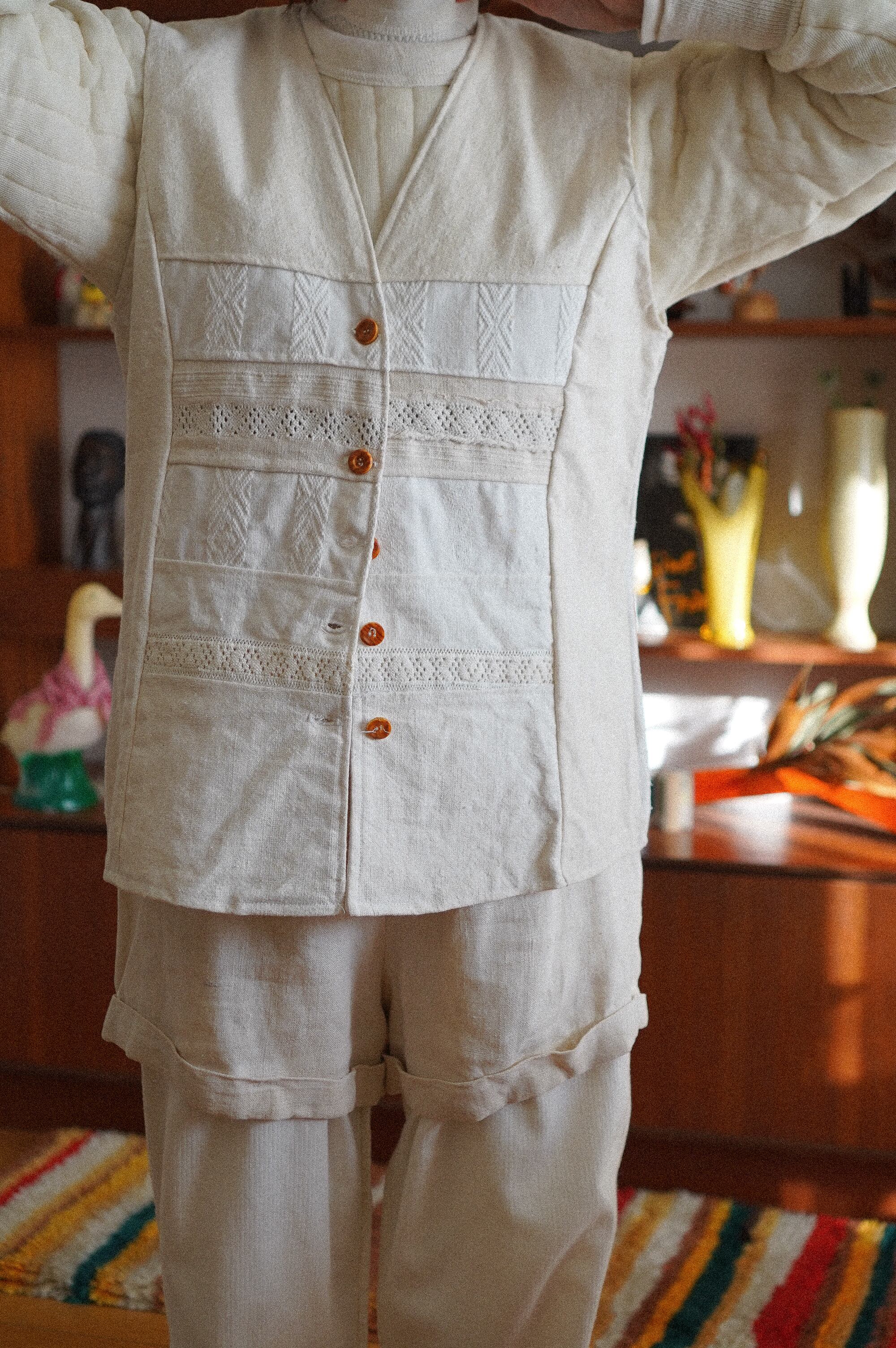 ヴィンテージの厚手のコットンリネン生地でつくられたベスト。
