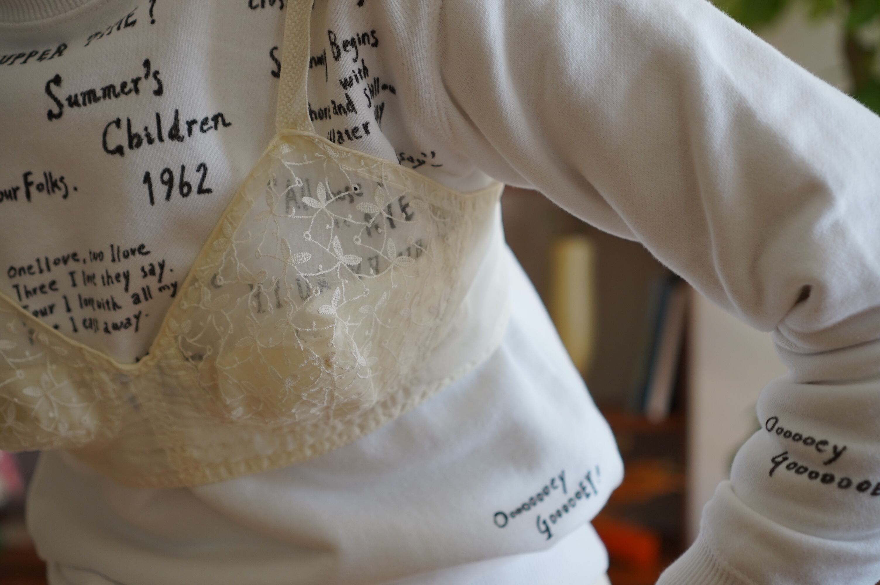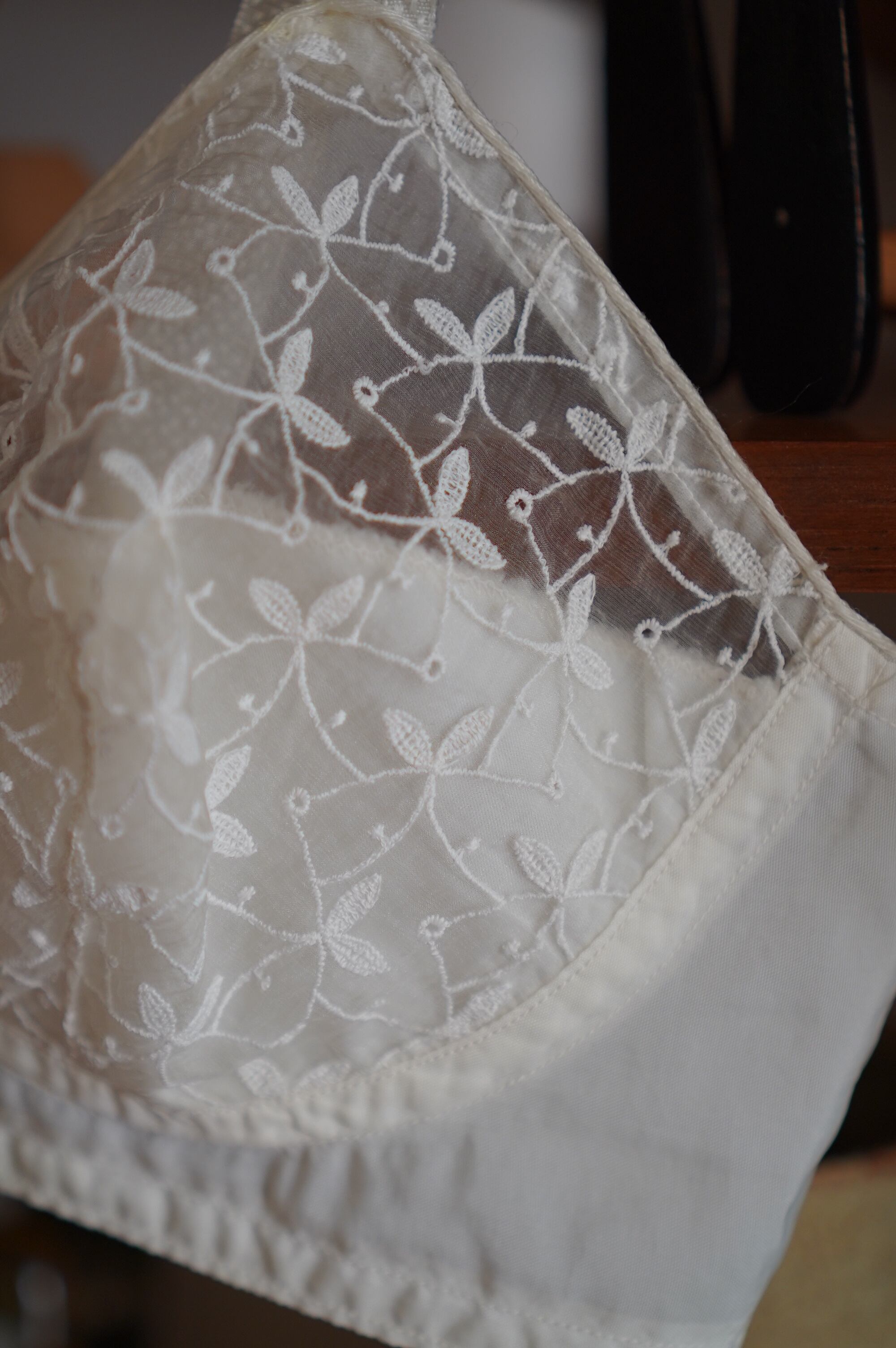 透け感のある生地に刺繍が施されているヴィンテージブラ。