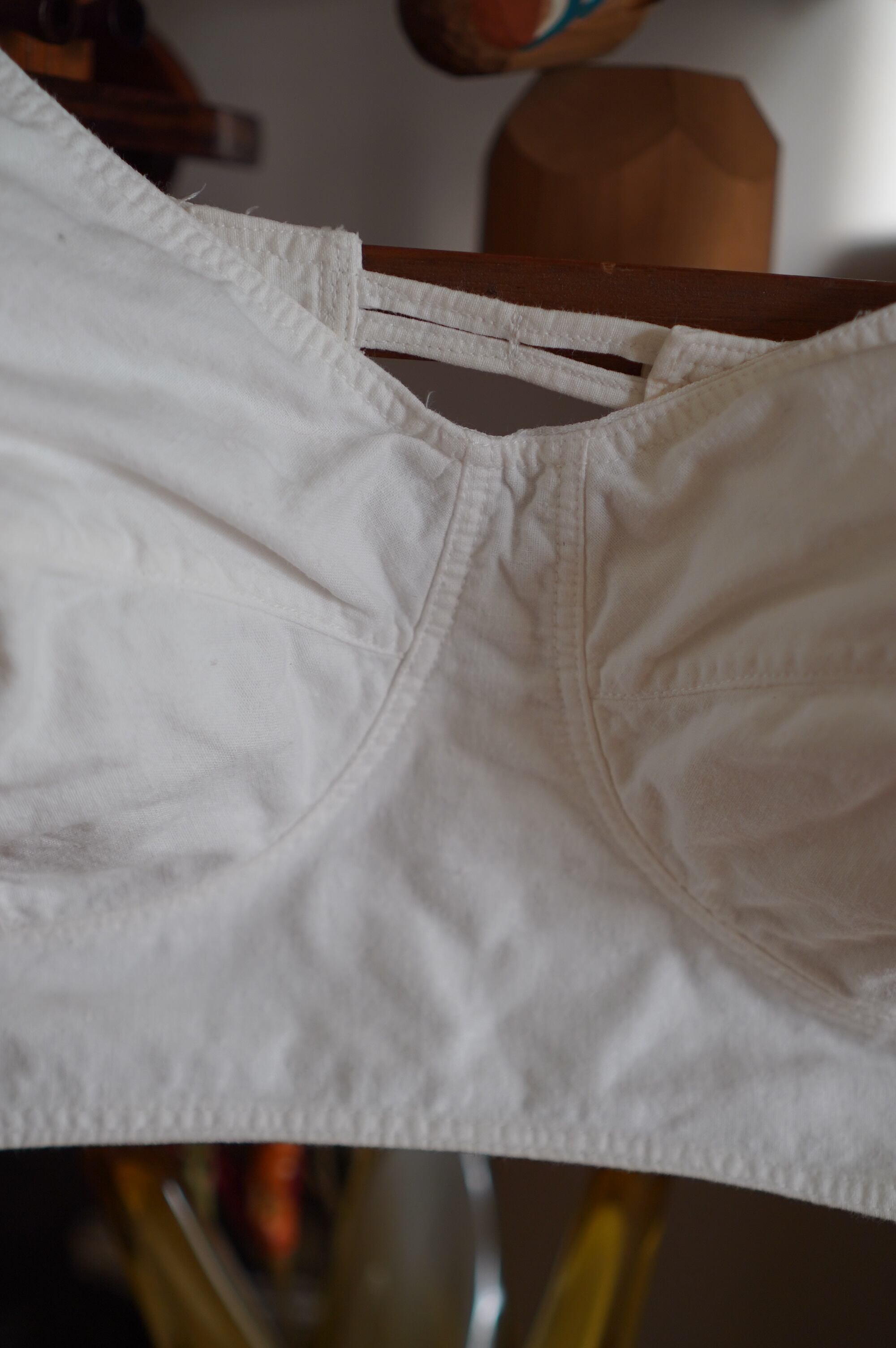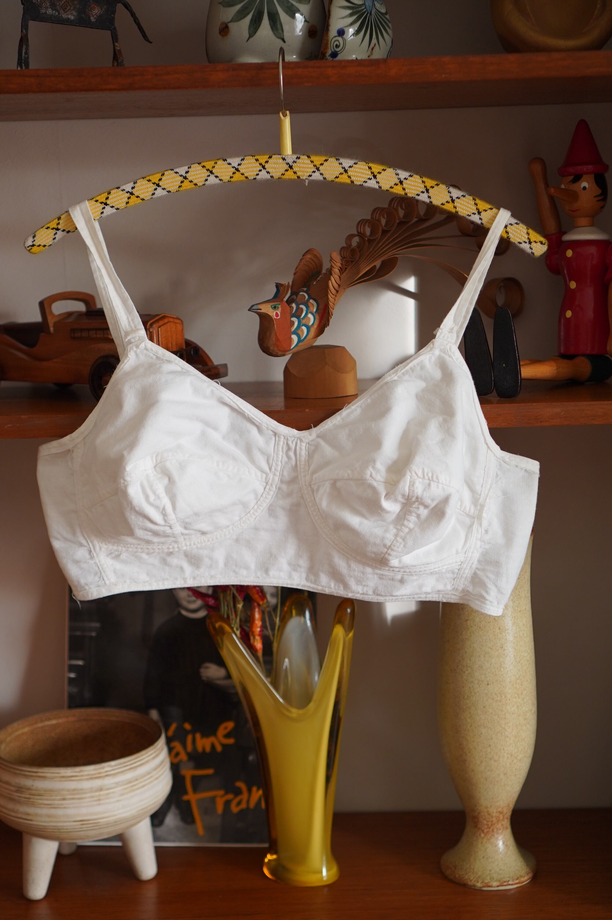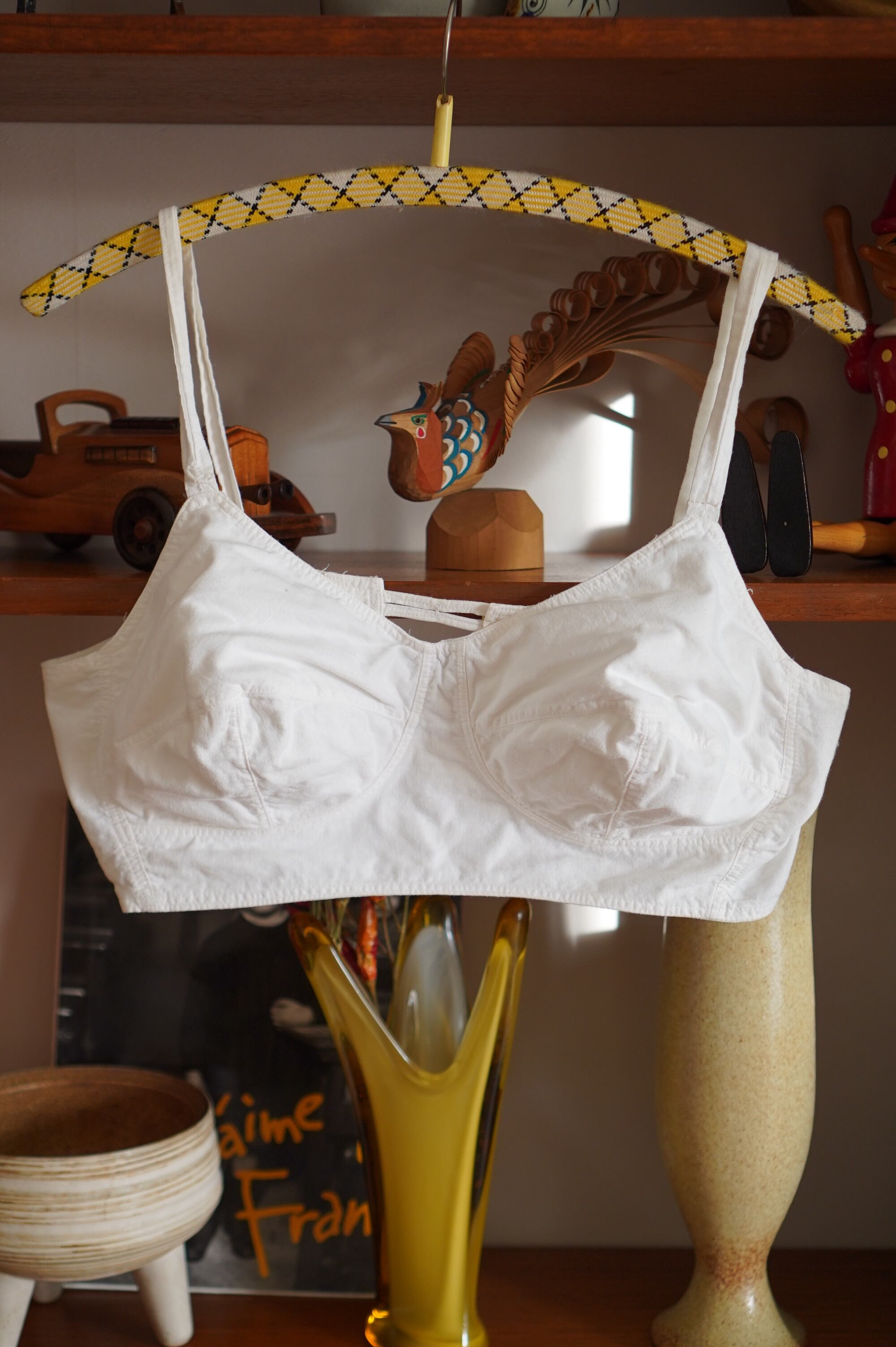 ホワイト無地のシンプルなヴィンテージコットンブラです。