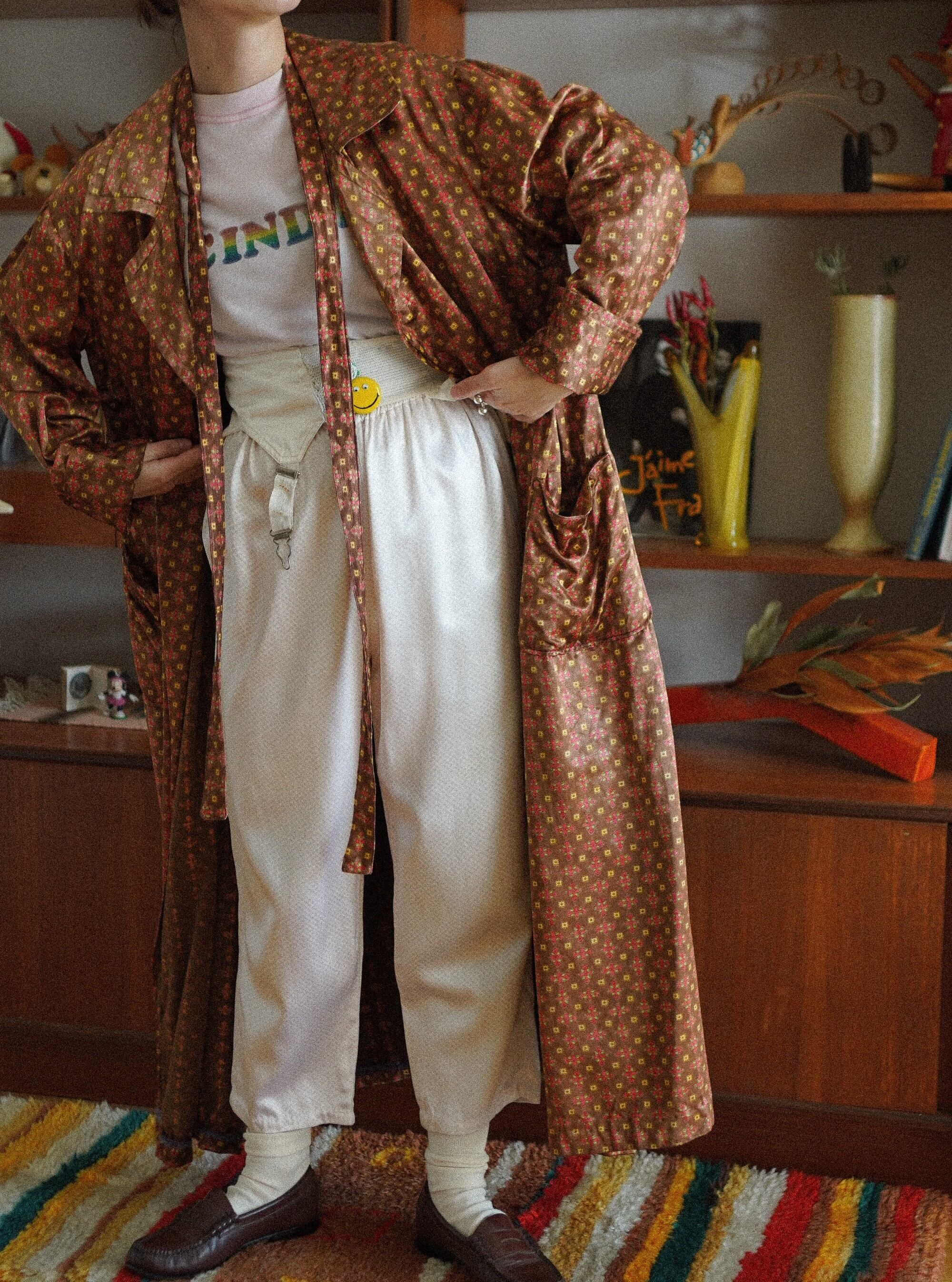 ヴィンテージならではの絶妙なチョコレートブラウンカラーのベースに、イエロー、ライムグリーン、チェリーピンクの差し色が最高にキュートです。