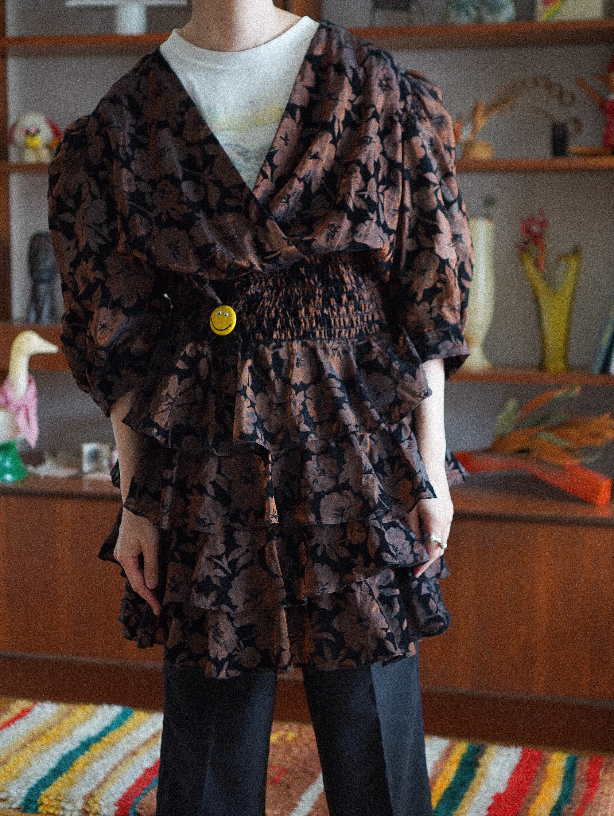 4段のたっぷりなフリルとパフスリーブなシルエットがチャームポイント。
