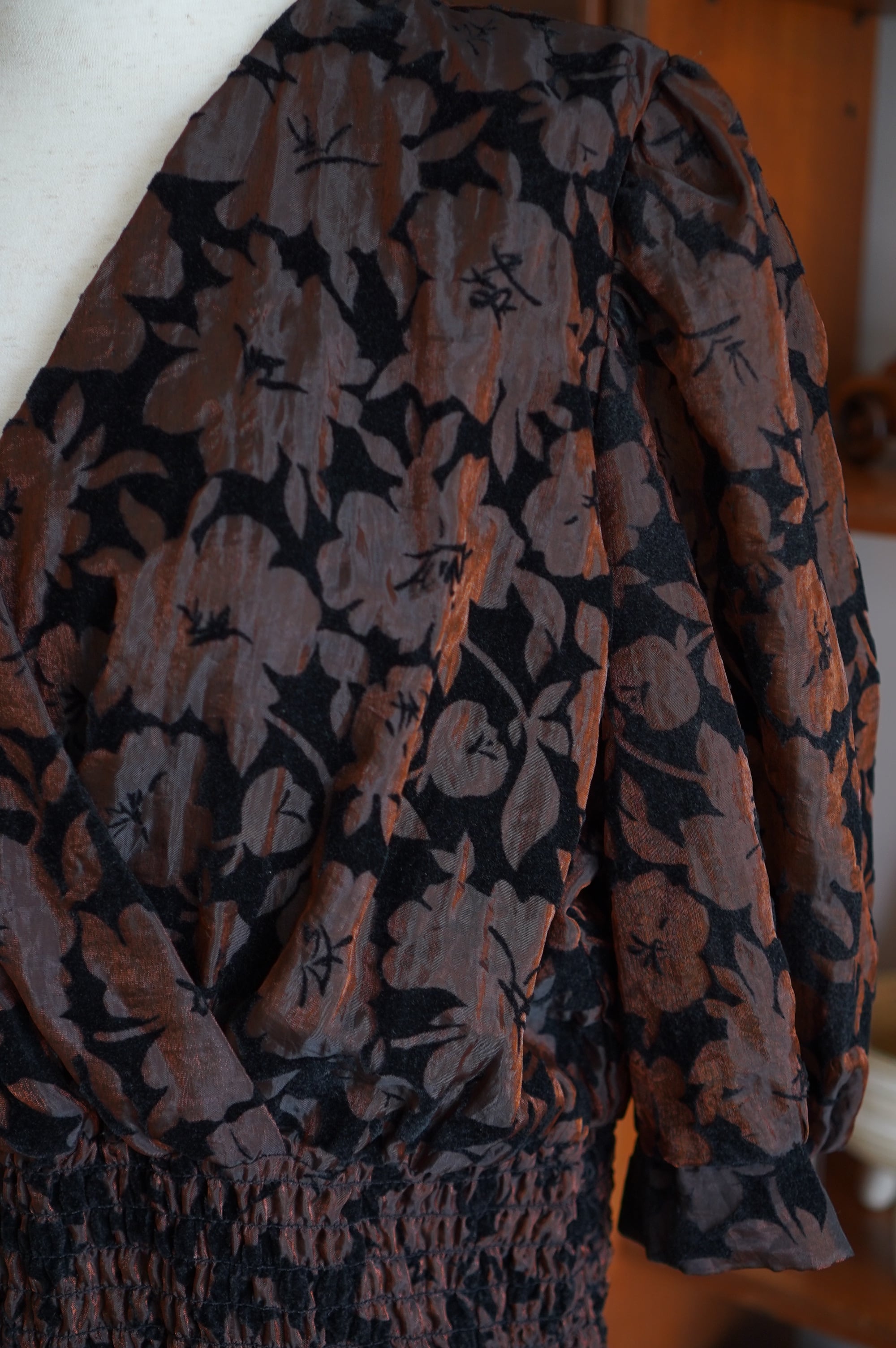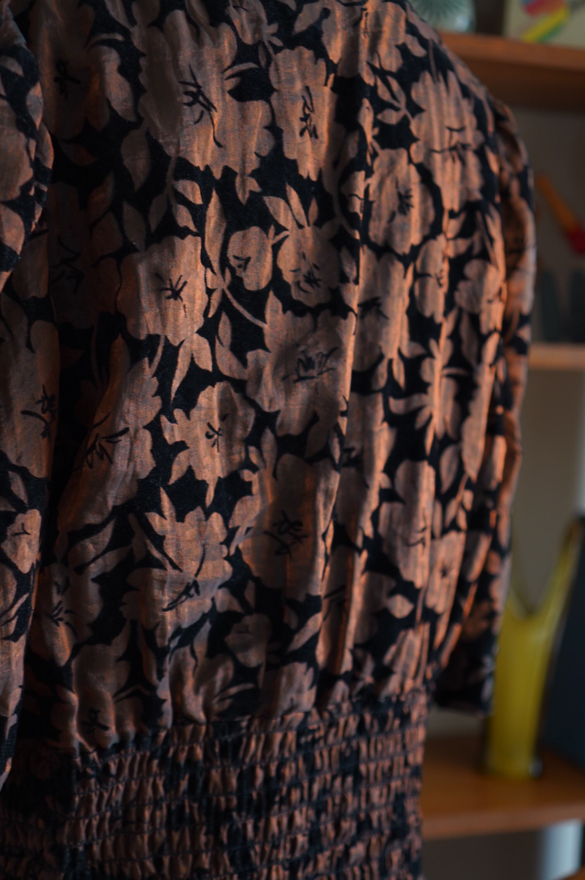 フロッキープリントで花柄が施されています。