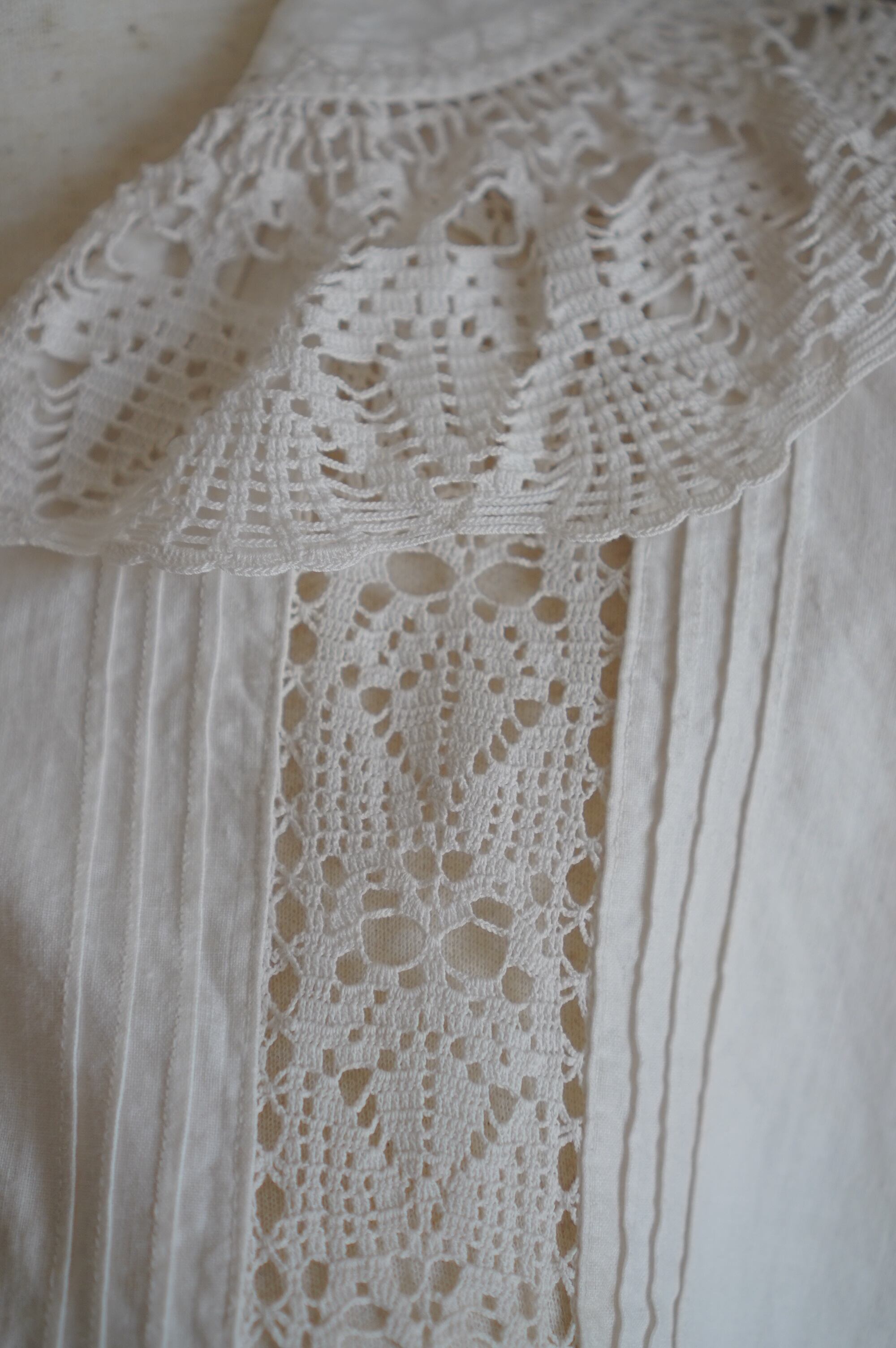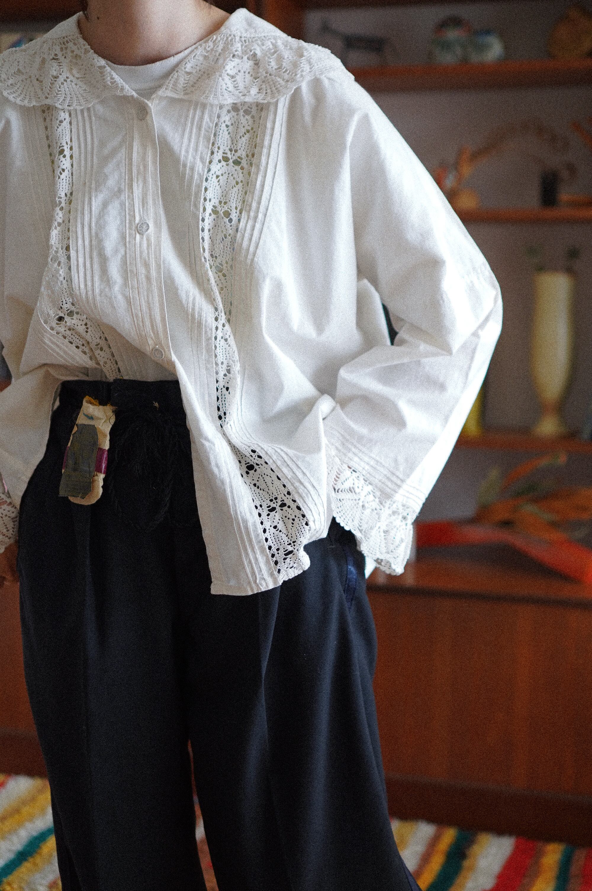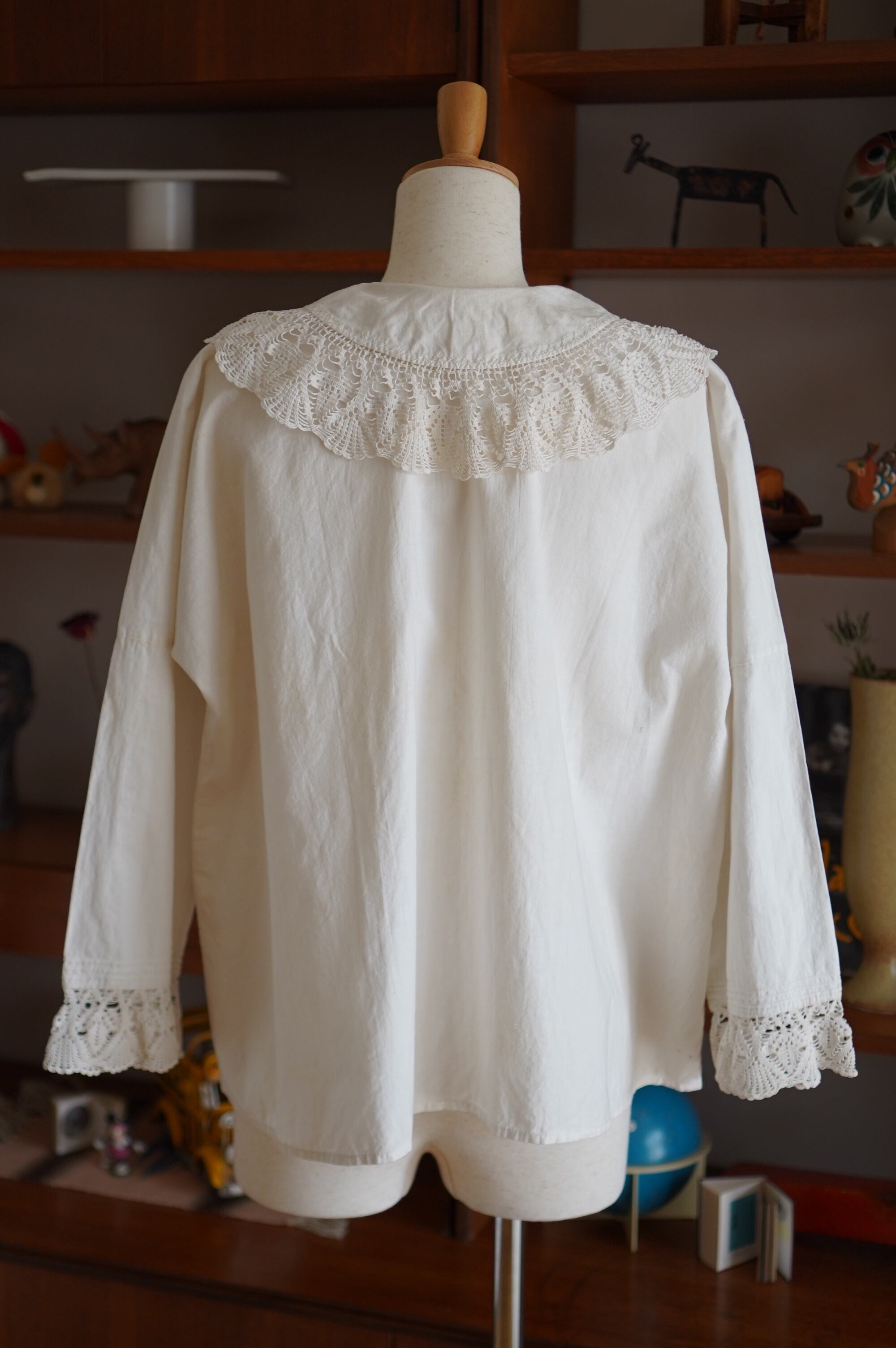 クロシェ編みのレースがほどこされているラブリーなブラウス。