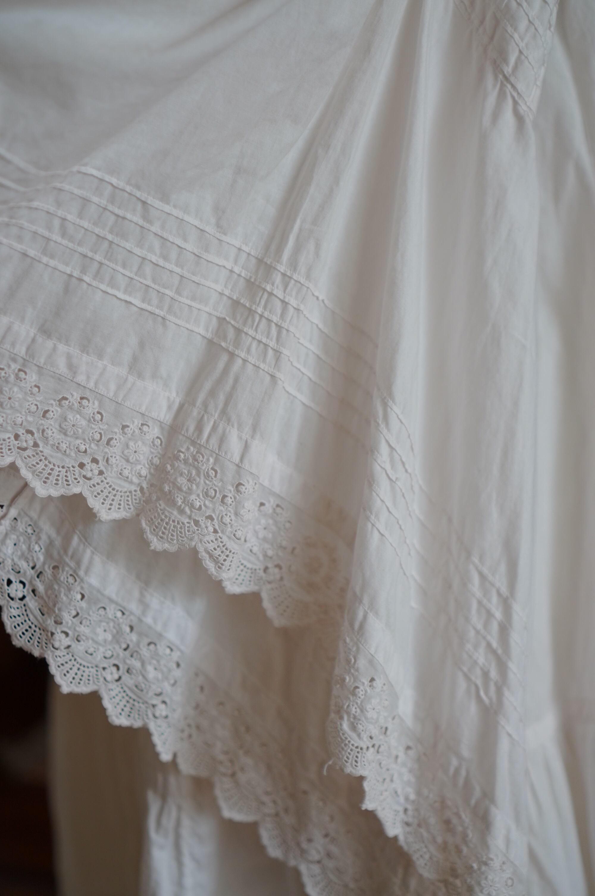 襟、裾口に繊細なカットワーク刺繍が施されています。