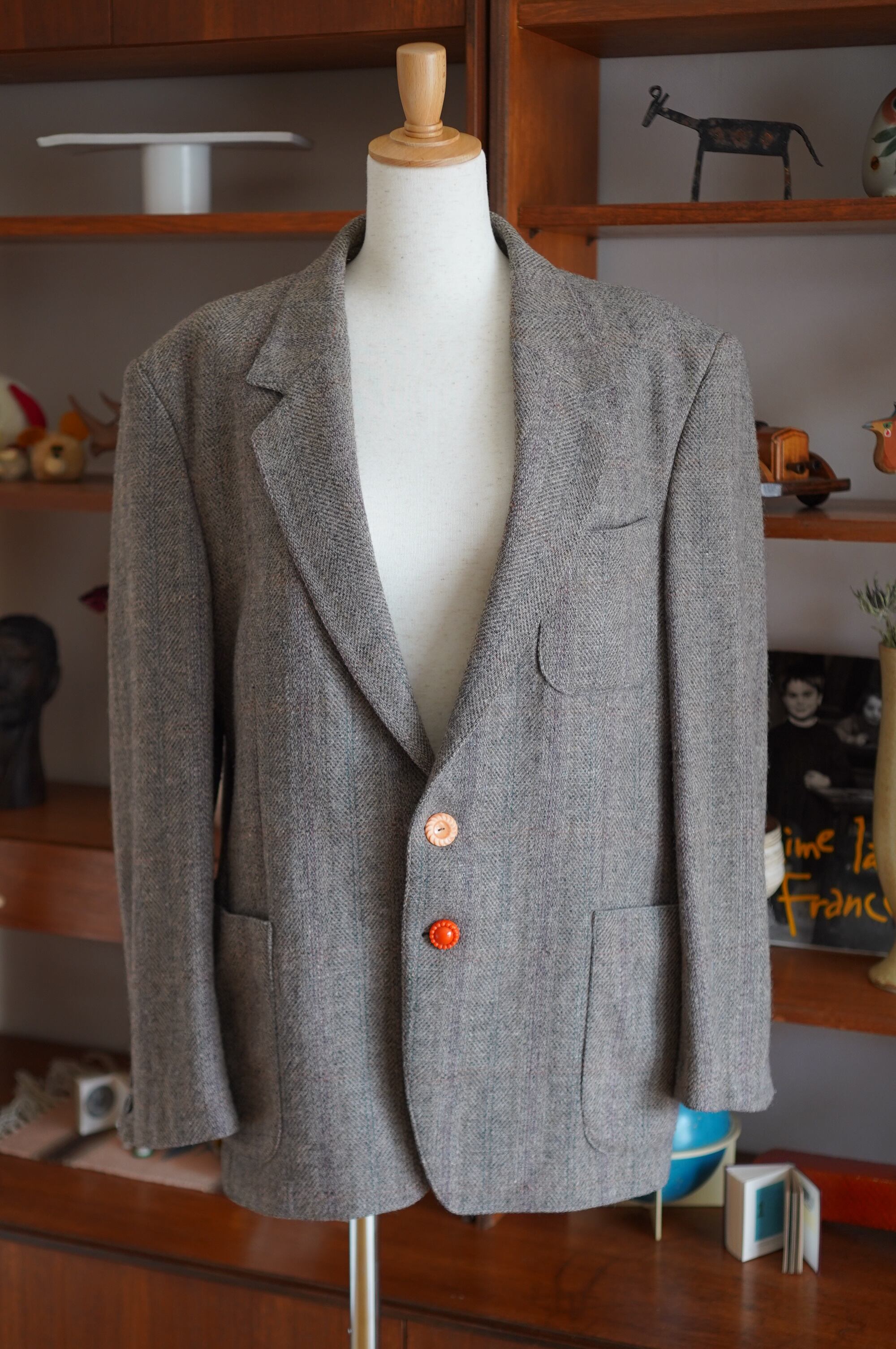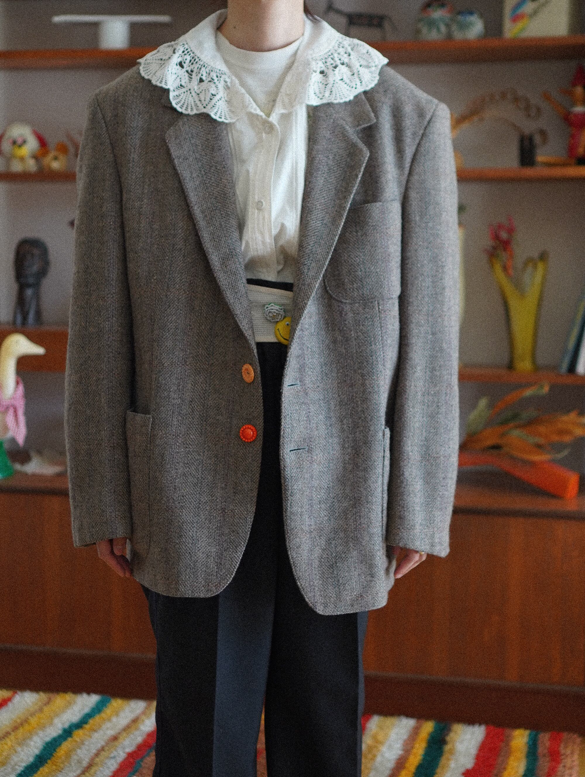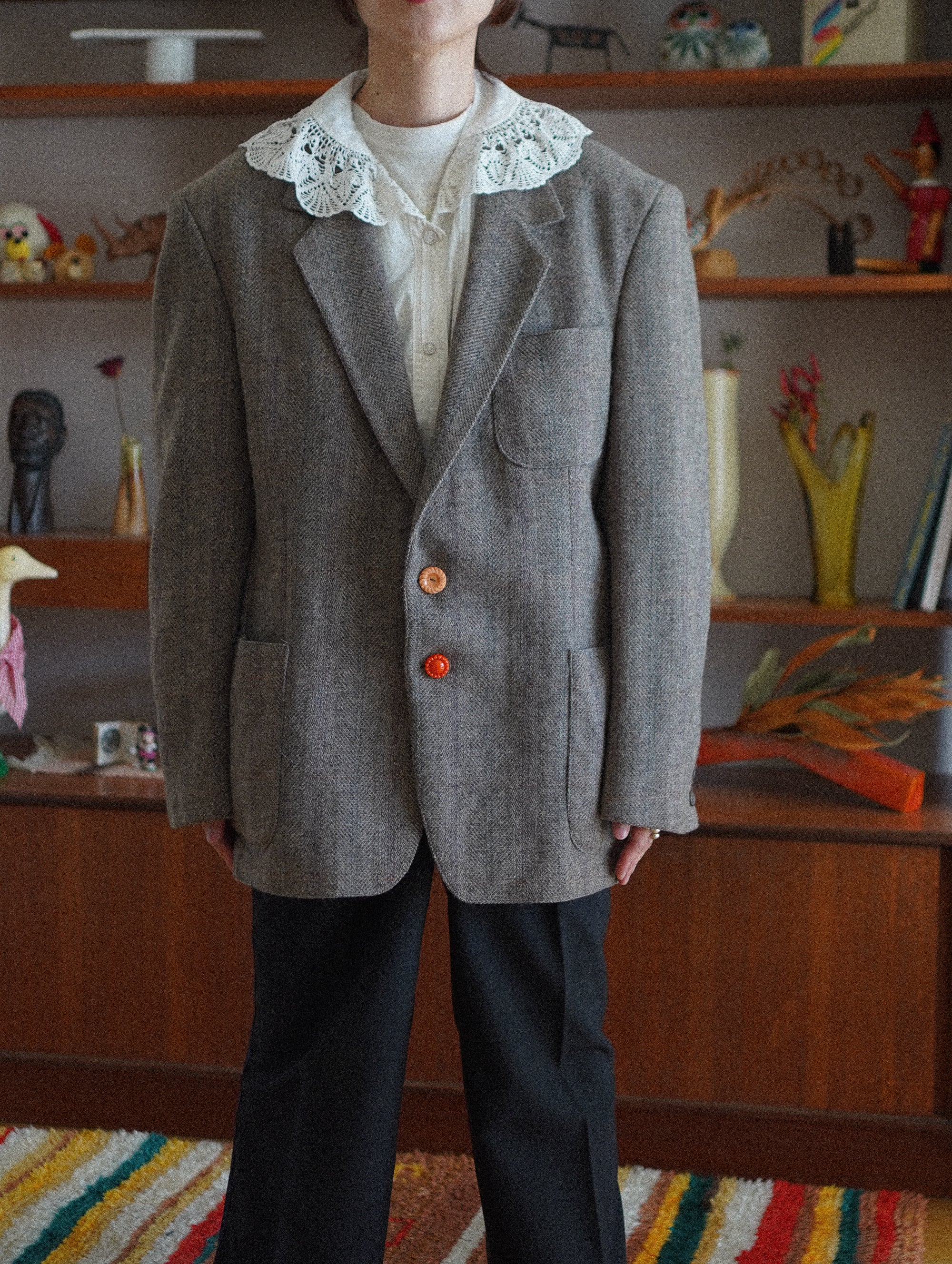 ボタンが壊れていたのでほかのふるいボタンを付けています。裏地付きです。