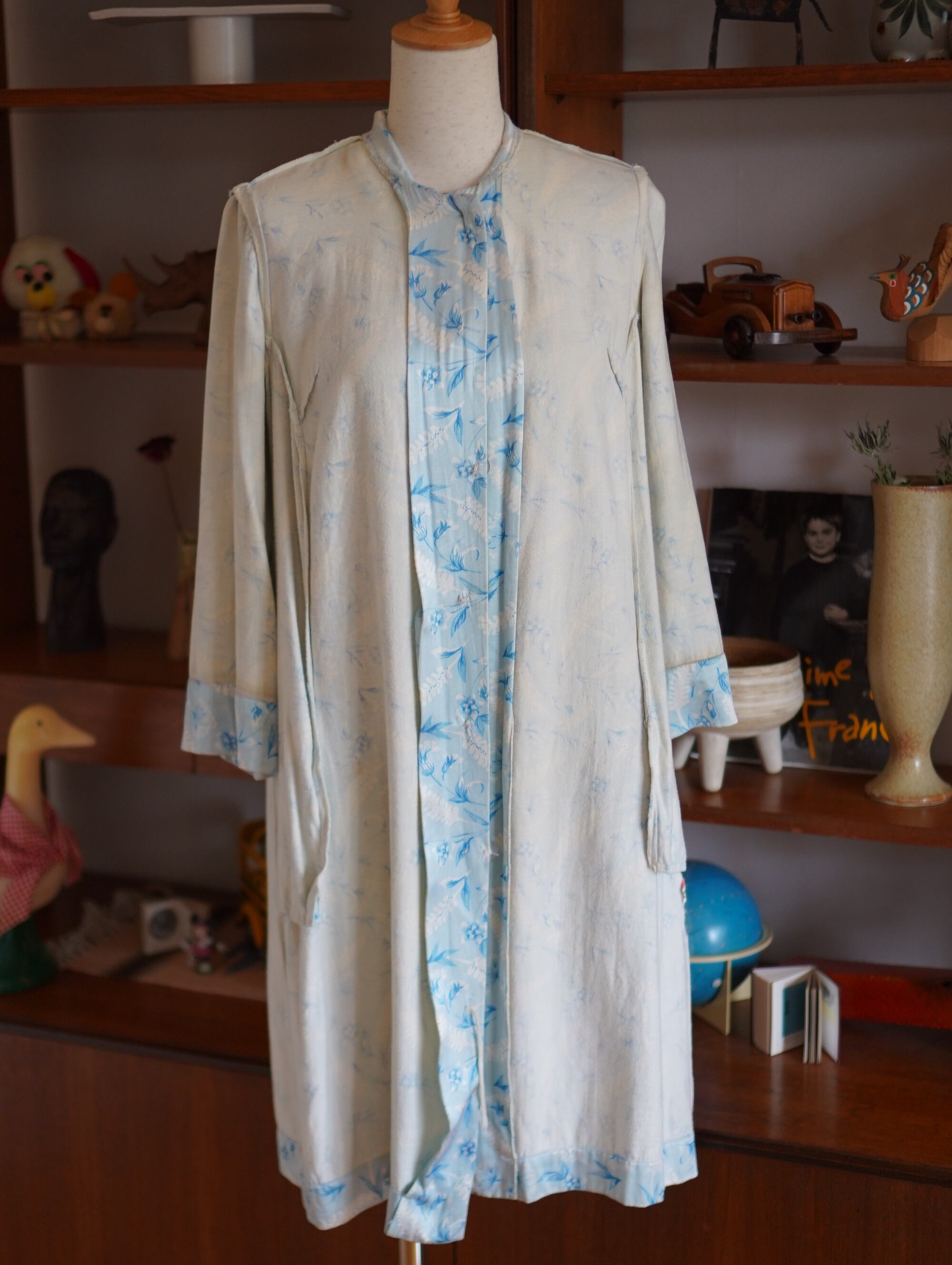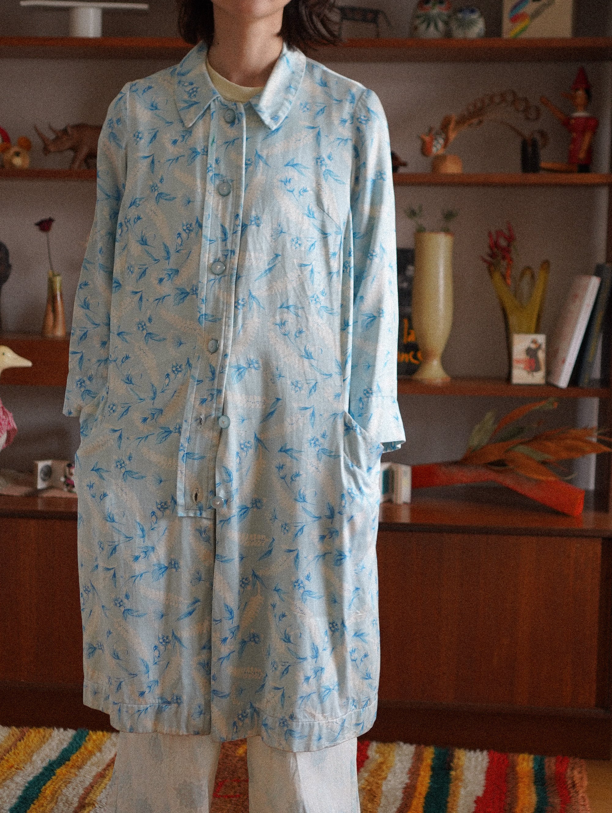 50~60s knee-length floral button-up robe