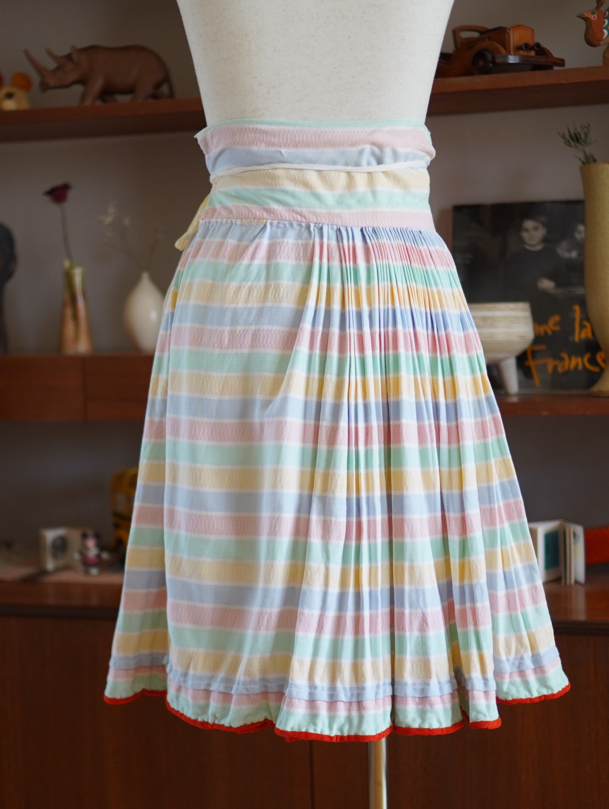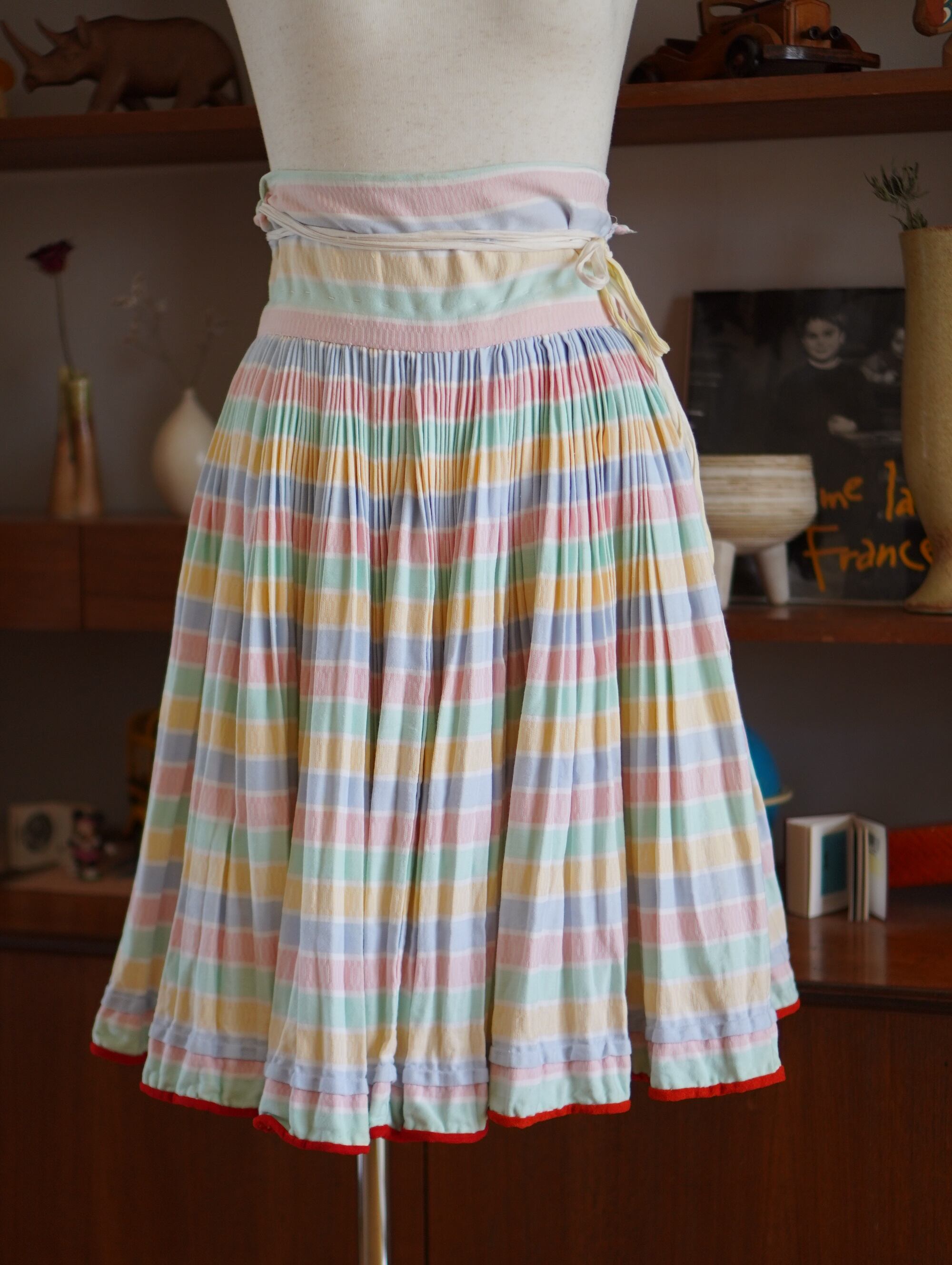 ウエストの紐でぎゅっと結ぶスタイルの巻きスカートです。