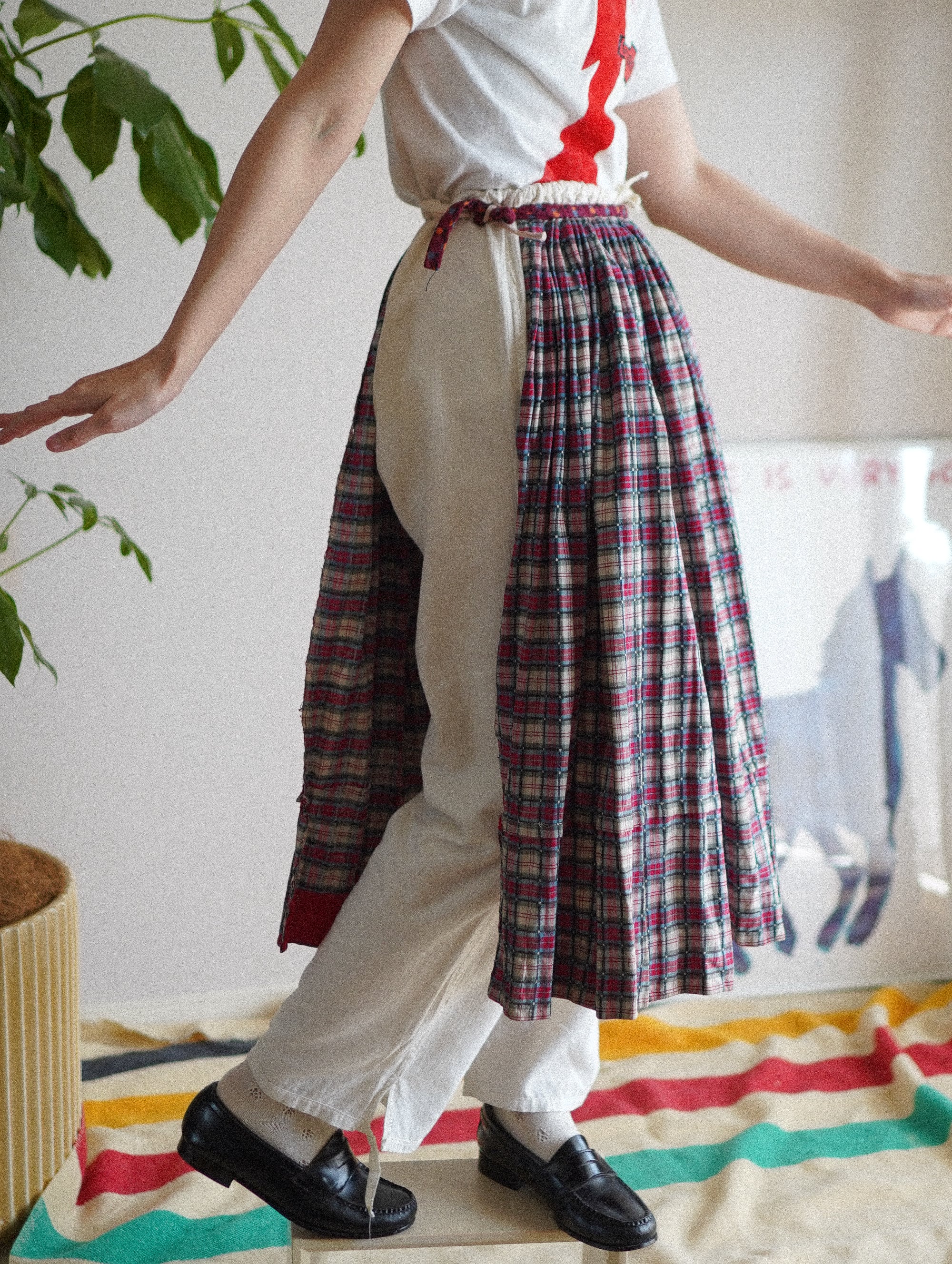 hungarian made skirt apron/pink×blue×gray