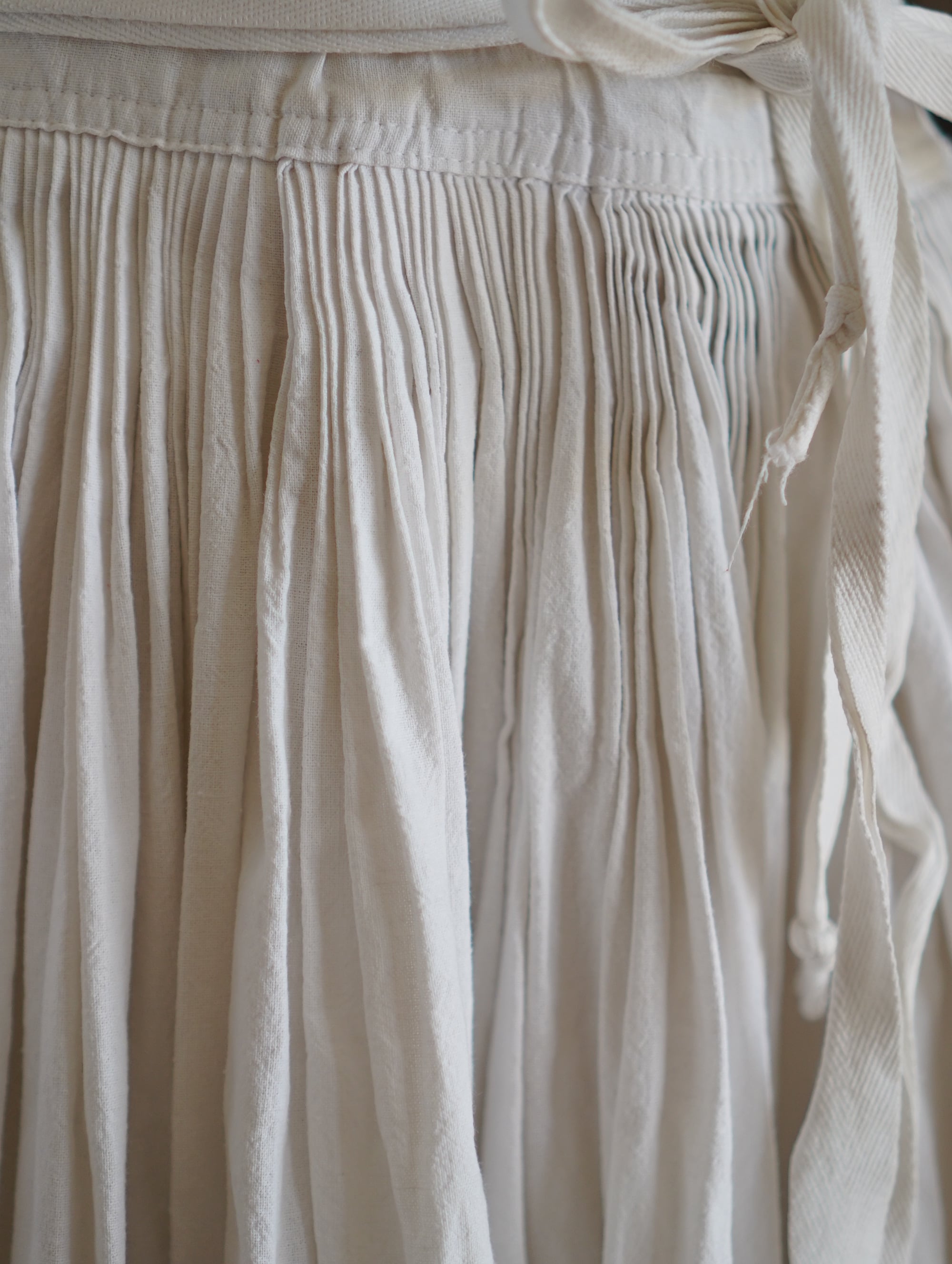 ウエストの紐でぎゅっと結ぶスタイルのギャザーたっぷりな巻きスカートです。