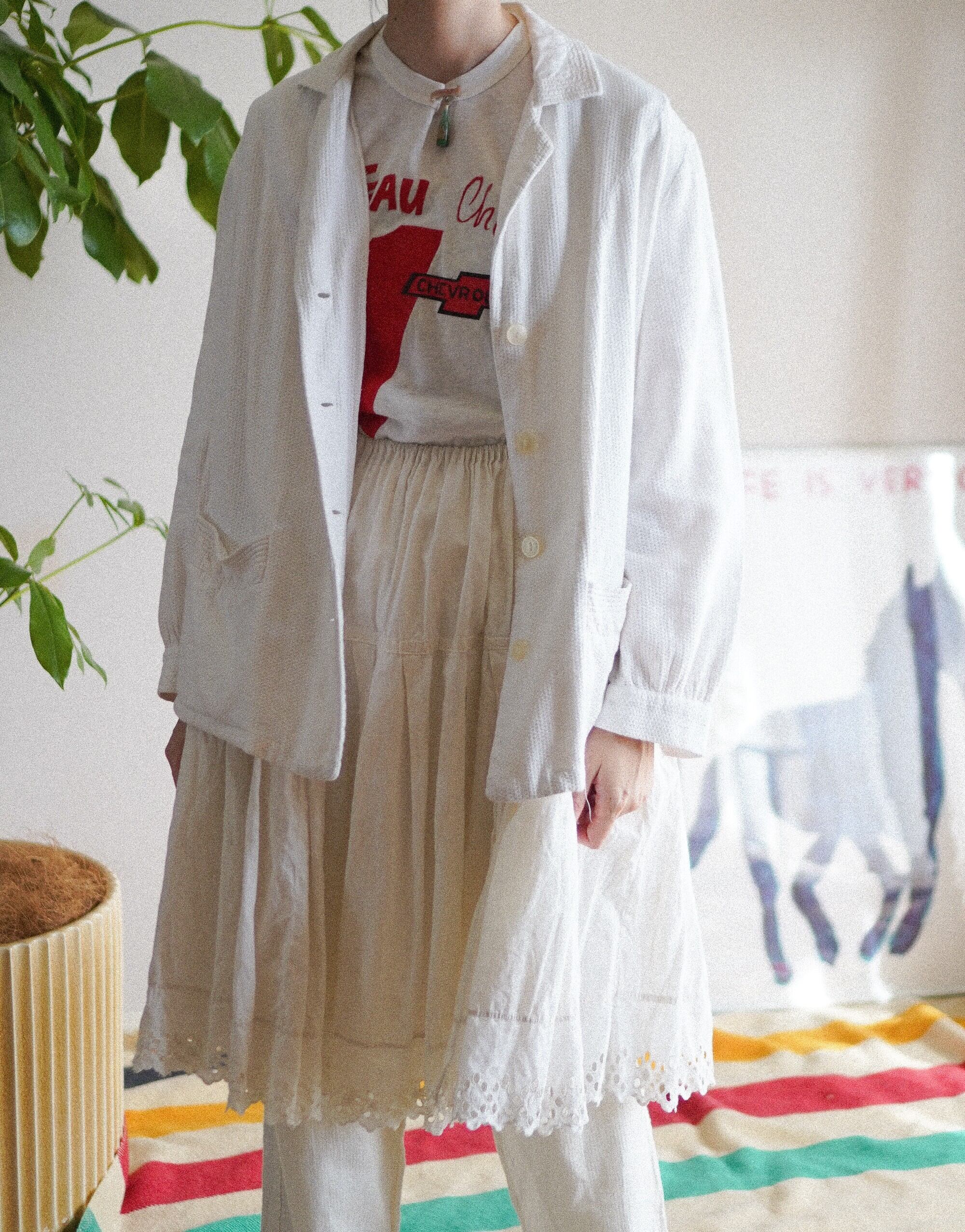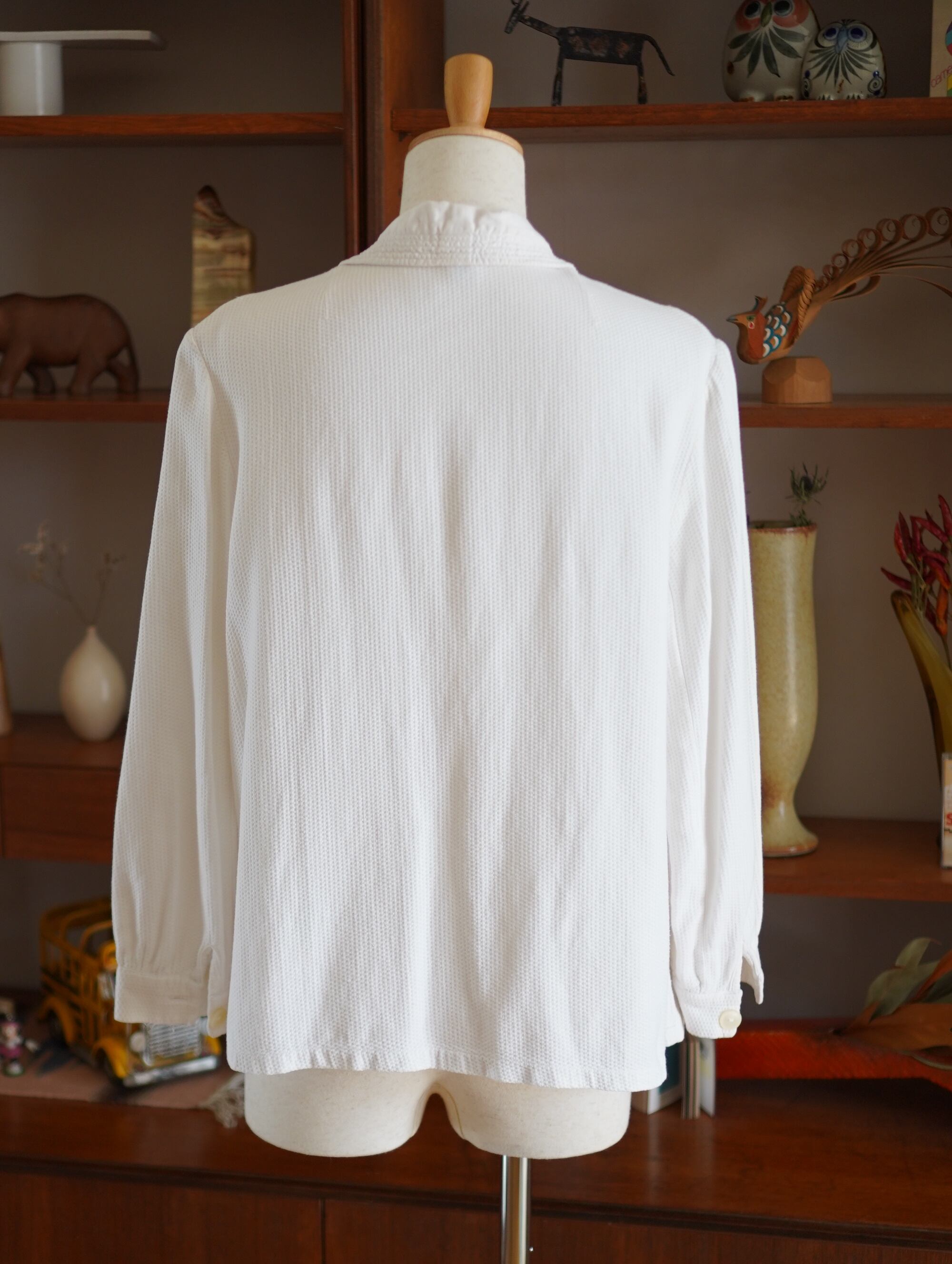 70's waffle pajamas top /white