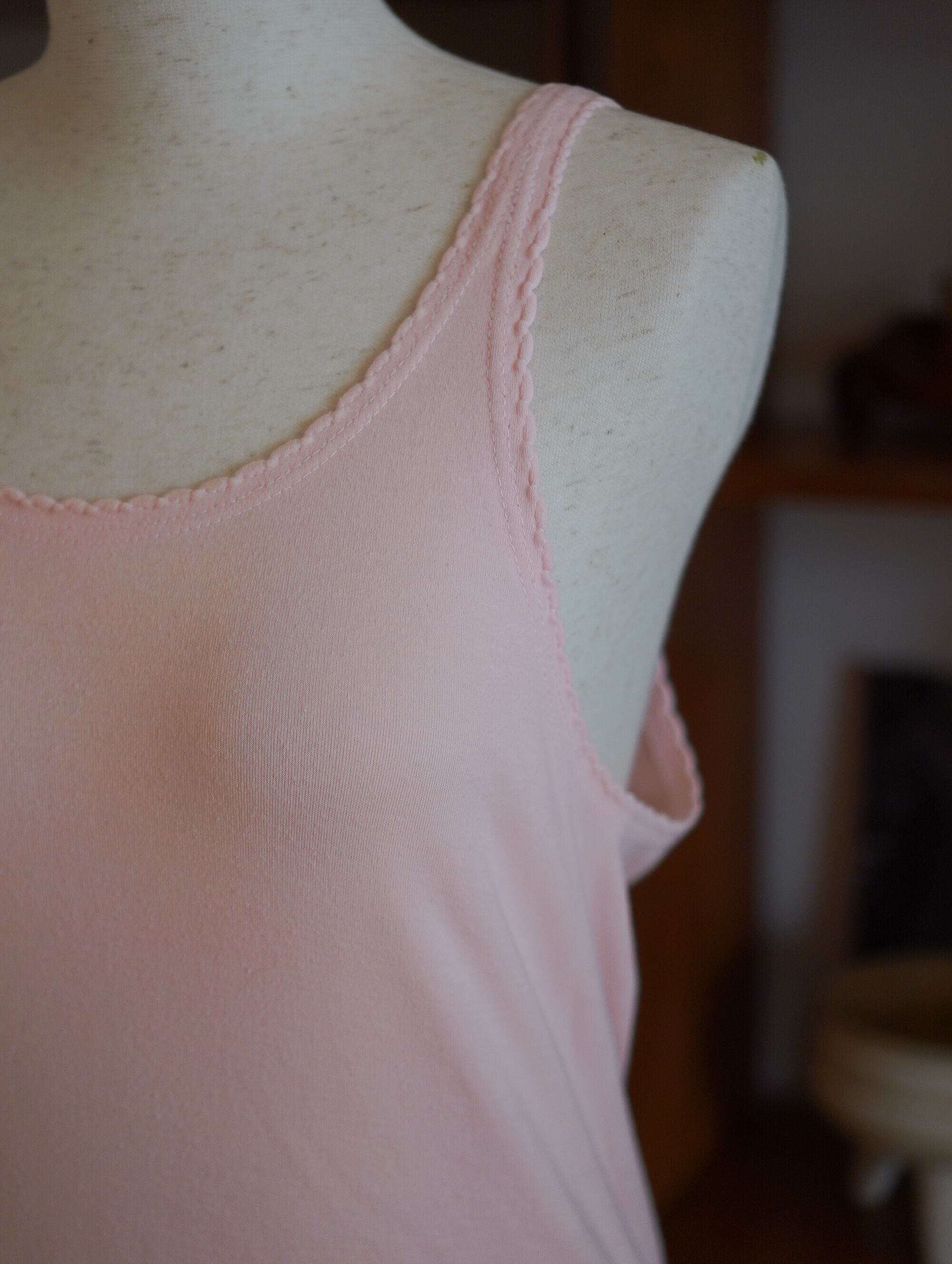 ハンガリー製の淡いピンクのコットンタンクトップ。