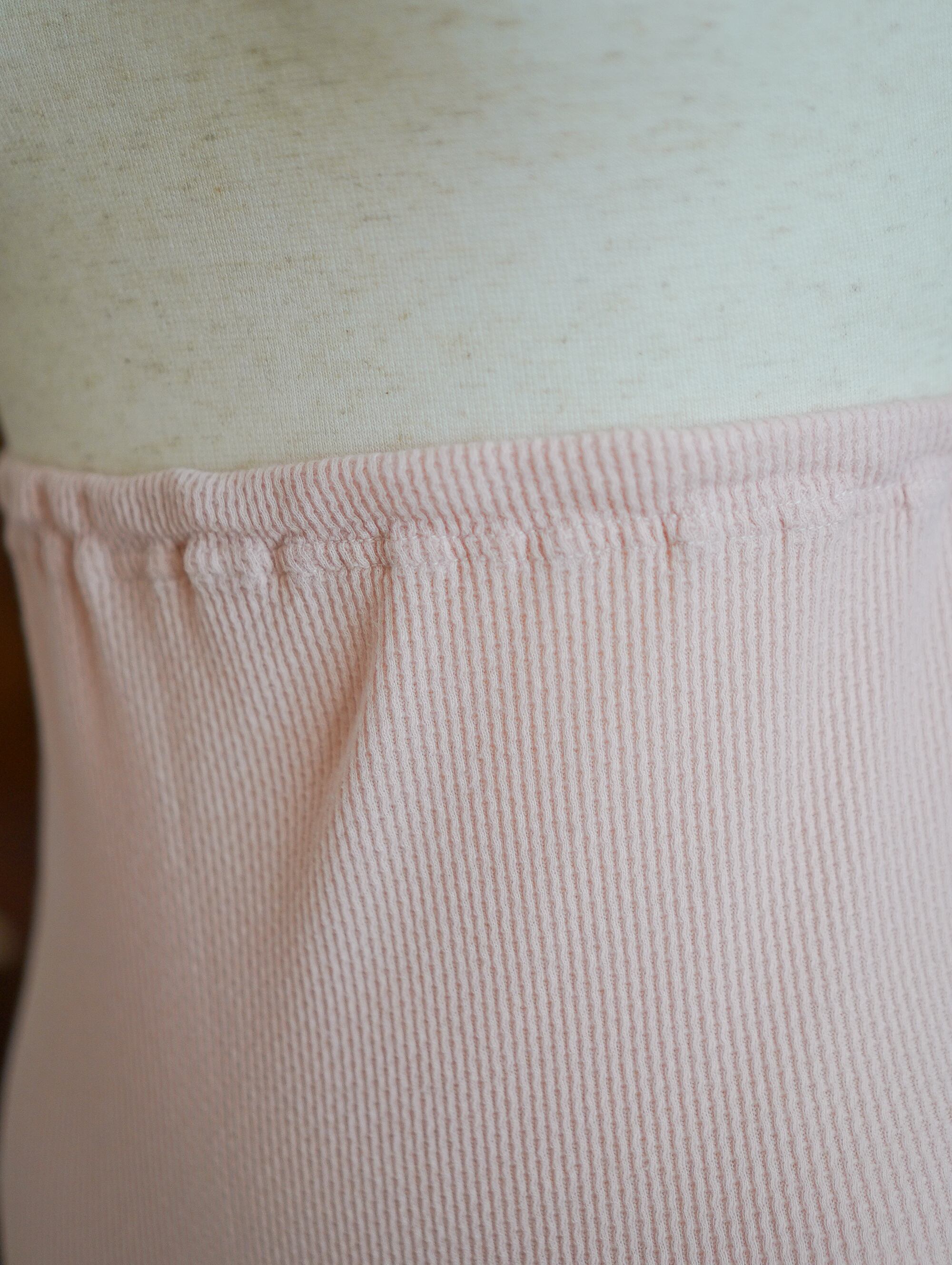 薄ピンクのサーマル素材のハーフ丈インナーショーツ。