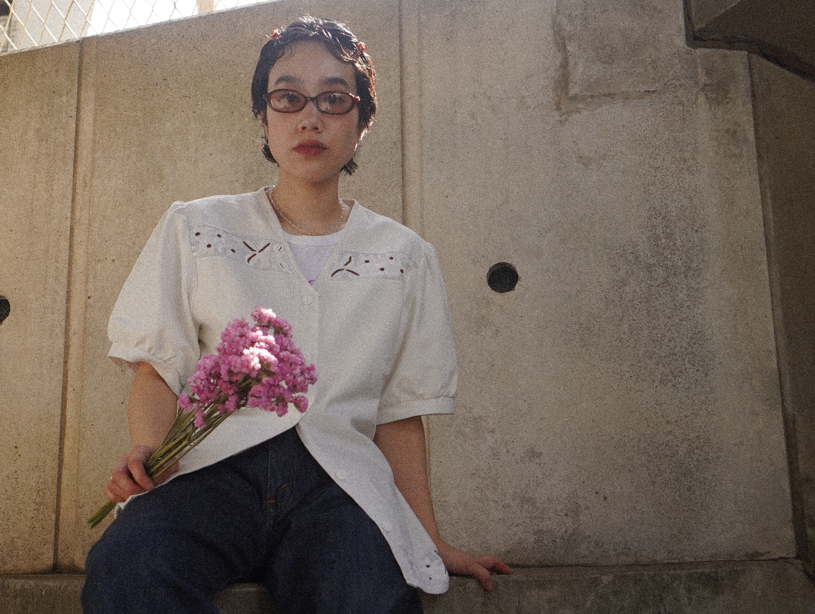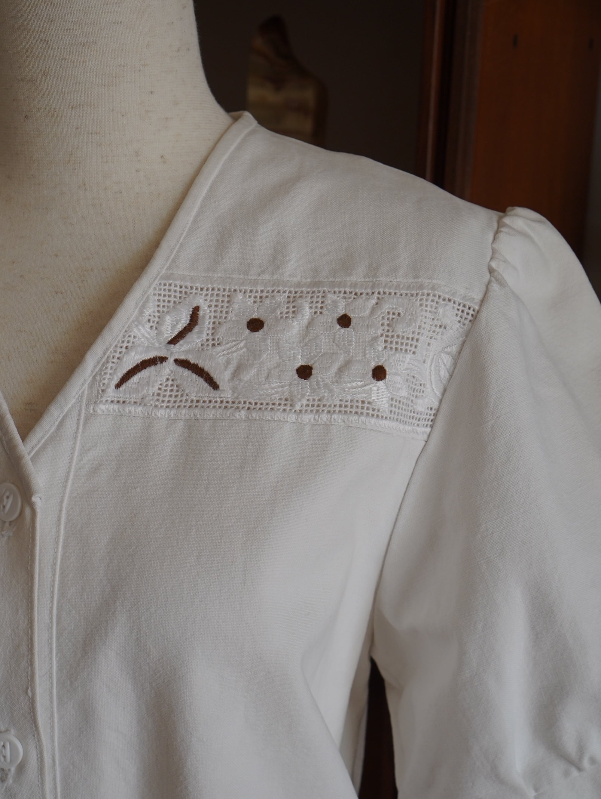カットワーク刺繍のヴィンテージブラウス。