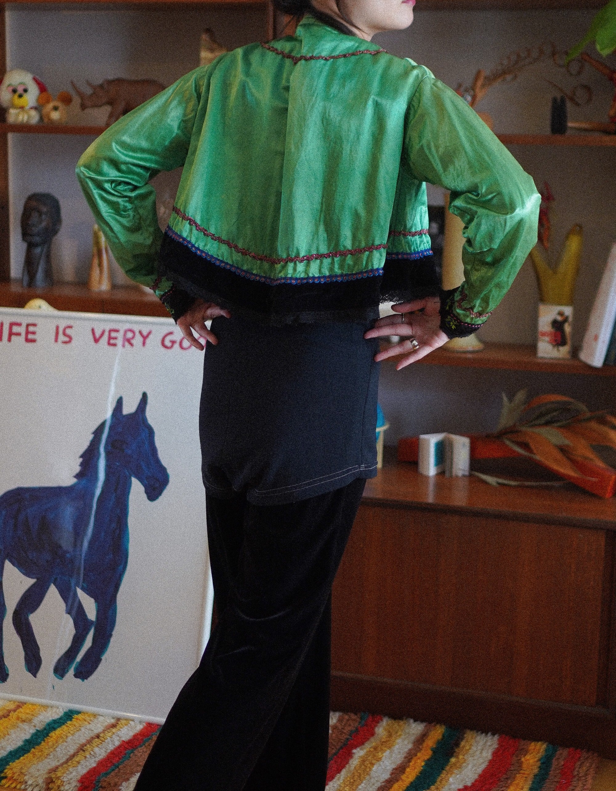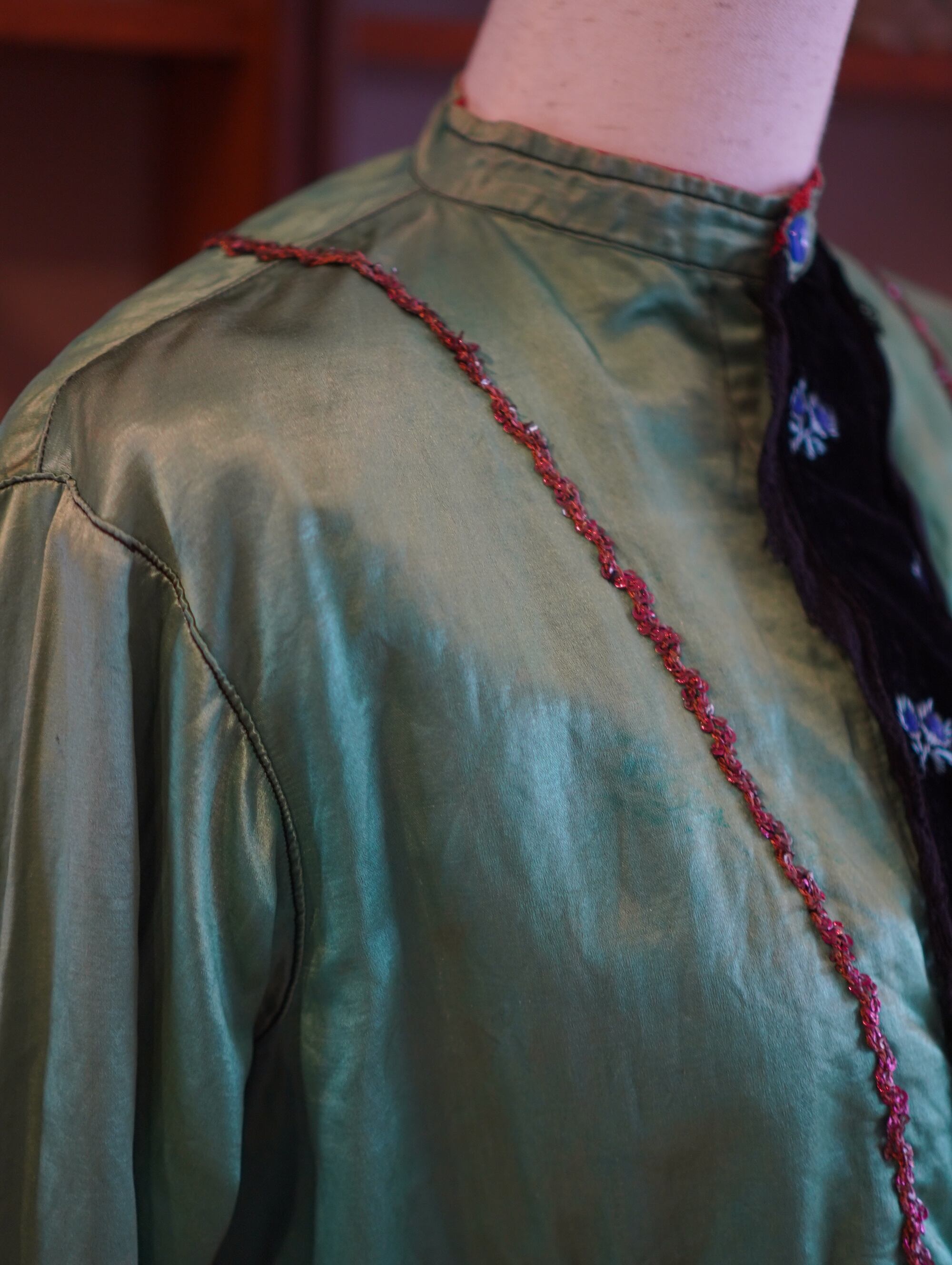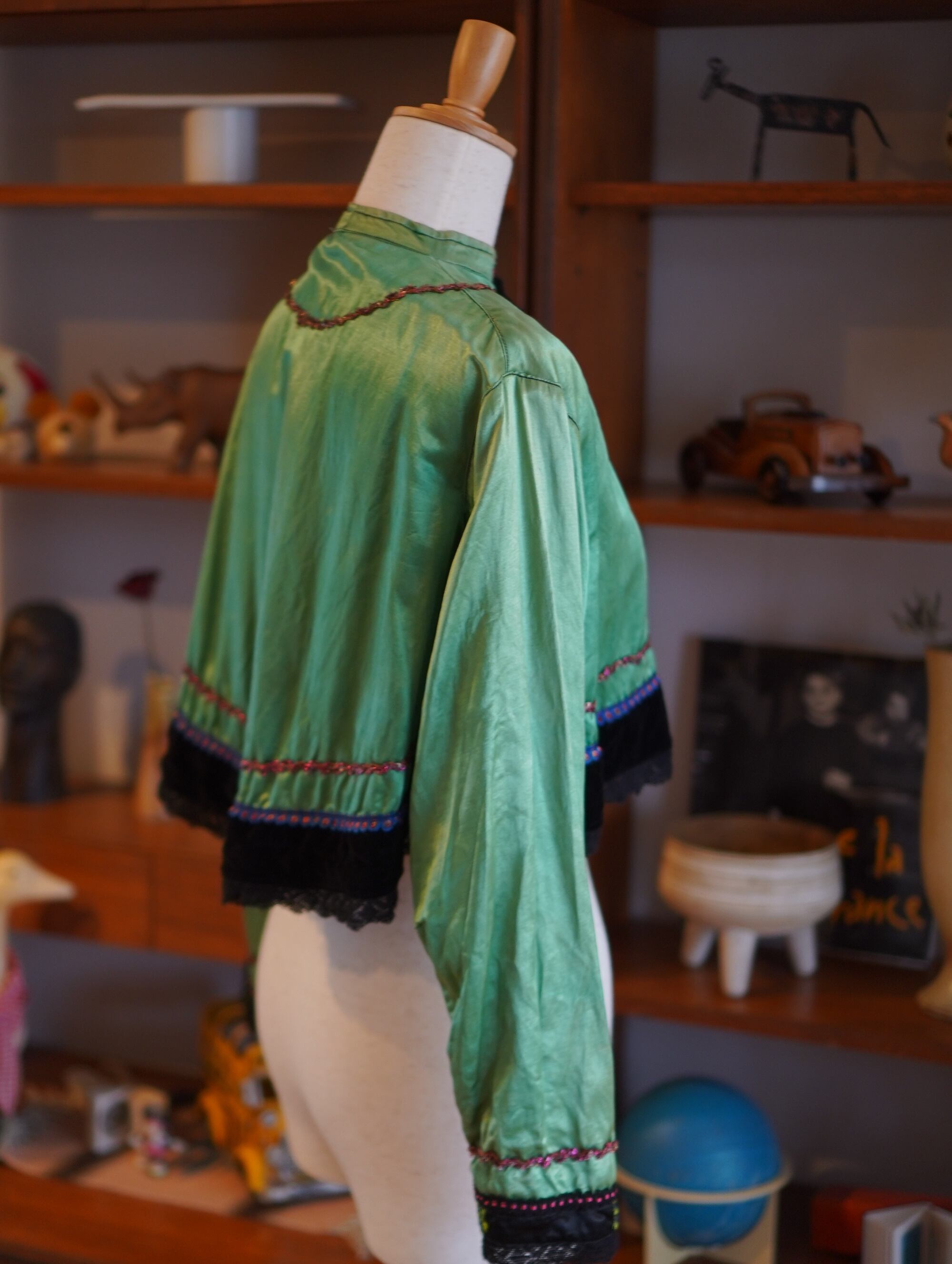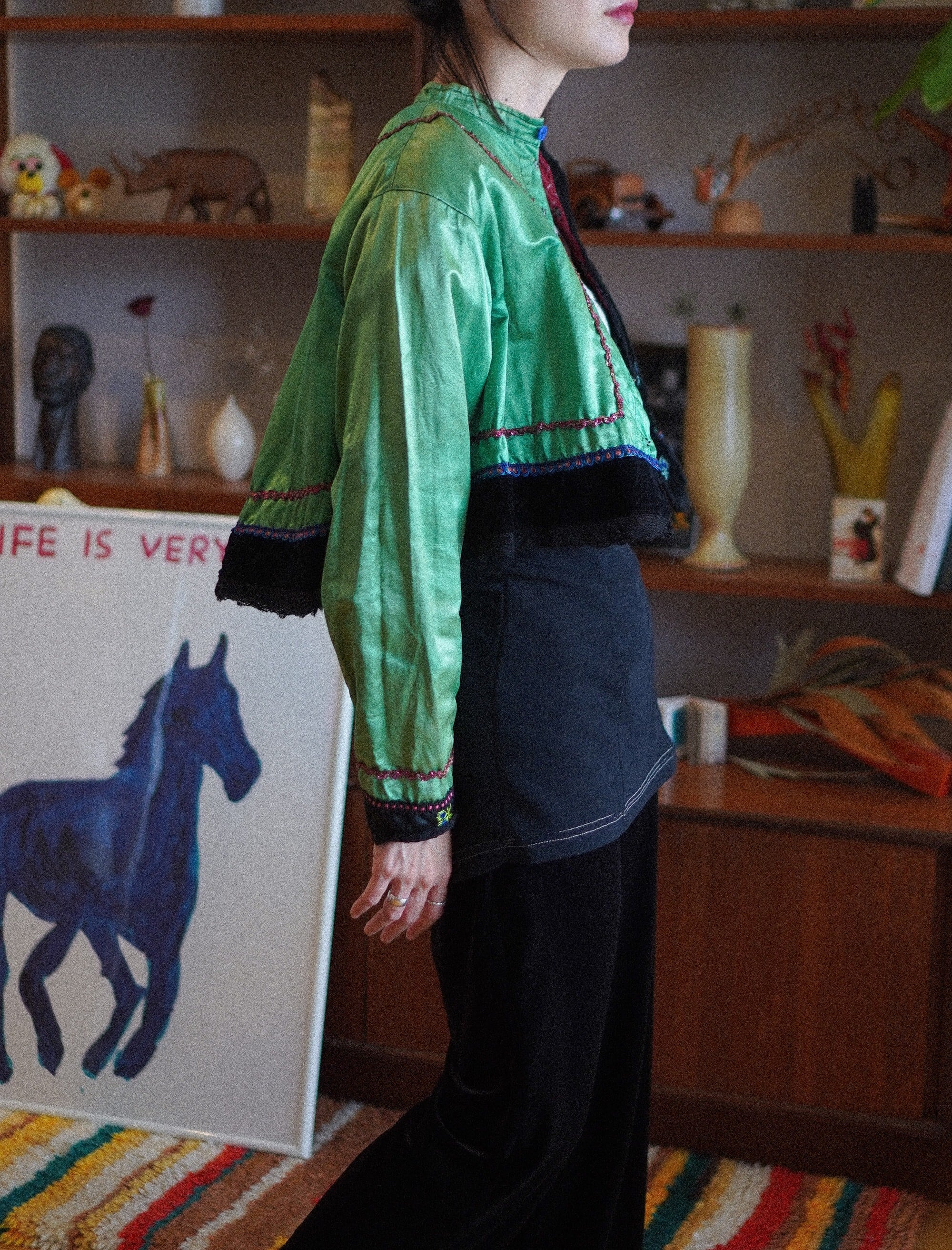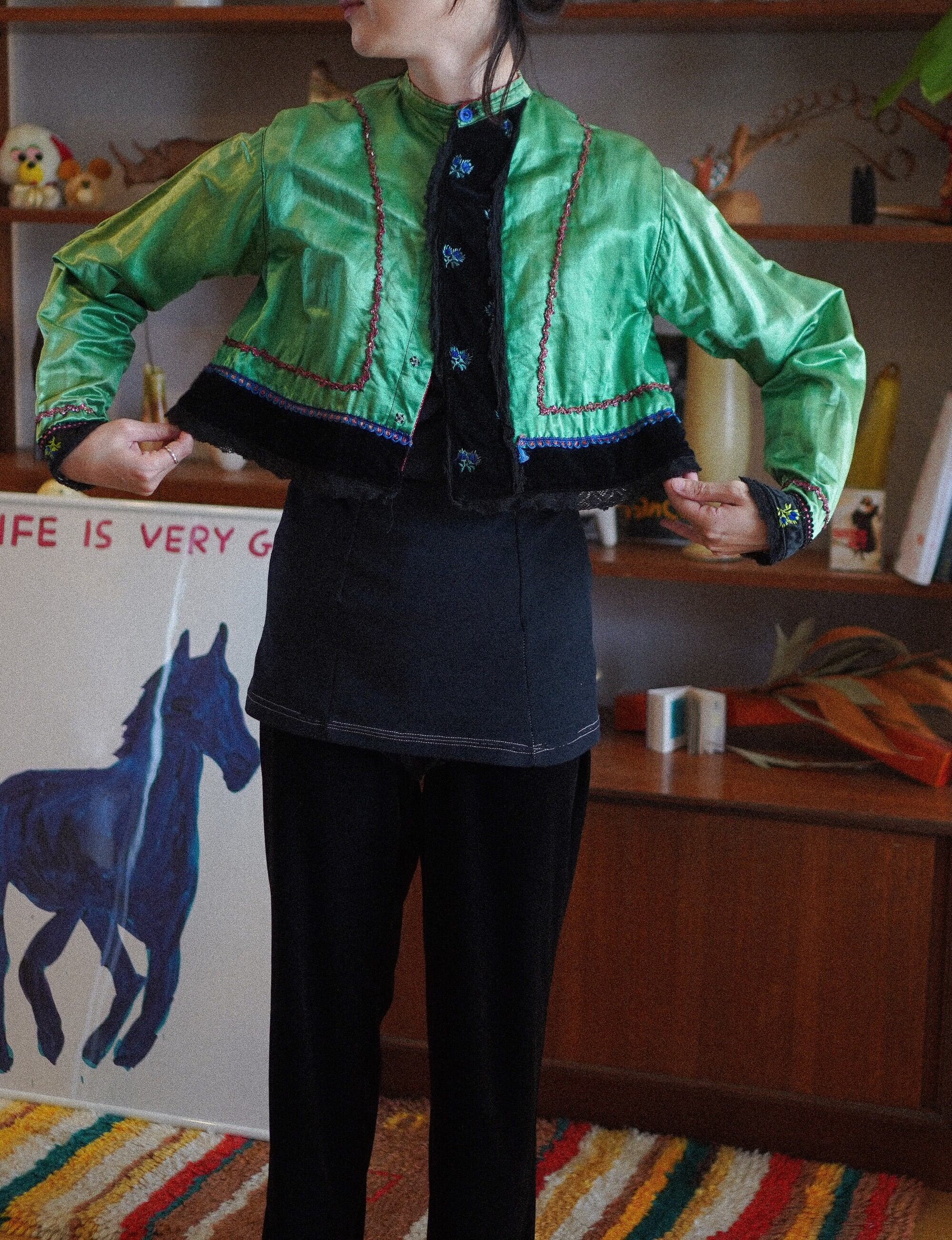 green silk & black velvet embroidered jacket