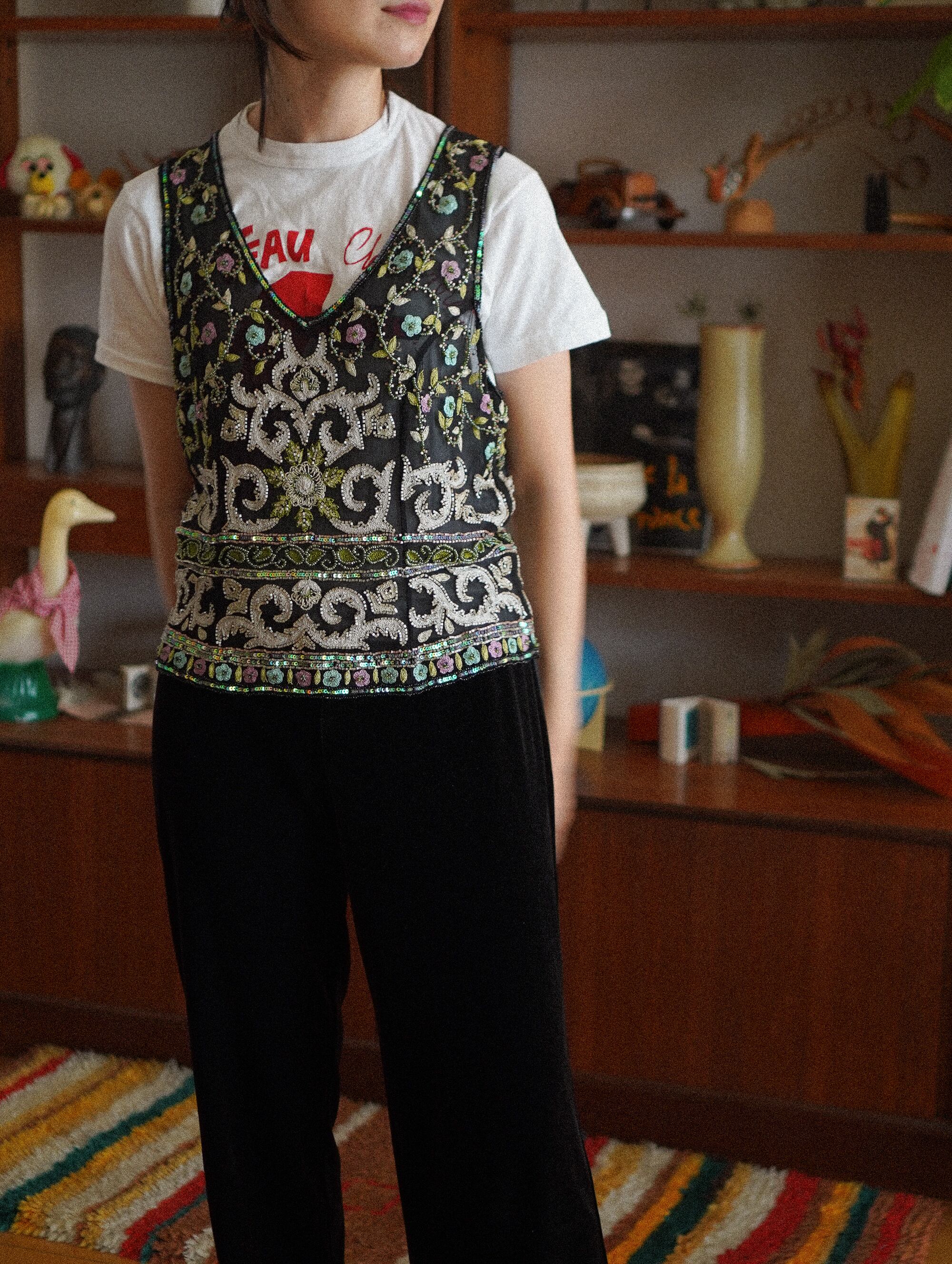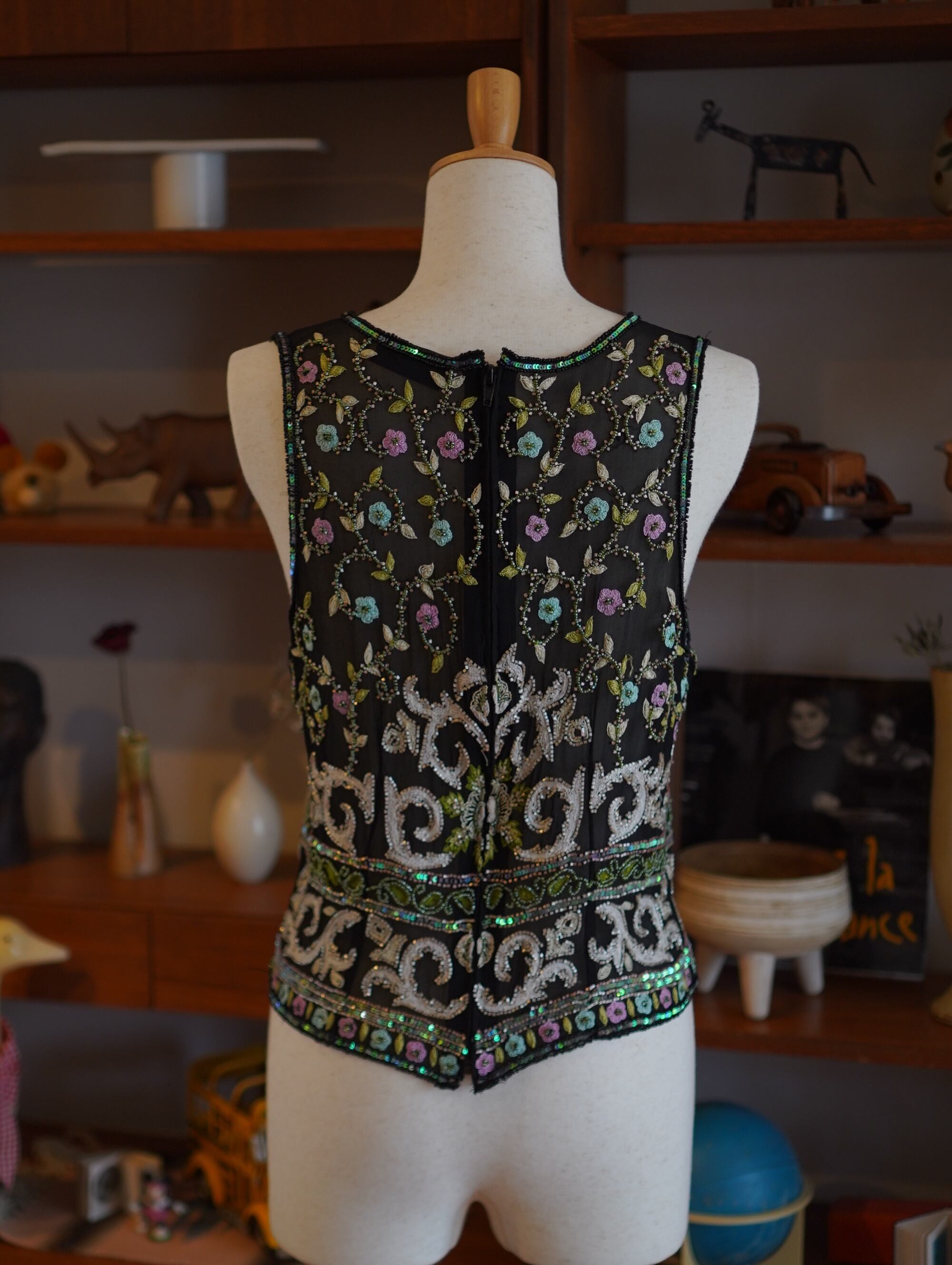 細やかなビーズ&スパンコールの装飾がキュートなトップス。
