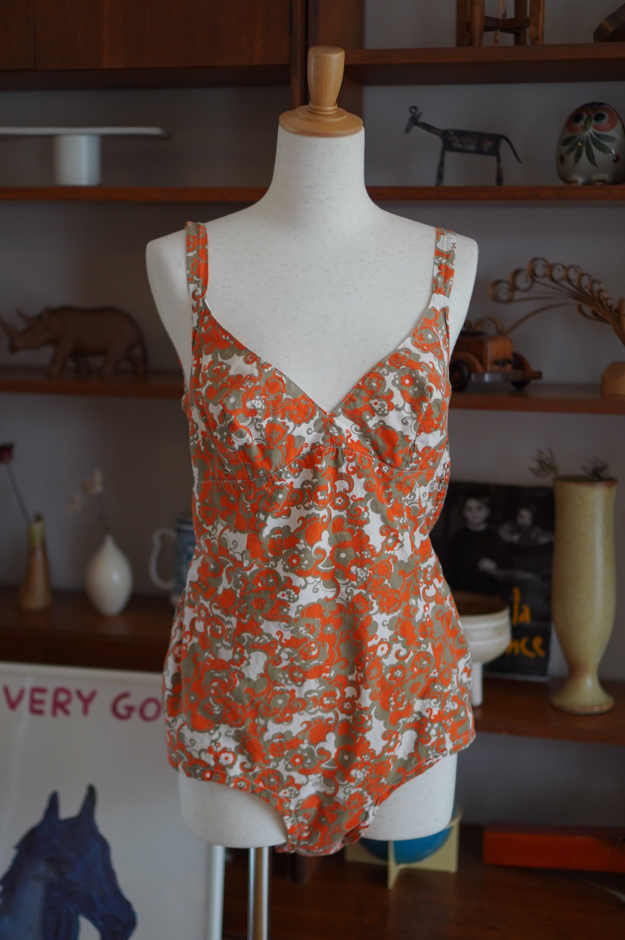 vintage orange floral swimwear