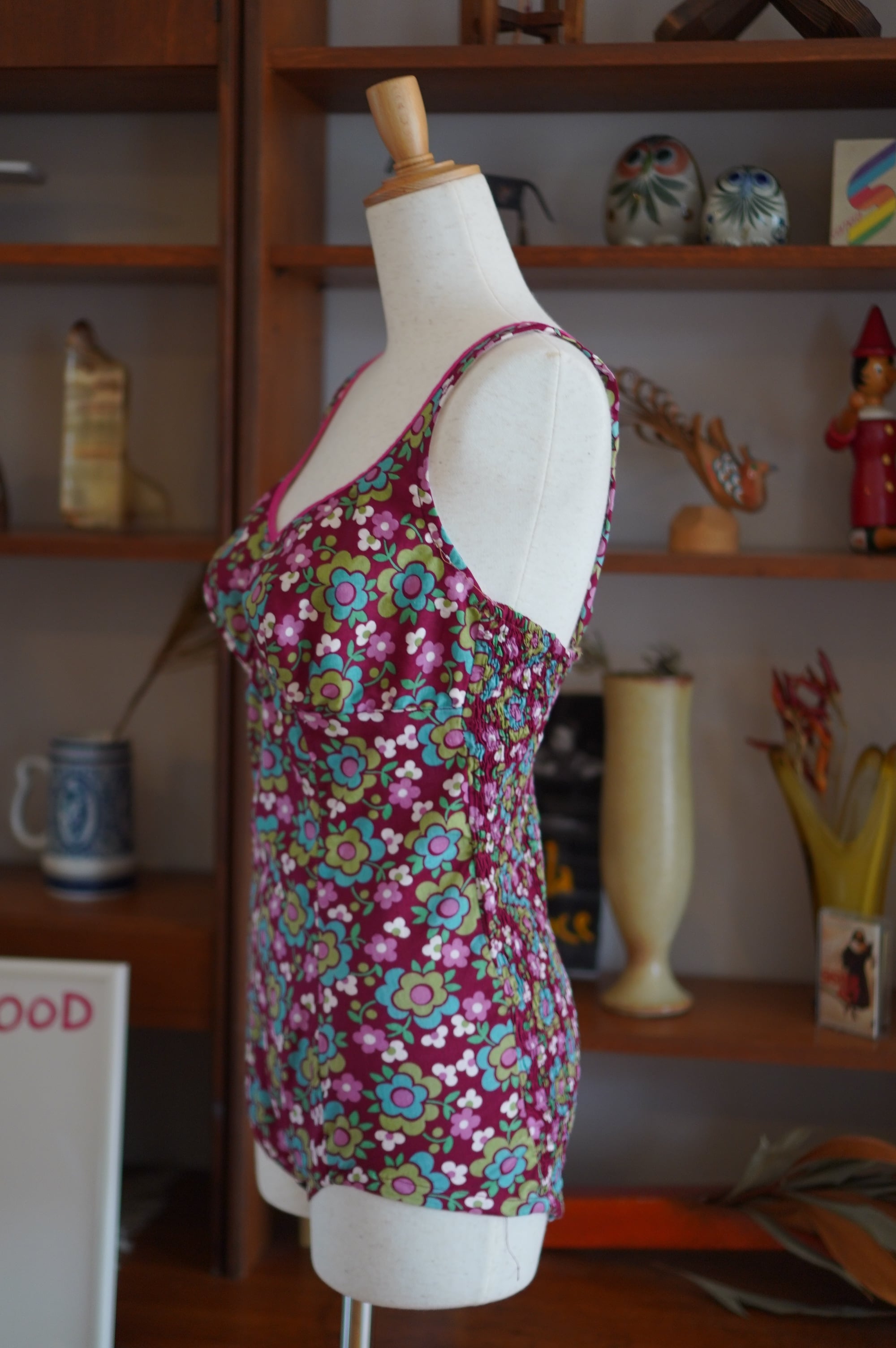 vintage burgundy floral swimwear