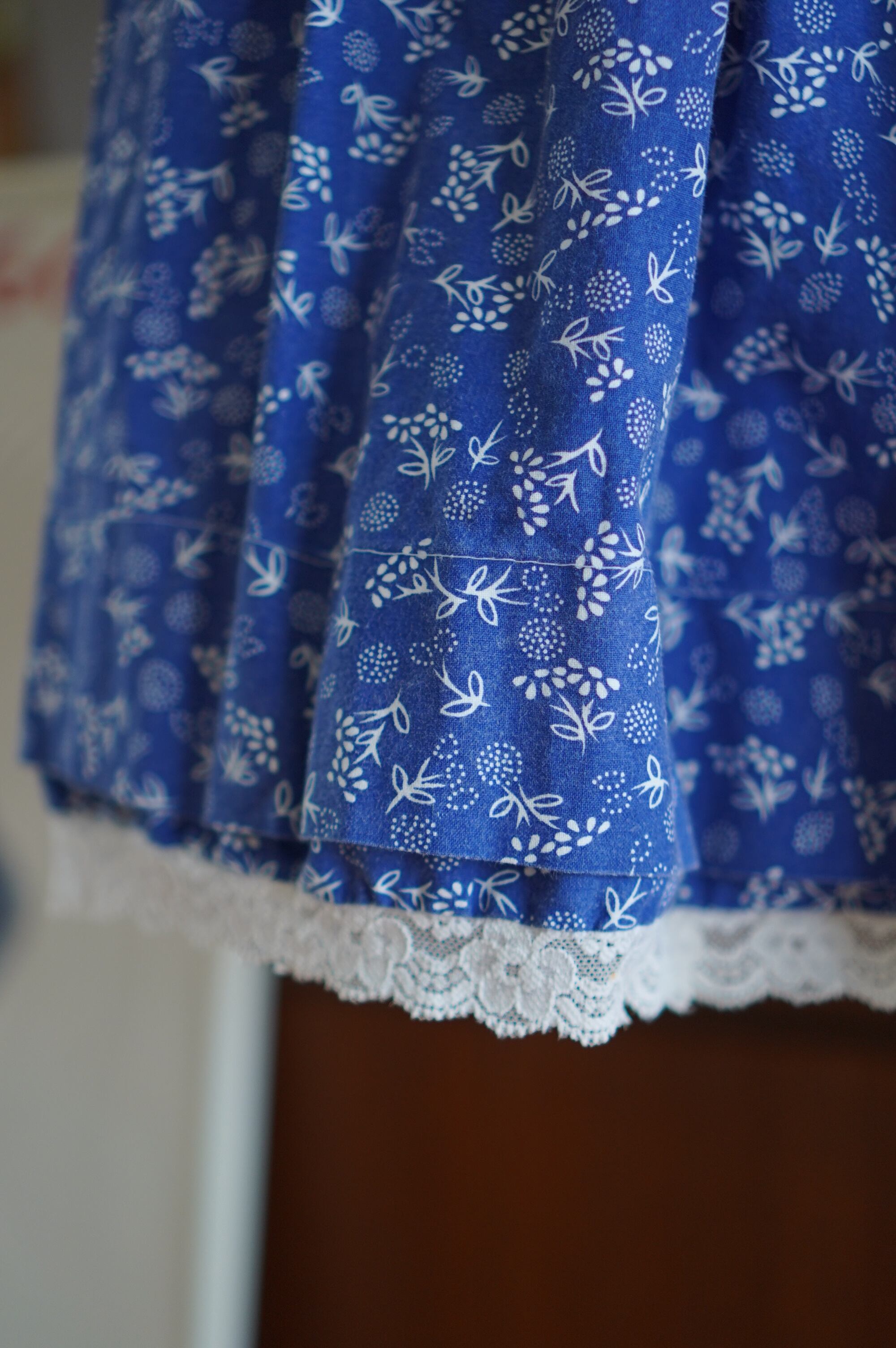 裾にはさりげないレーストリムが施されていて、