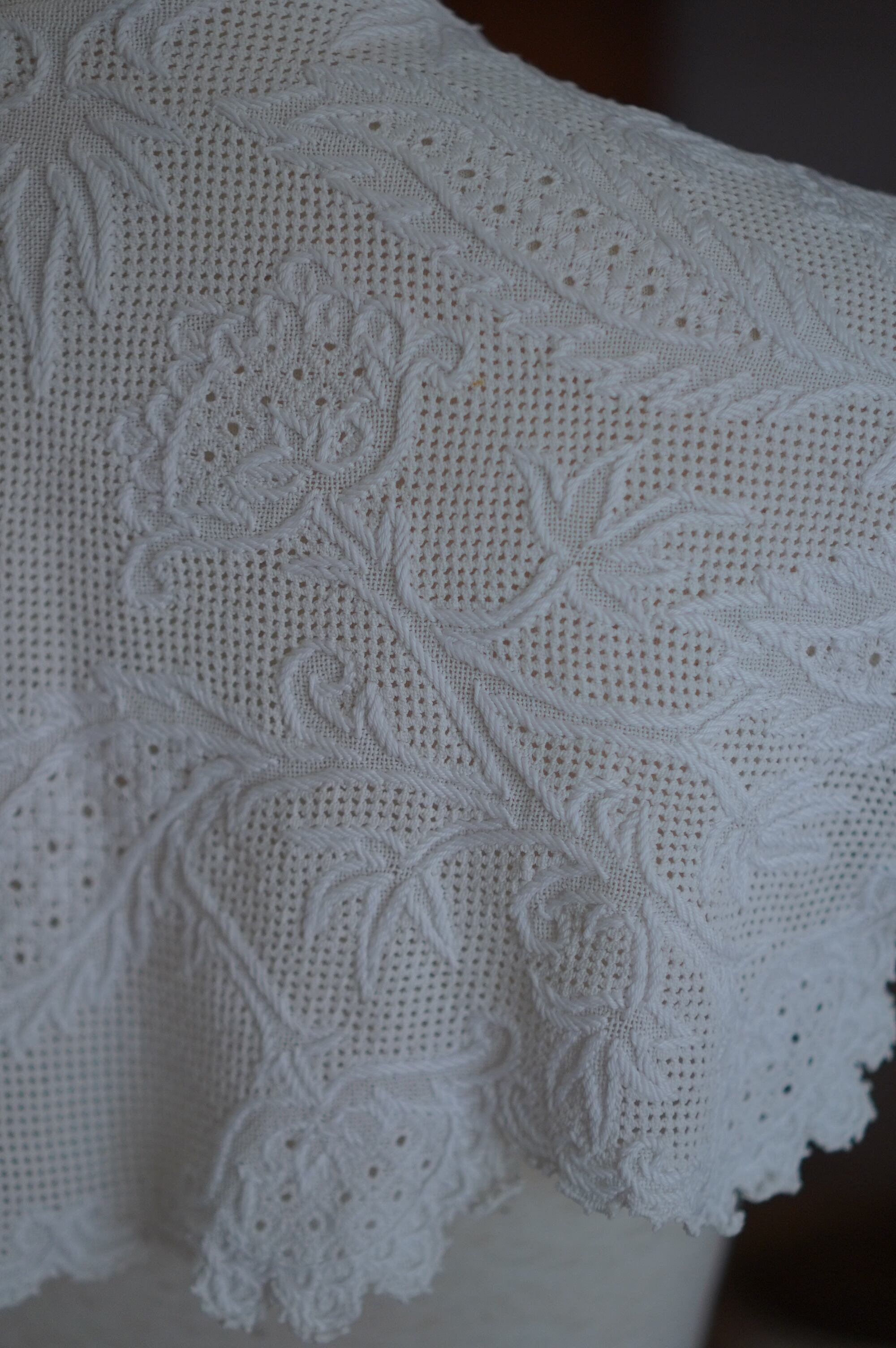 丁寧なカットワークと立体感のある花や葉の刺繍が魅力的です。