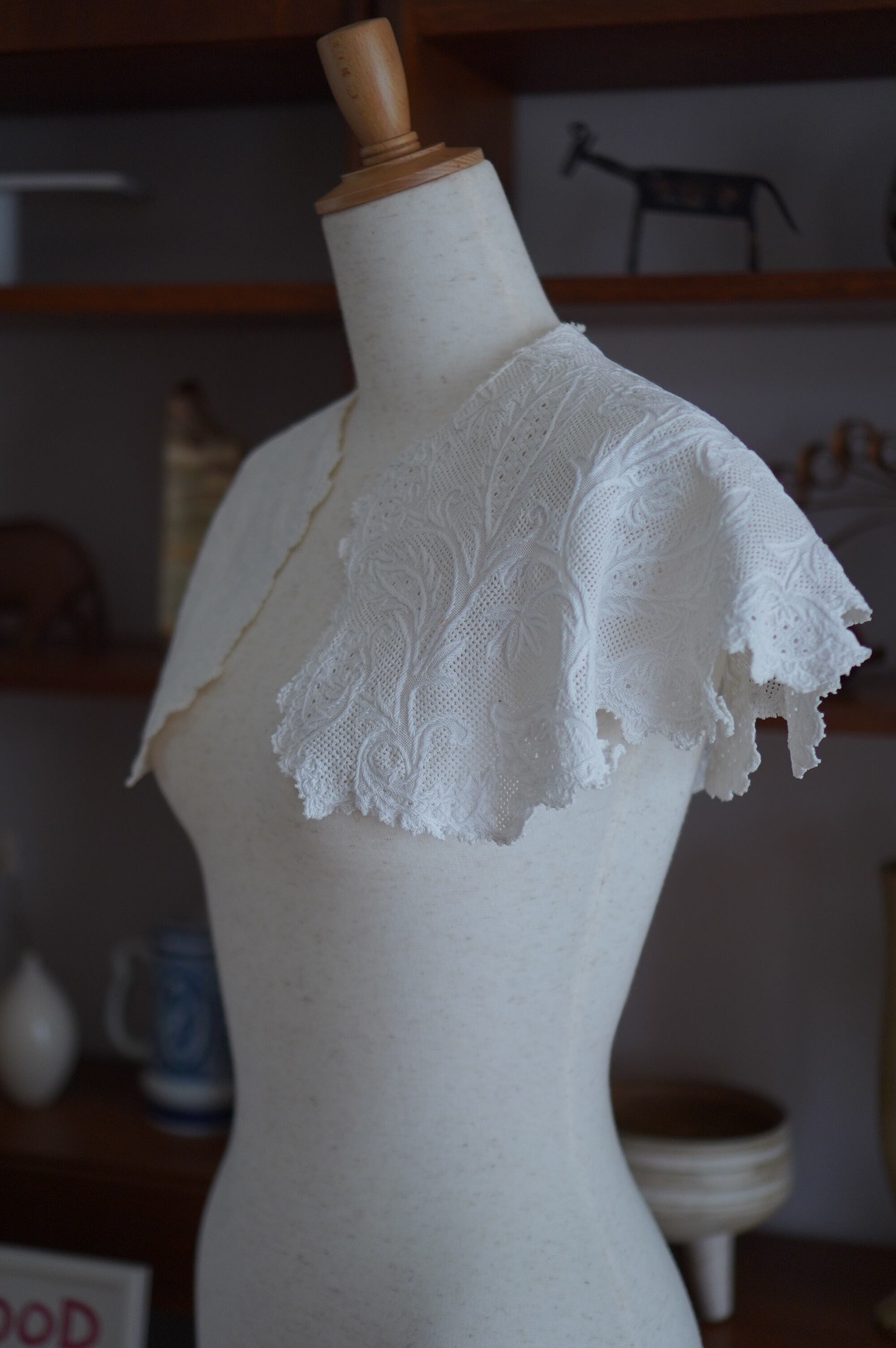 手仕事の温もりがぎゅっと詰まった、ヴィンテージの刺繍ケープカラー。
