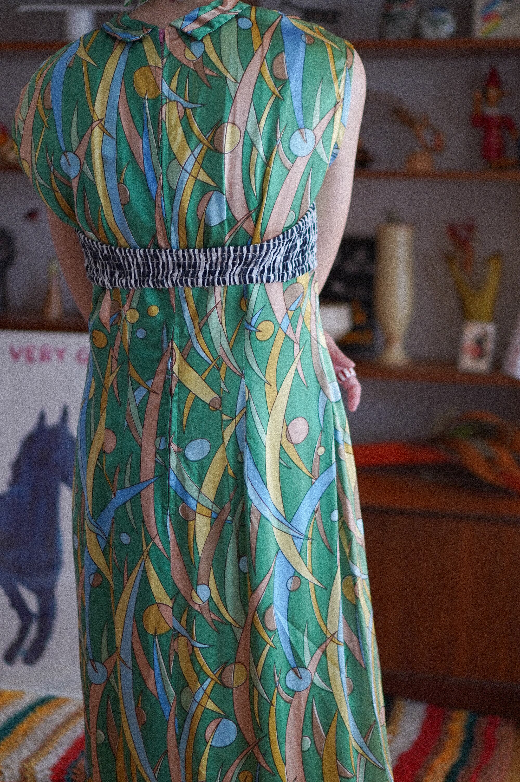 ホルターネック&バックのシャーリング仕様で、