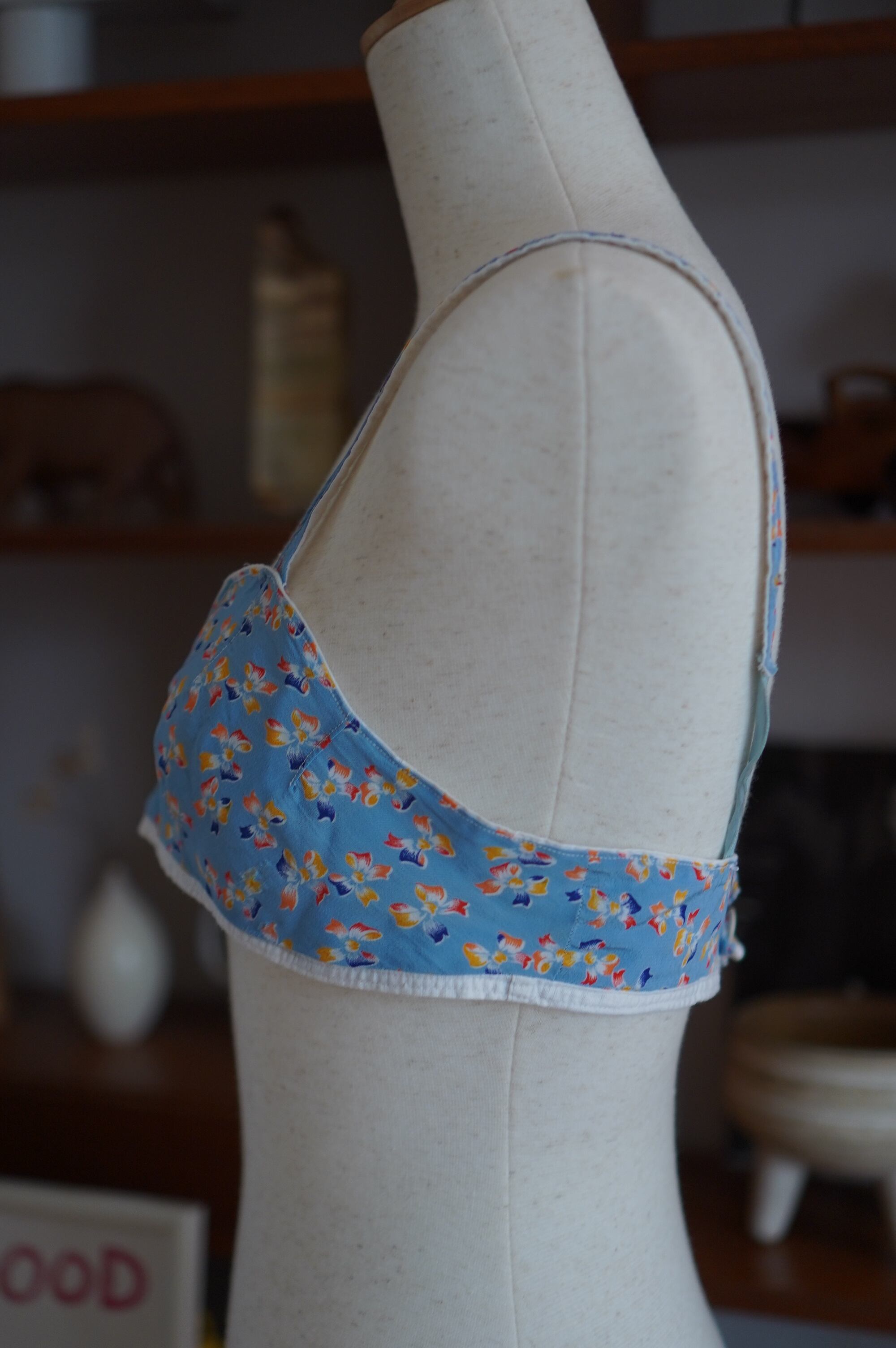 vintage blue floral cotton bralette