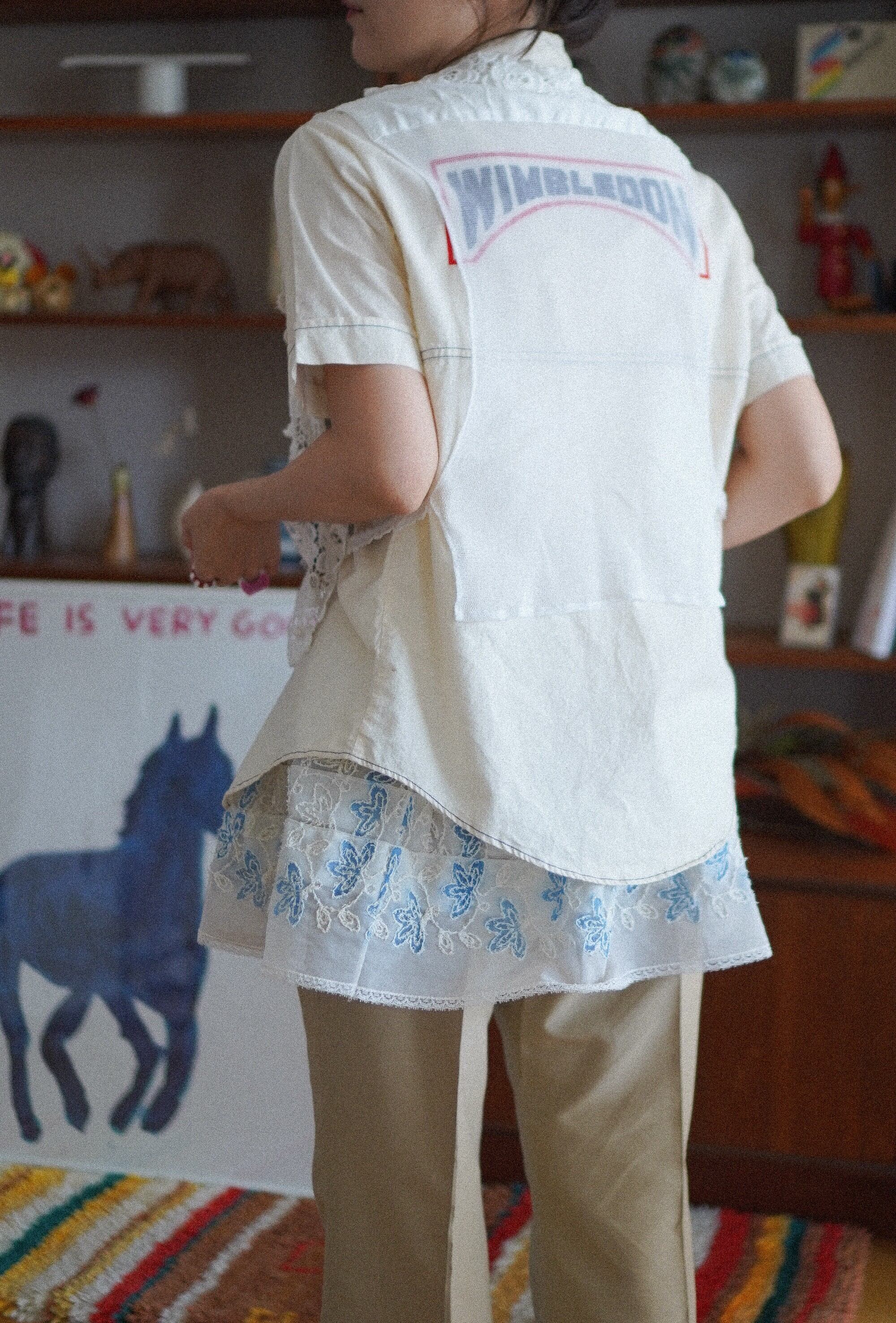 花柄のレースが贅沢にあしらわれた、オープンワークのレイヤードベスト。フロントは総レース、バックはやわらかなメッシュ生地で、透け感のコントラストがチャームポイント。襟元にもさりげないレースがあしらわれており、クラシカルな雰囲気も良きです。Tシャツやワンピースの上からさらっと重ねるだけで、いつものコーディネートにニュアンスをプラスしてくれるアイテム。軽やかな質感なので、夏はもちろん、秋には長袖にレイヤードするのもおすすめです。-floral lace openwork layered vest
