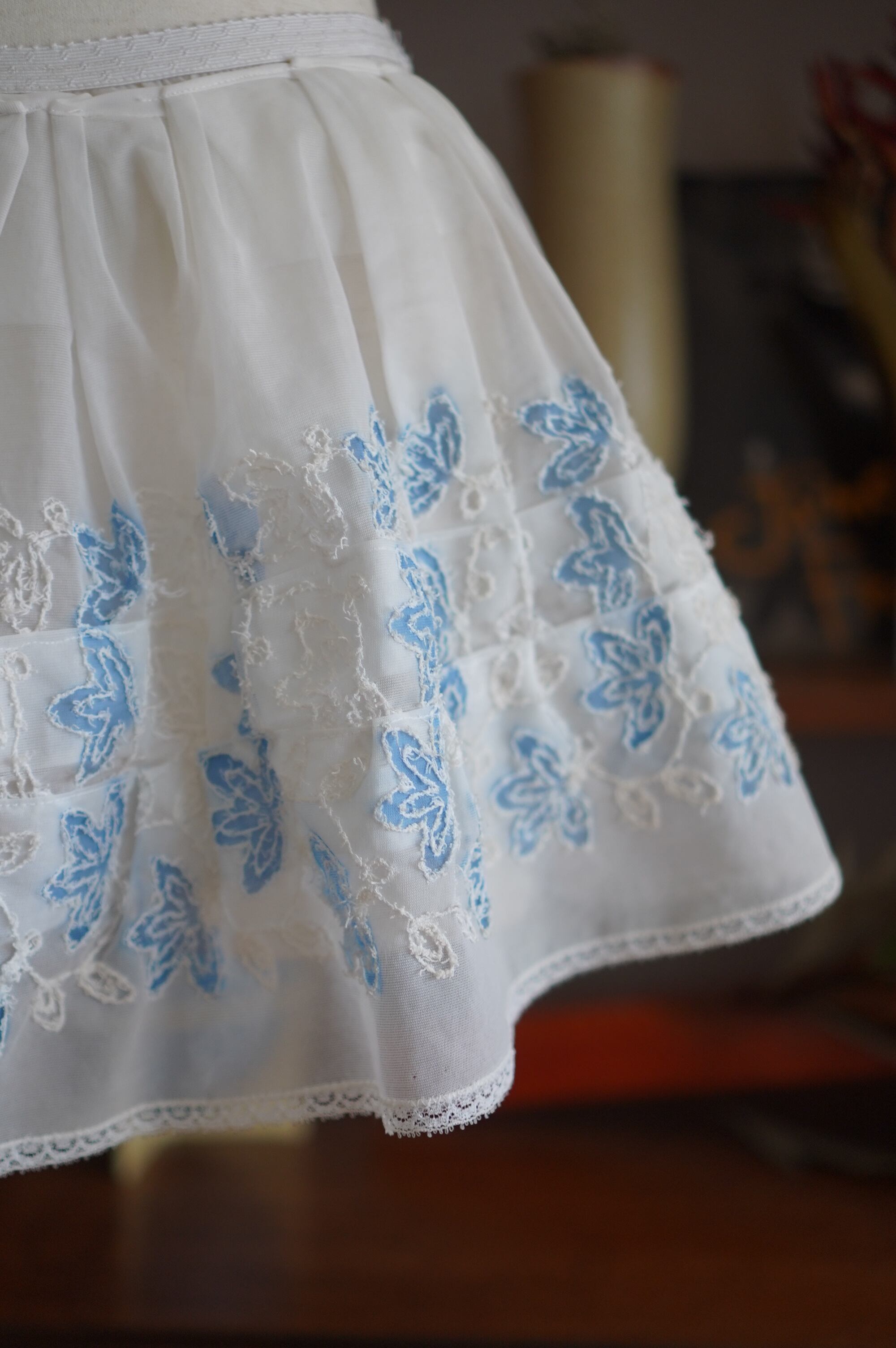 blue embroidered sheer skirt