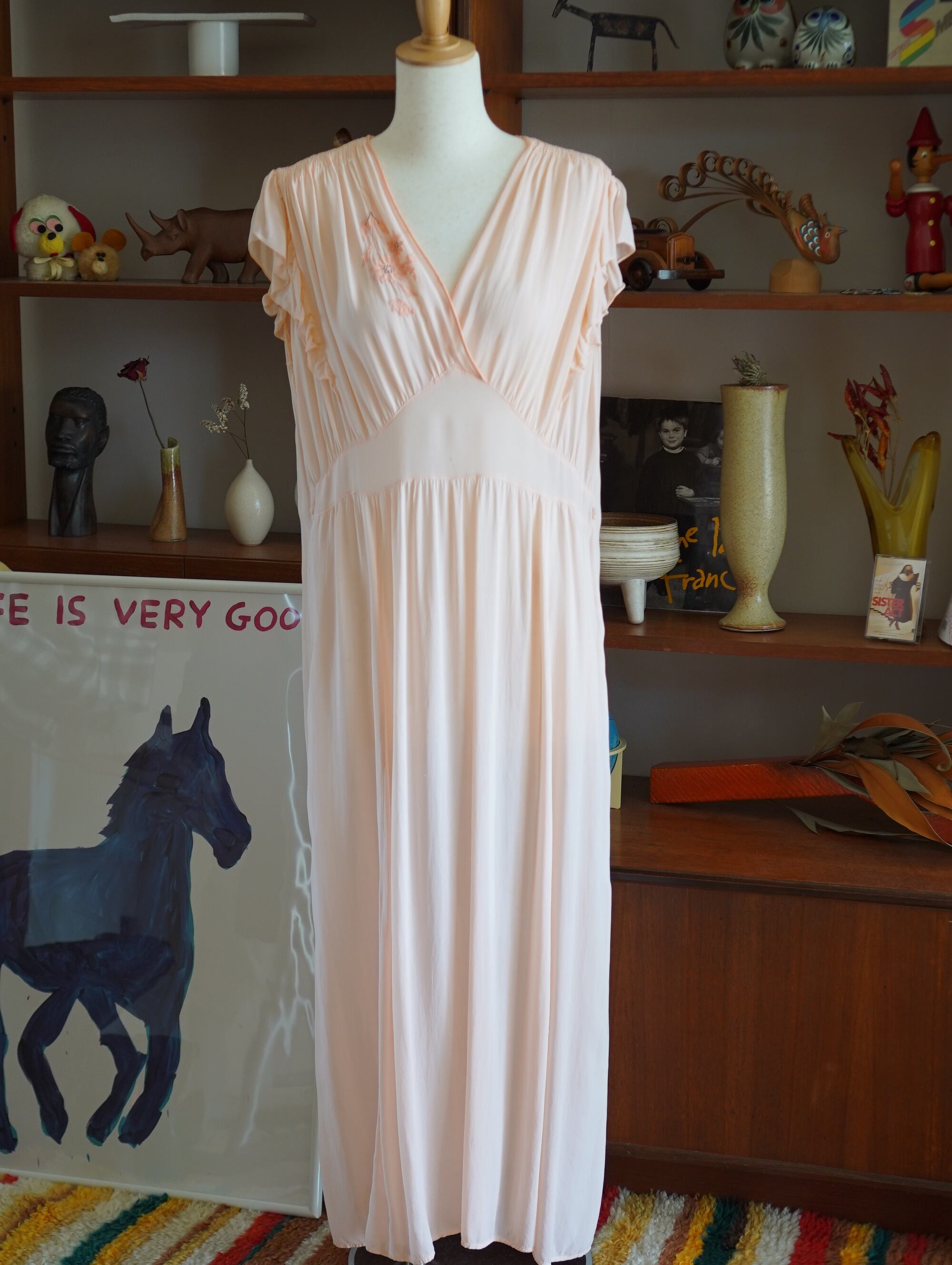 floral embroidered peach nightdress