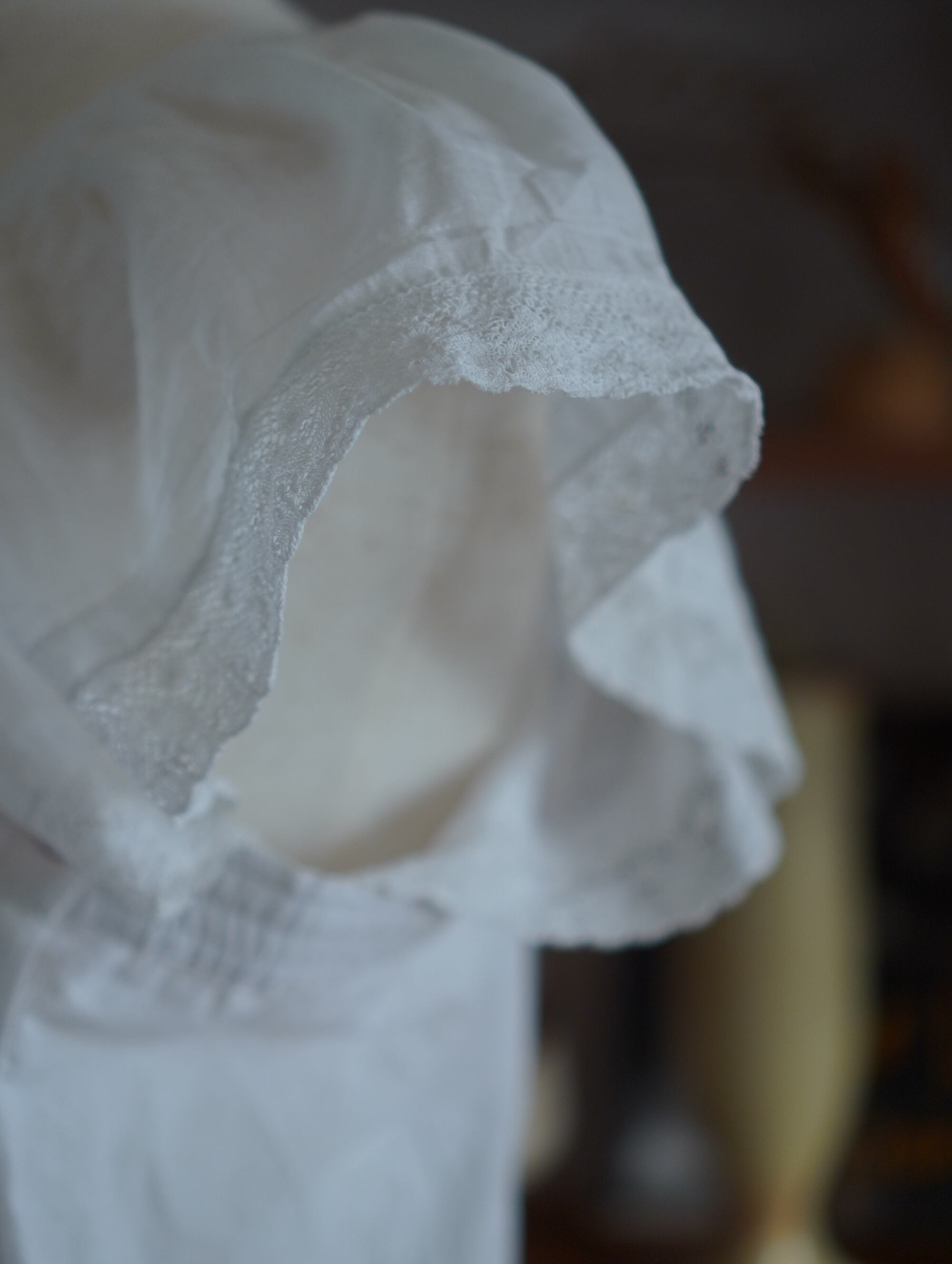 pin-tuck & circle lace french antique cotton dress – lace strap remake