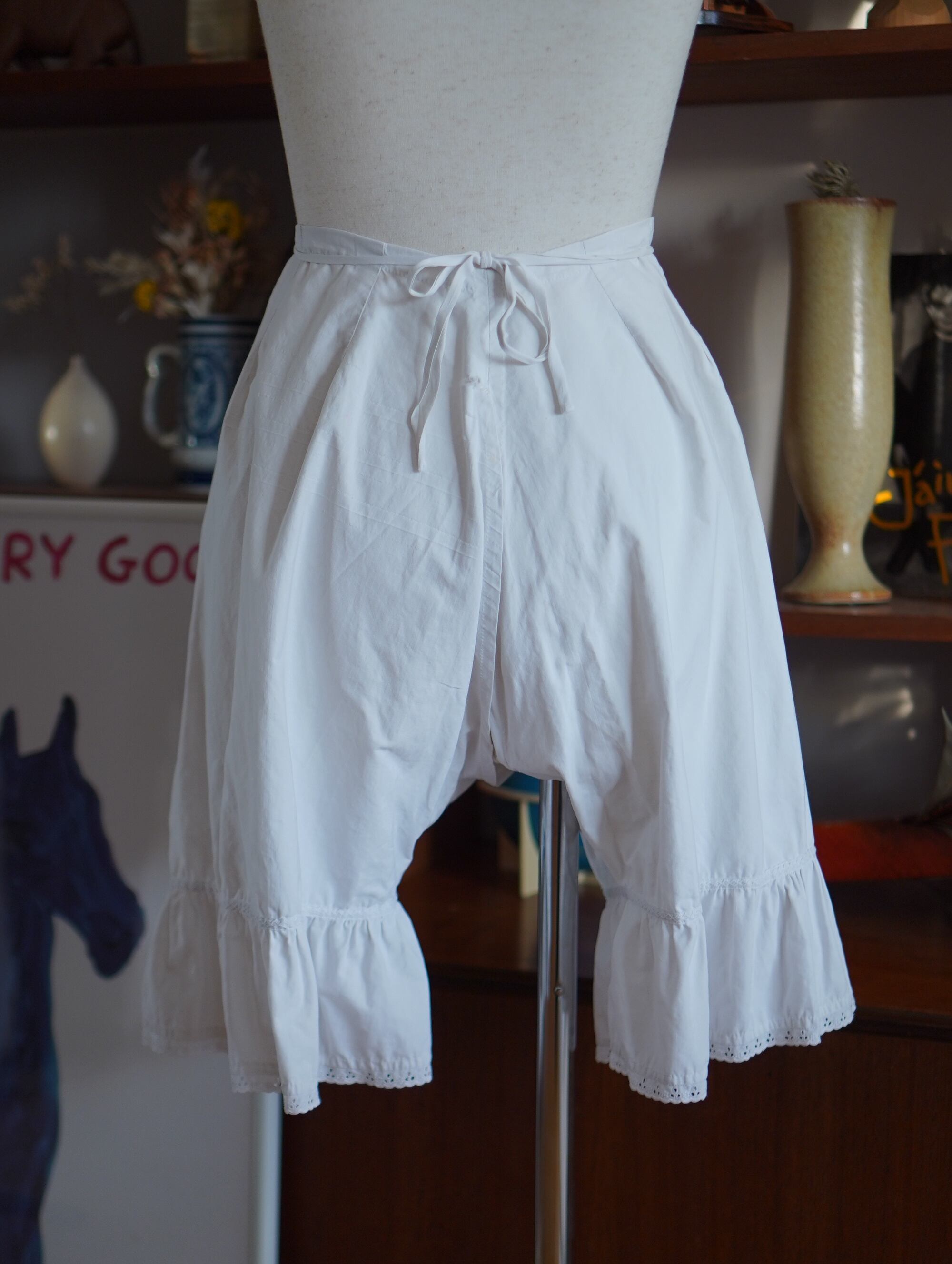 1900's victotian cotton drawers with red monogram