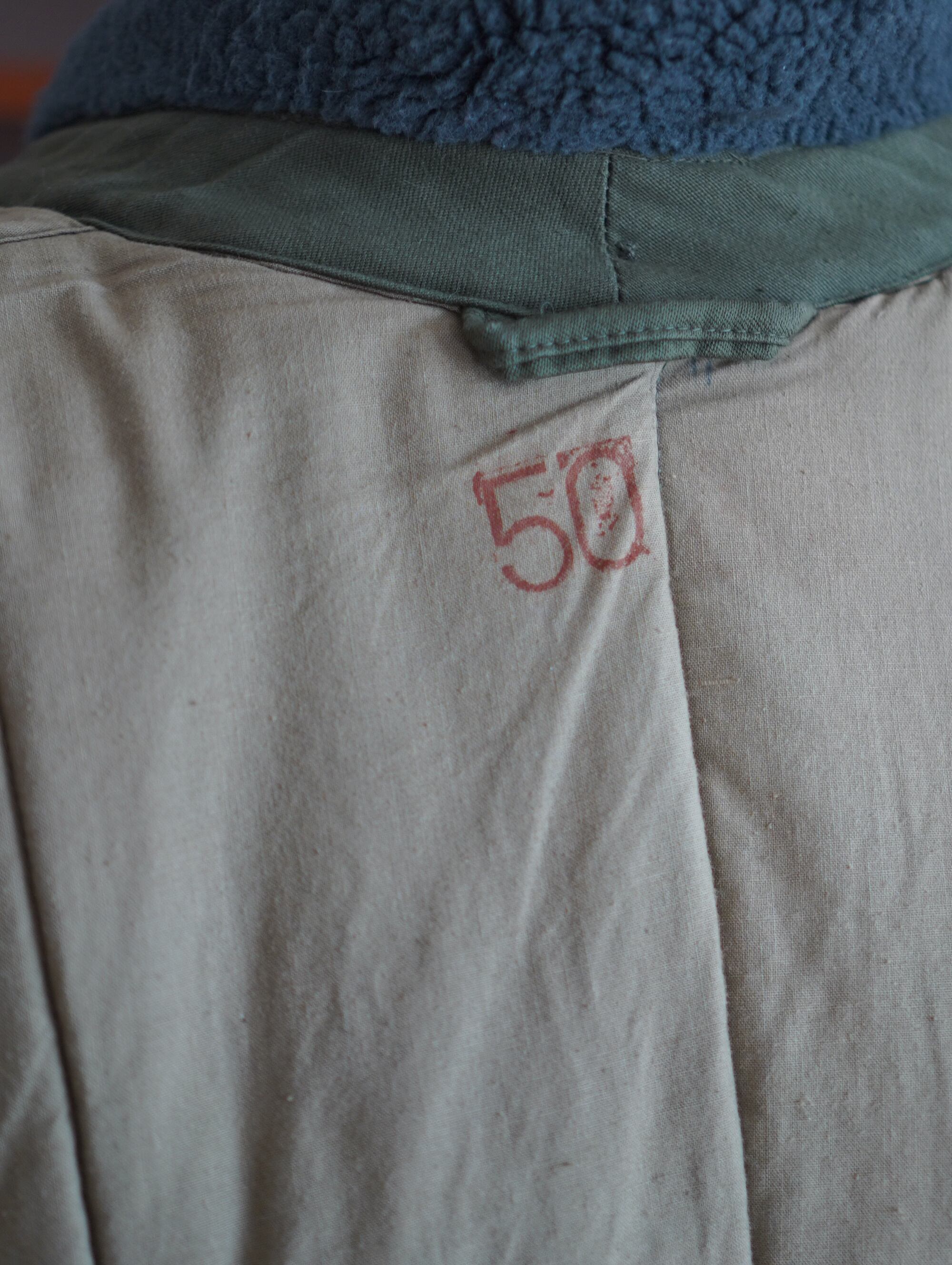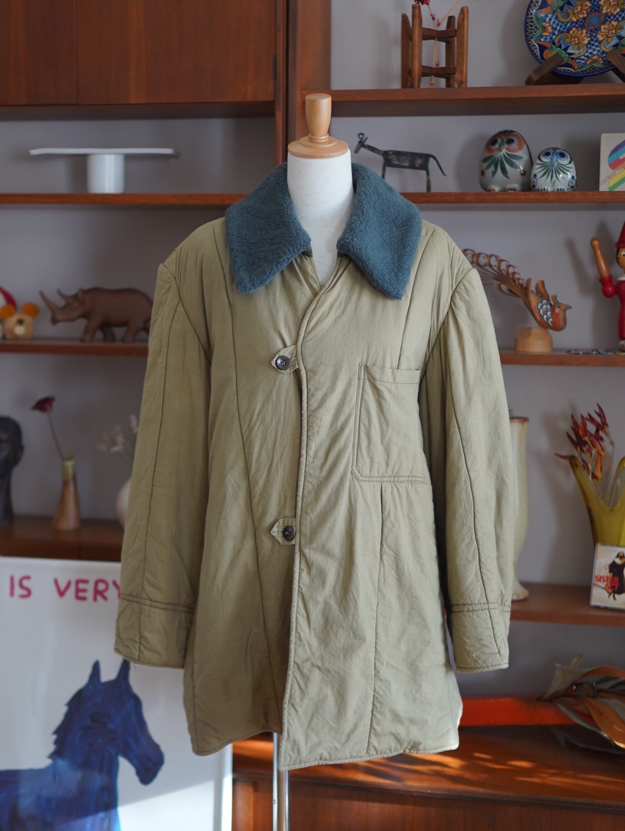 1964年製のハンガリー軍のヴィンテージミリタリージャケット。当時の兵士たちが冬の寒さに耐えるために支給されていたもので、ふかふかのボア襟と中綿入りのしっかりとした作りが特徴的です。
