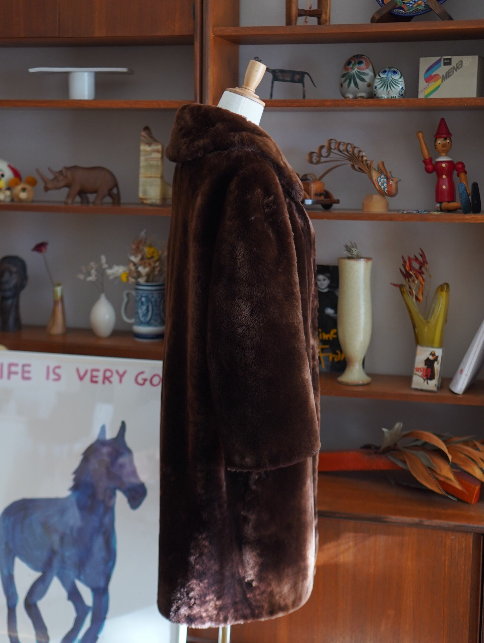 vintage real fur long coat in deep brown