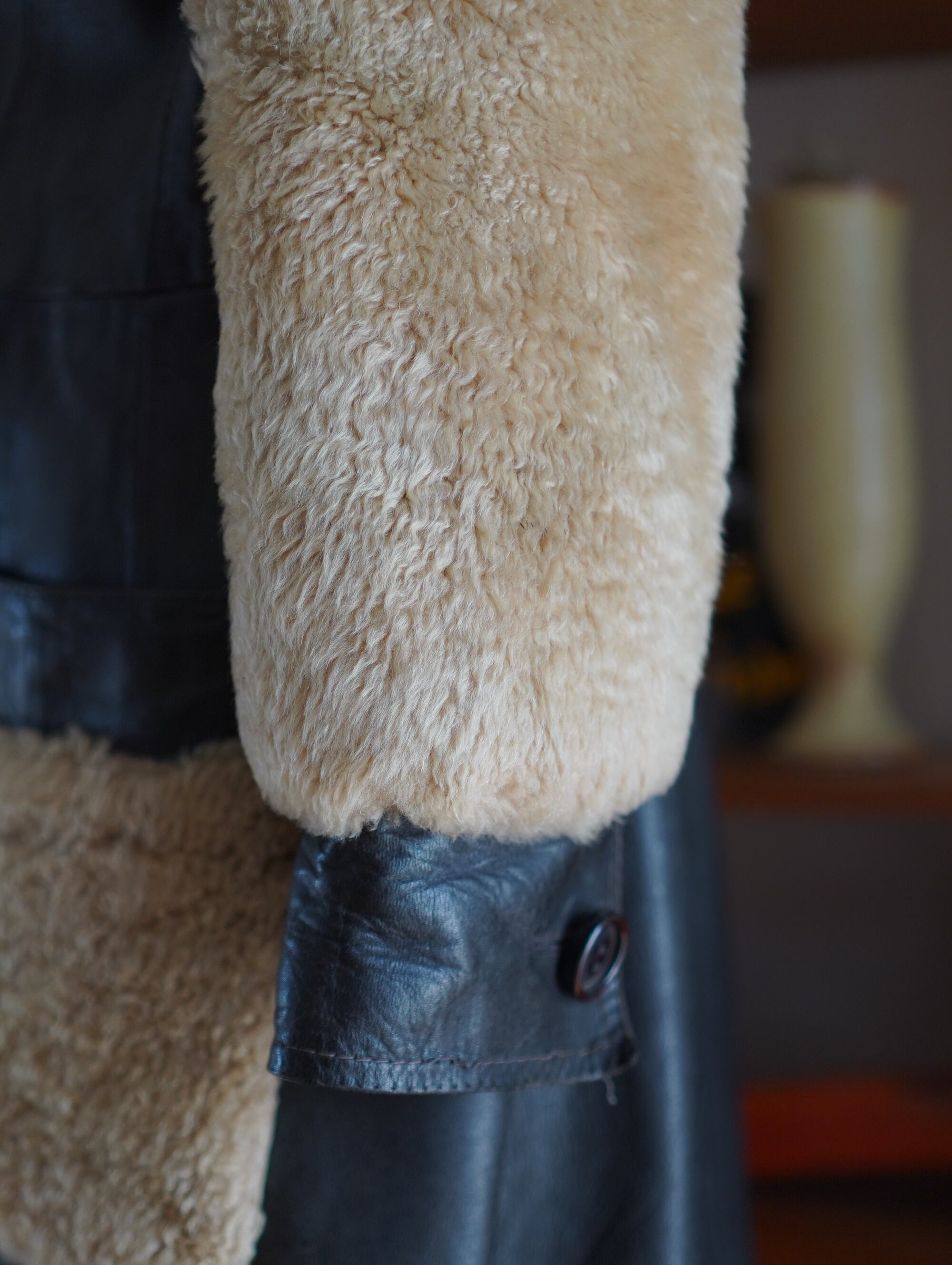 hungarian vintage "elegant MAJUS" real shearling & leather long coat with belt