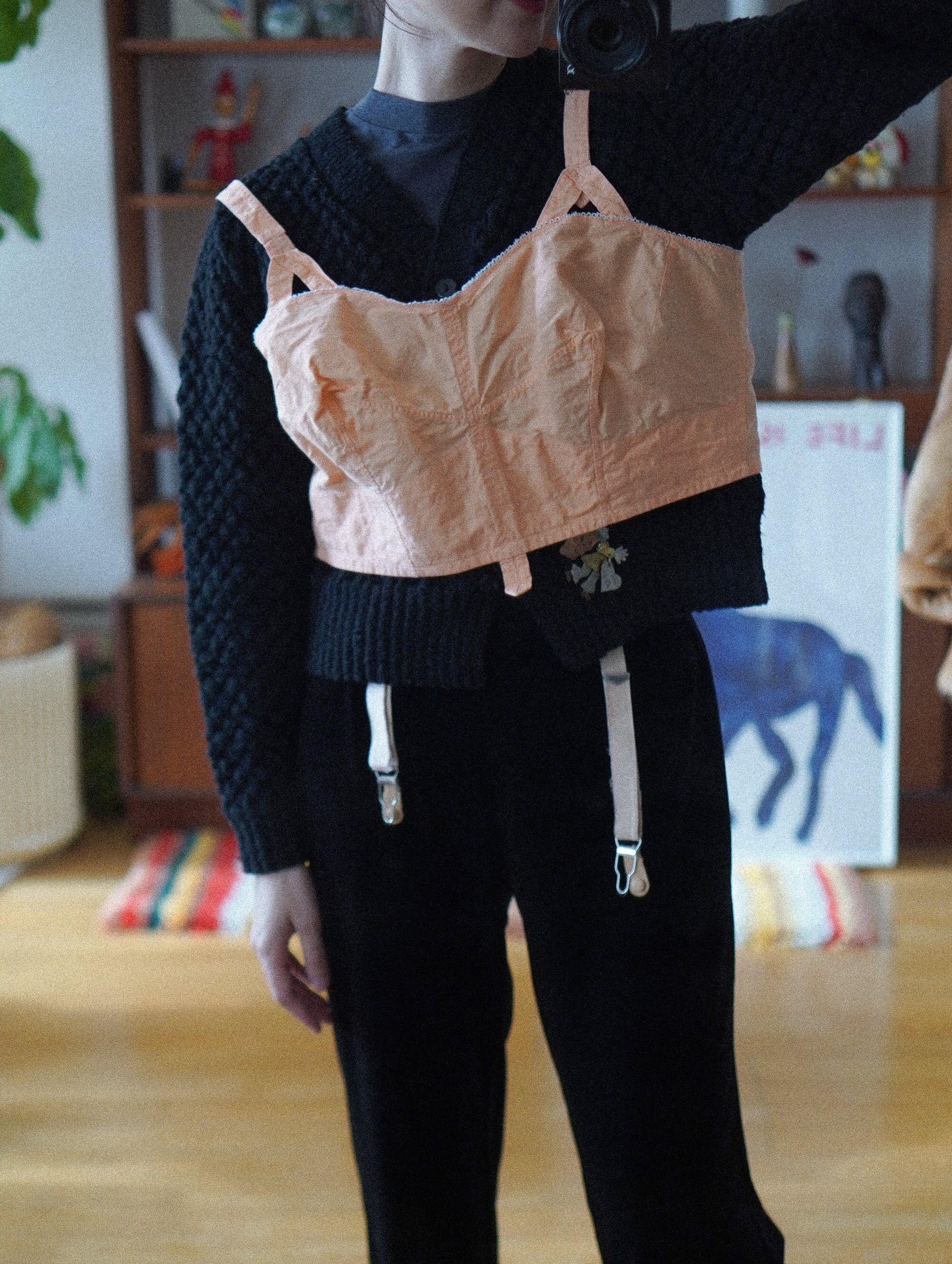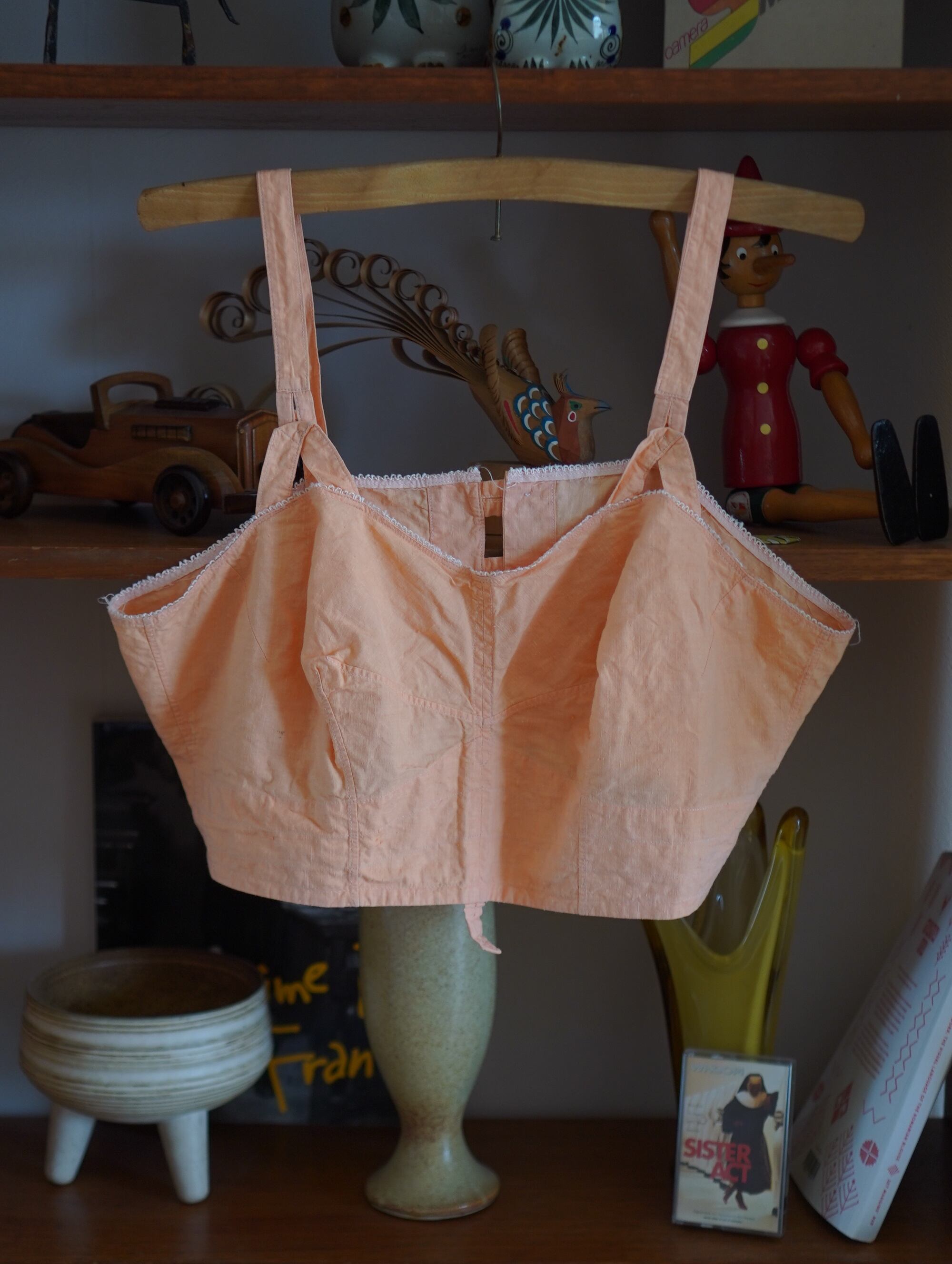 1930s∼40s vintage cotton bra top-peach pink