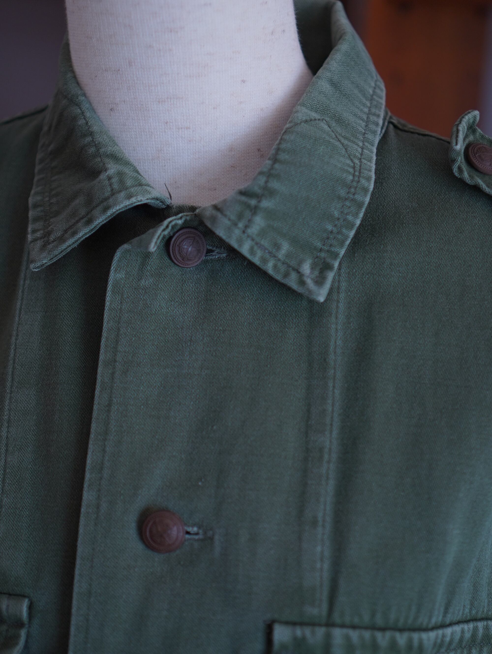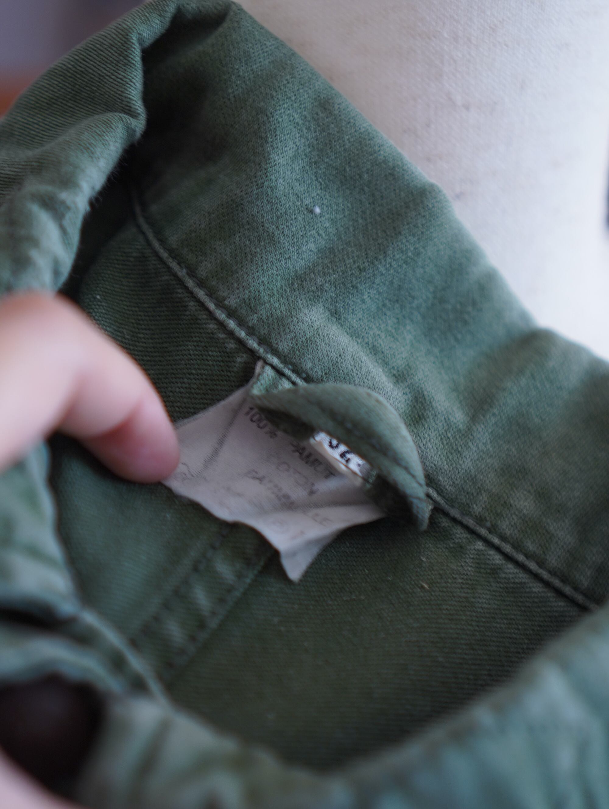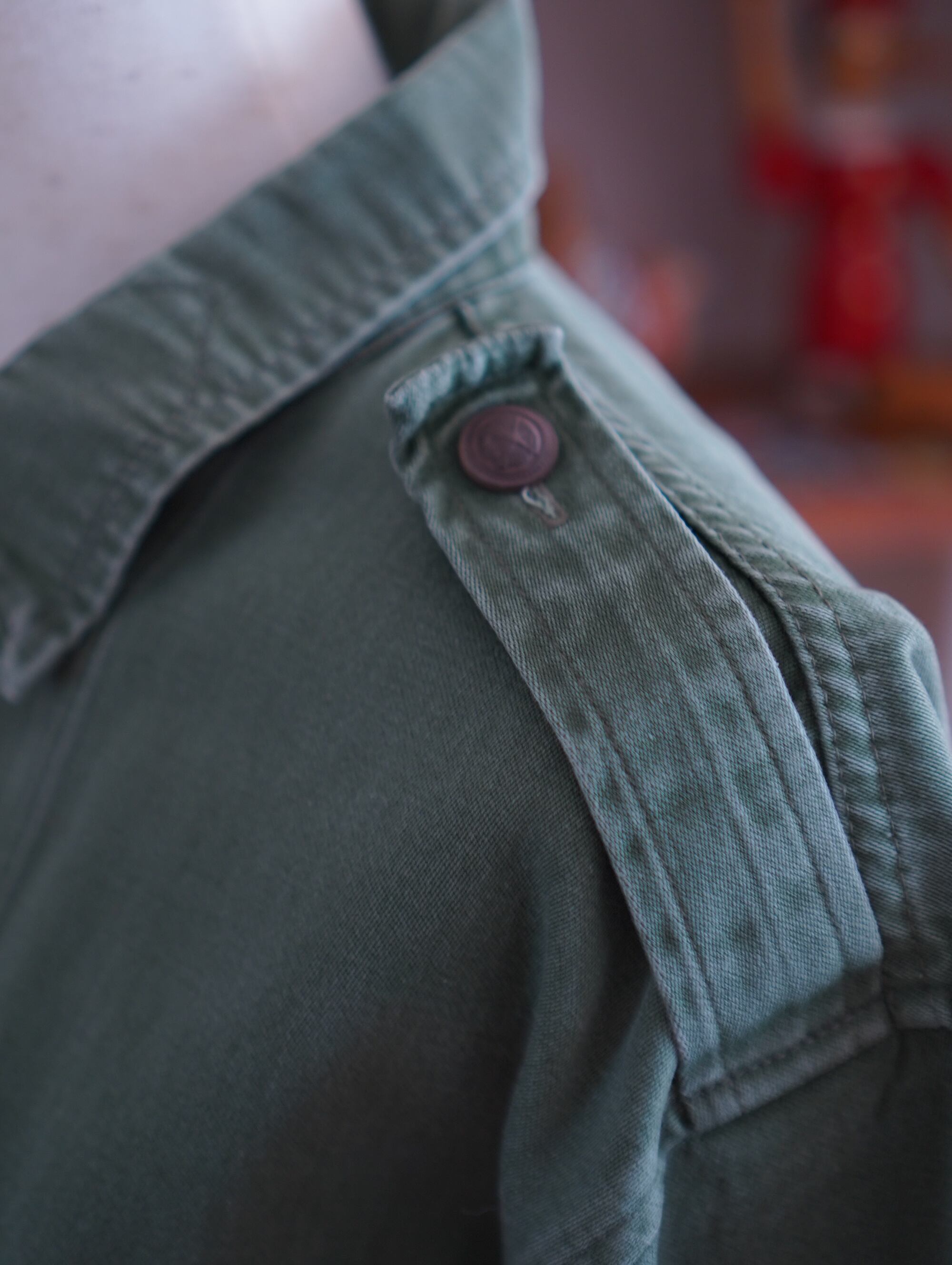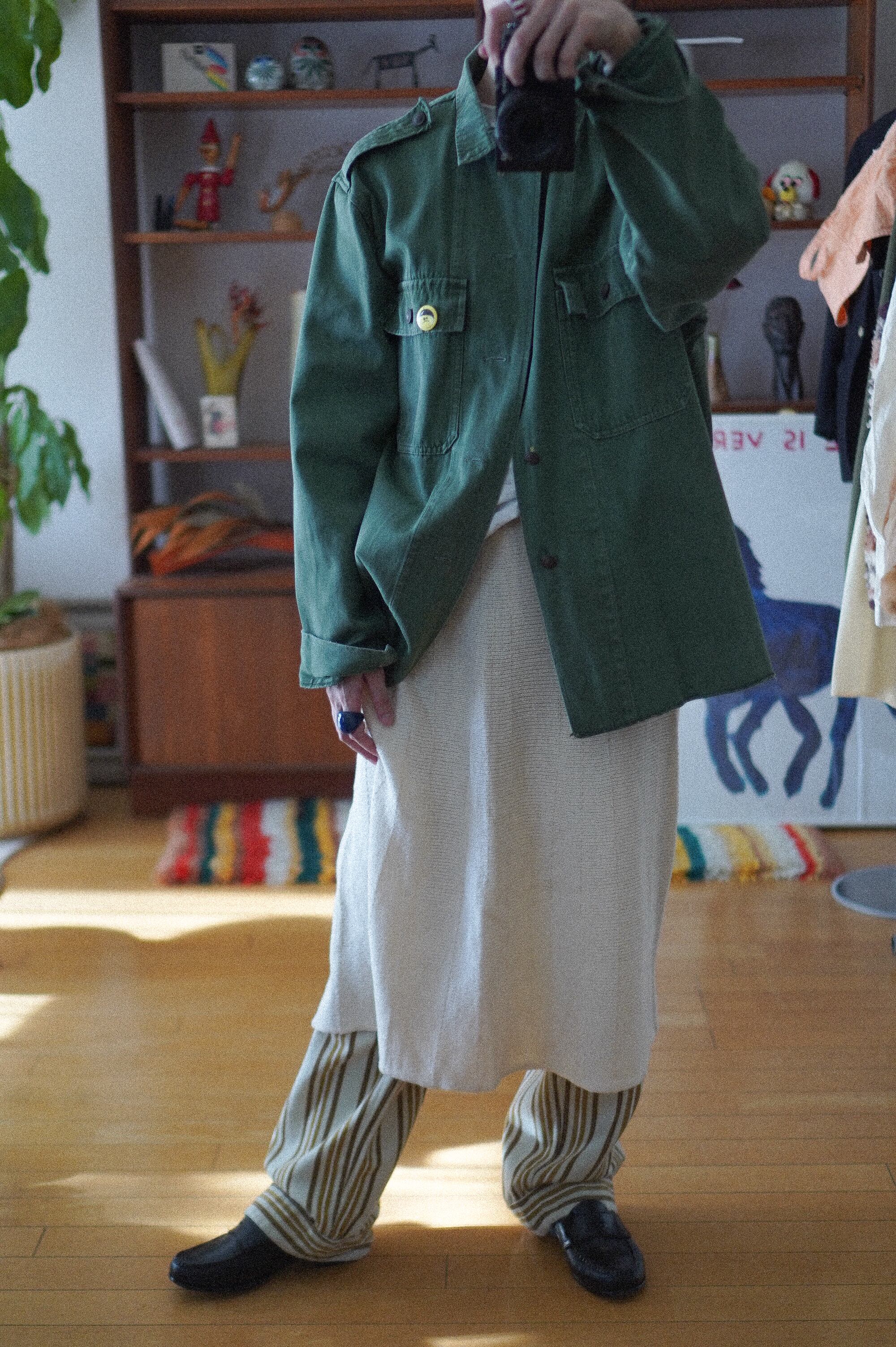 ハンガリー軍で実際に使用されていた、フィールドジャケット。年代はおそらく80s∼90s頃。程よくくたっとしたコットン地と、色褪せたオリーブグリーンが味わい深く、ワークジャケットのような雰囲気で日常にもなじんでくれる一着です。スカートやワンピースなど、甘めアイテムとのミックススタイルもおすすめです。/hungarian army field jacket