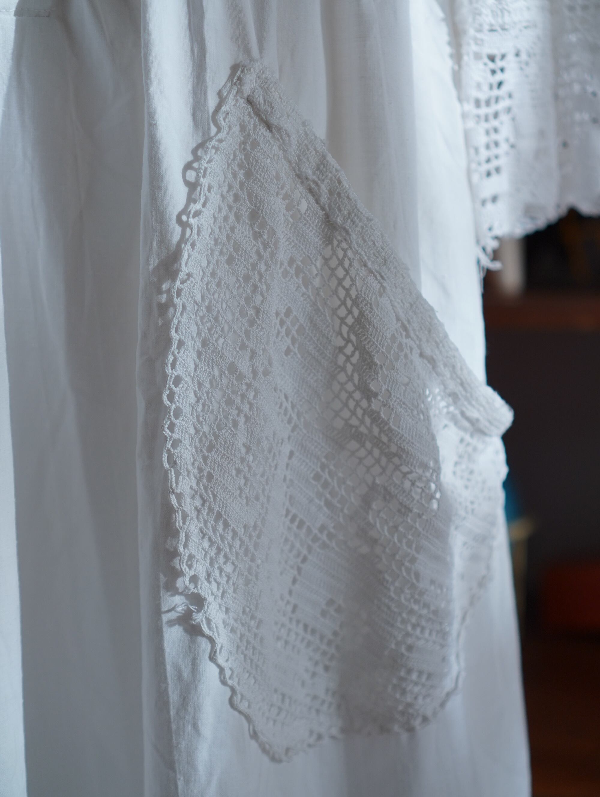 20枚目、クロシェ編みレースの端に、オレンジ色の錆がございます。その他状態は良好です。