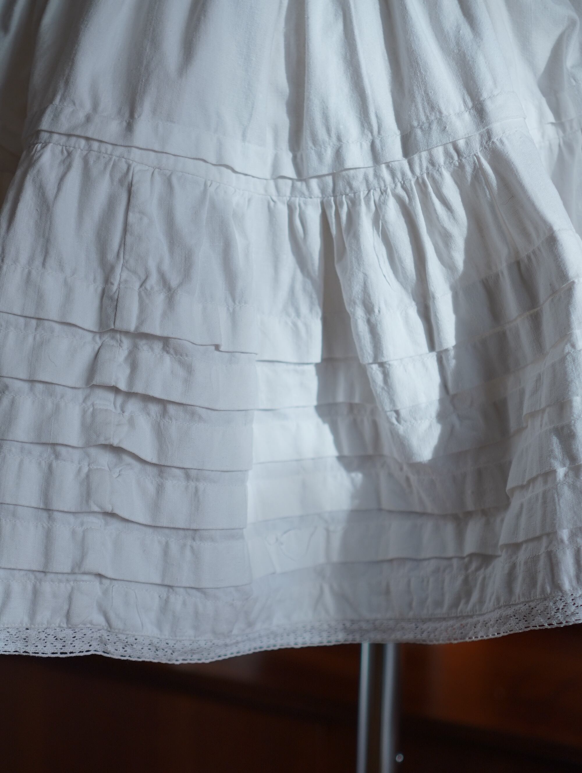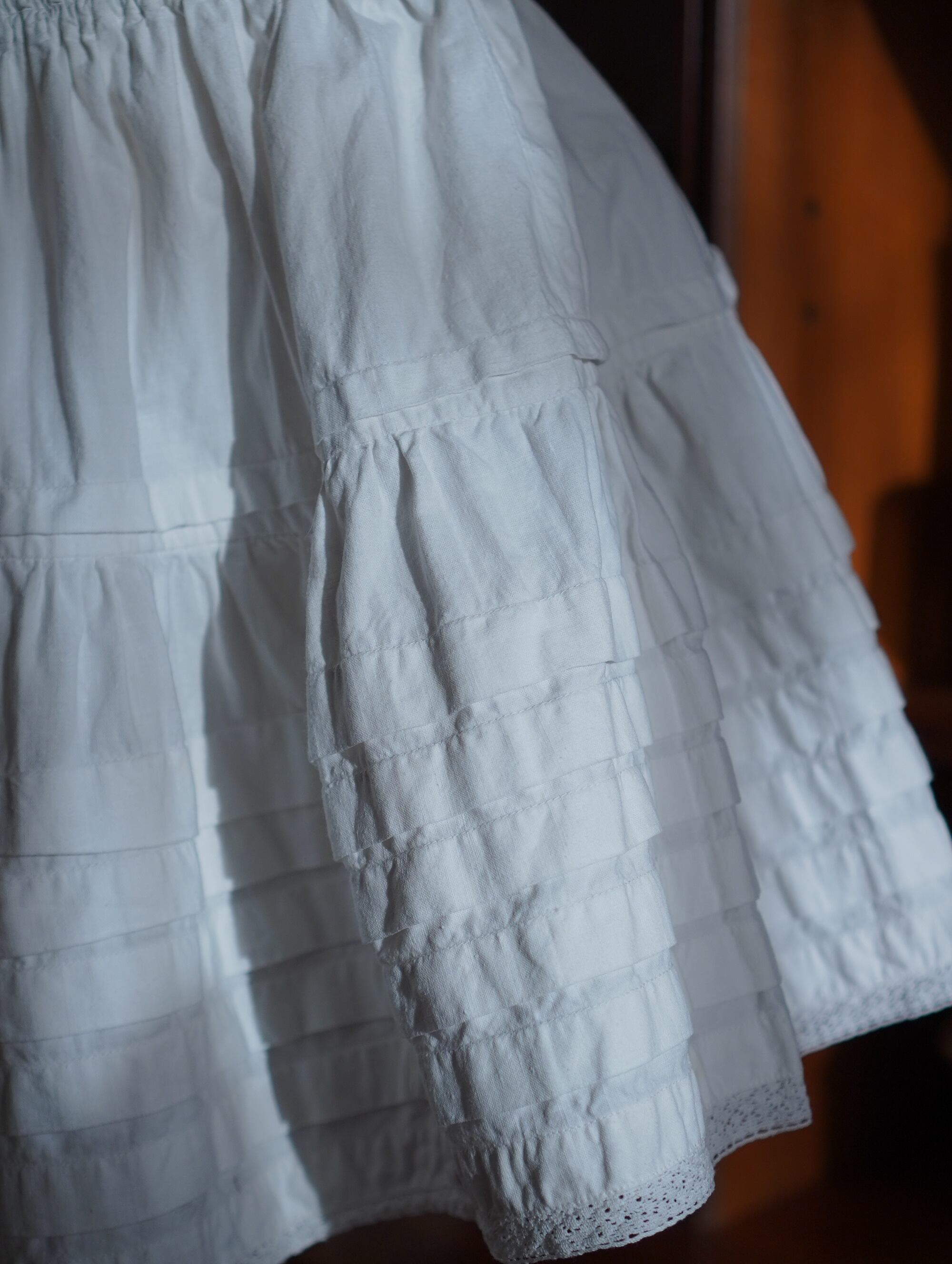 ボリューム感たっぷりのシルエットが最高にキュートなコットンスカート。シャーリングゴムでしっかりホールドしてくれます。細かなフリルの段々デザインと、裾のちいさなレースがとにかくキュート。レイヤードがたのしくなる、日々にわくわくをくれるようなアイテムです。/frilly cotton skirt