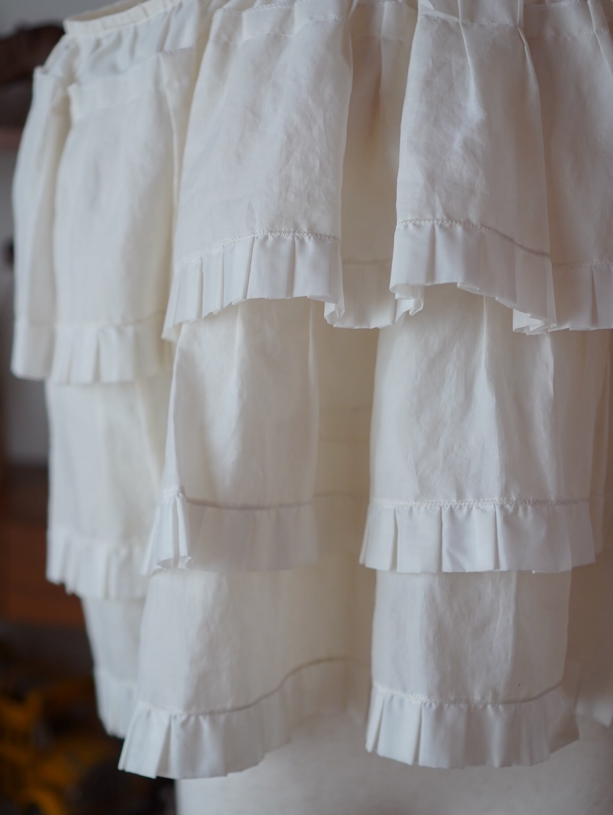reworked tiered ruffle top from hungarian vintage skirt × crochet strap