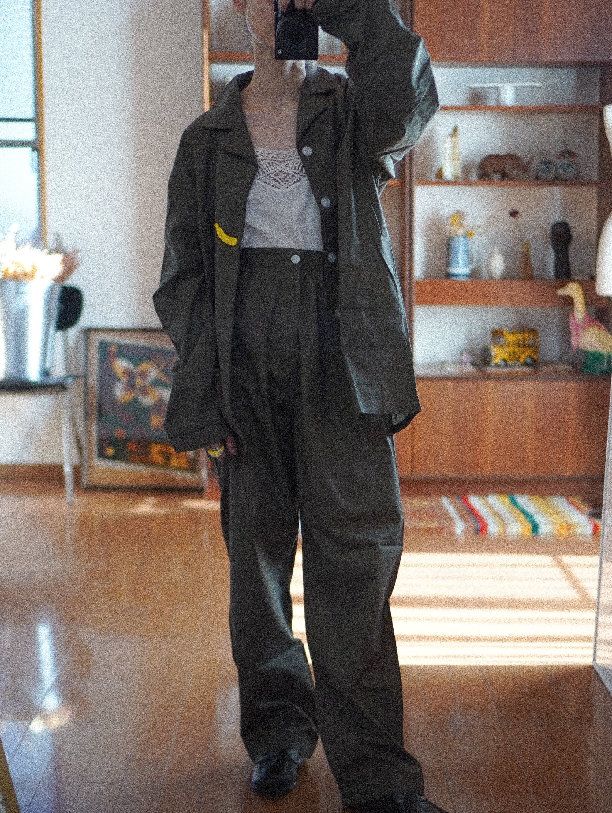 シンプルながらも、ヴィンテージならではの絶妙なカーキカラーがクールな、80s∼90sの空気をまとったパジャマセットアップ。