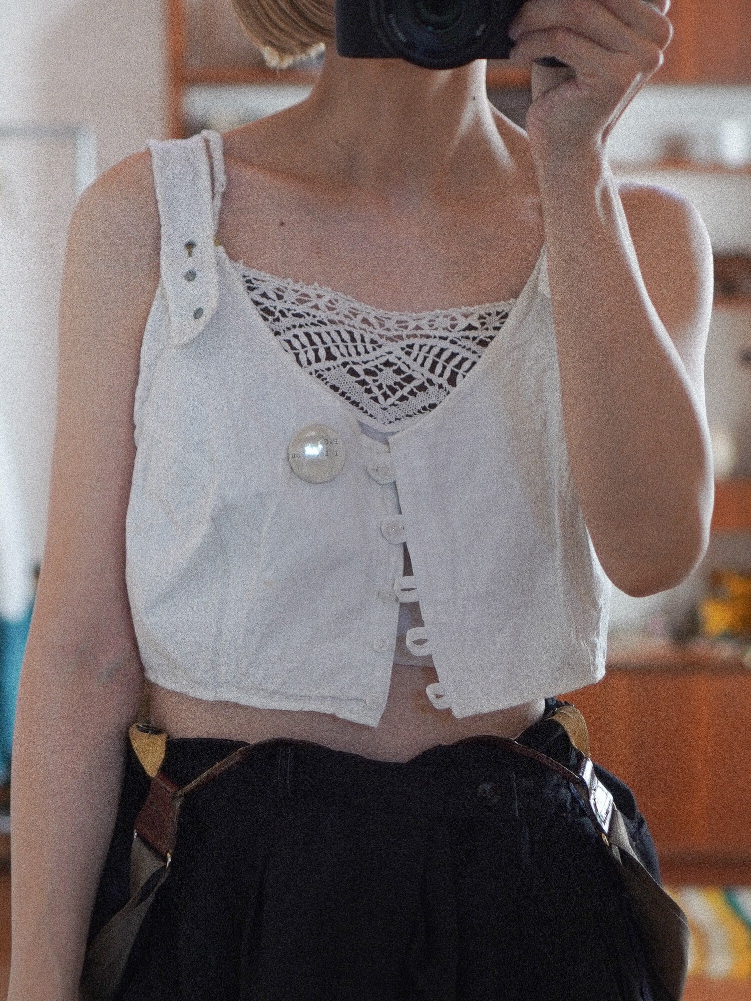 フロントはボタンで開閉できて、留めてブラトップのように着ても、あえて外してベストみたいに重ねてもキュート。