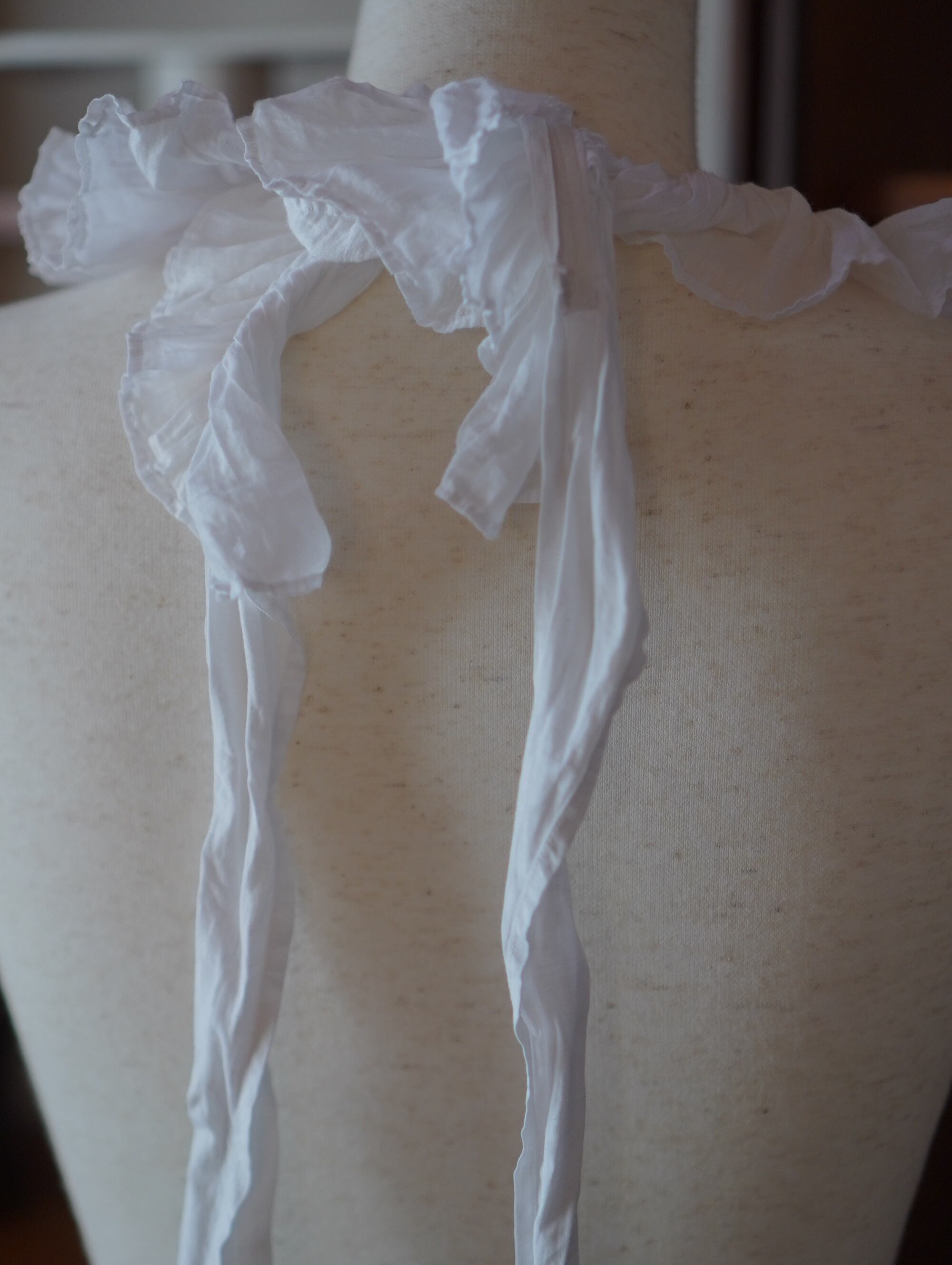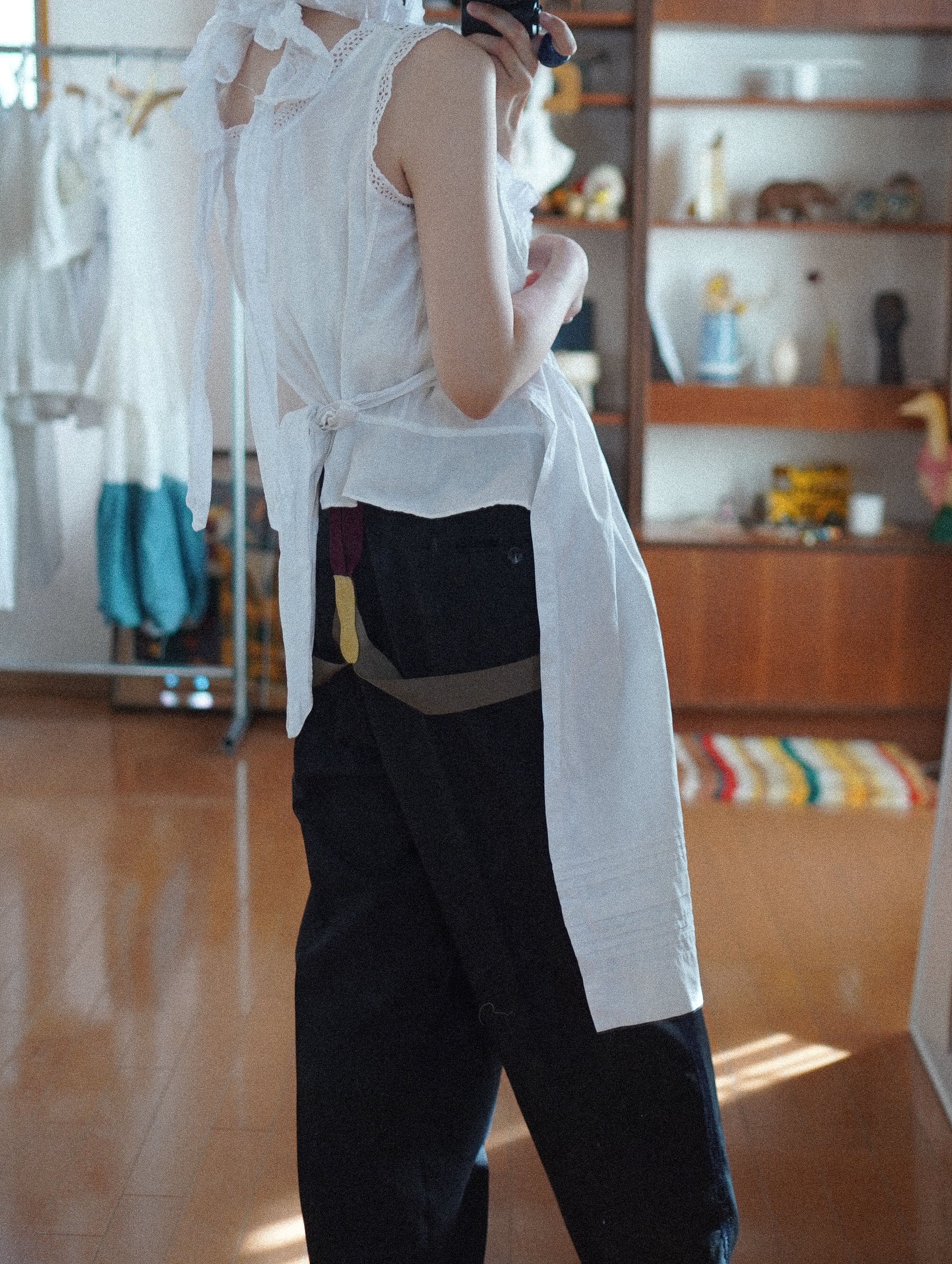 ※肩紐は長いフリルがそのまま続くアンティーク特有の仕様で、後ろでクロスして結ぶデザインです。