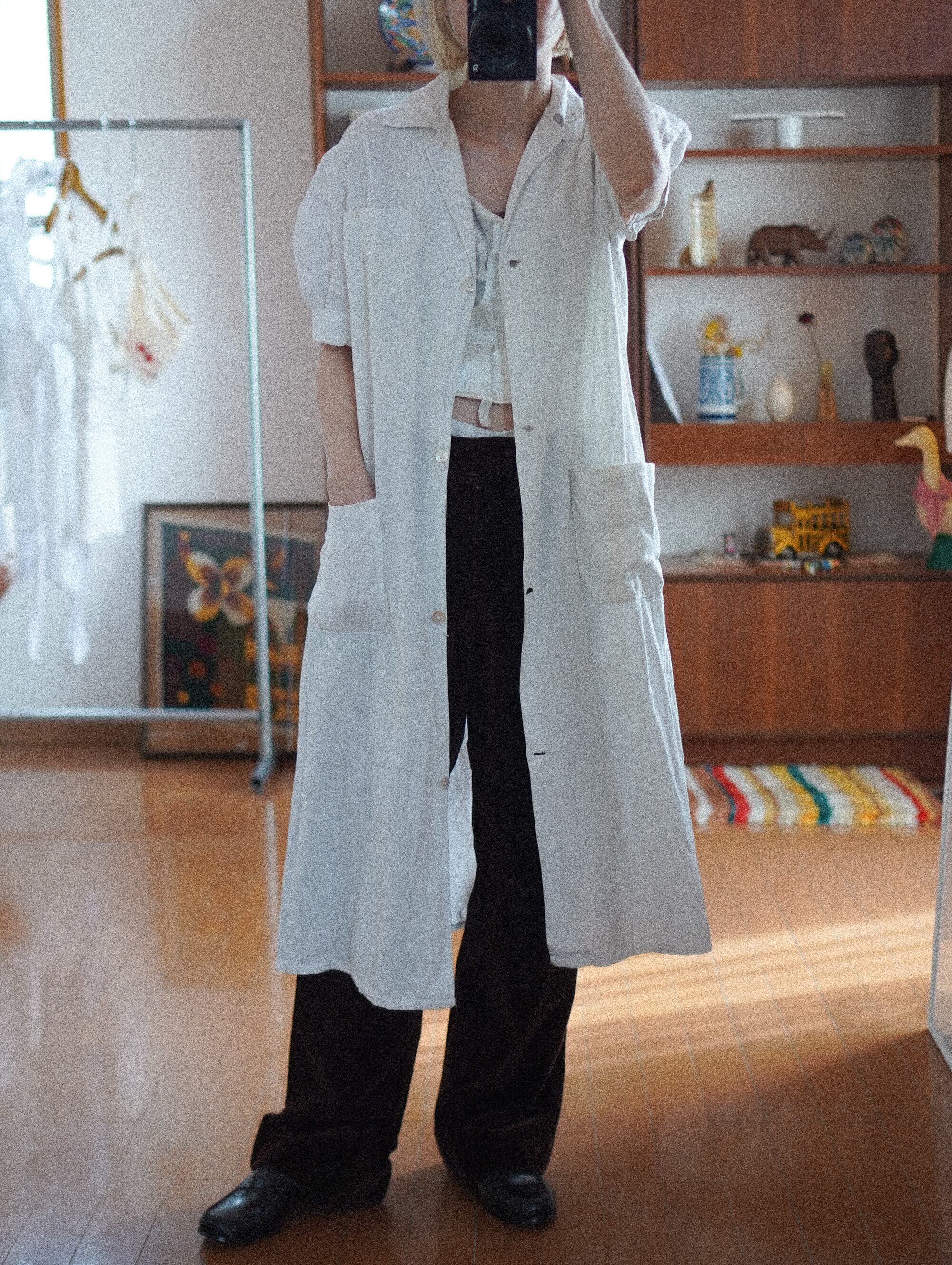ボタンを閉めてワンピースとしても、あけて軽い羽織としても楽しめるデザインで、春夏の空気にもとてもよく合います。