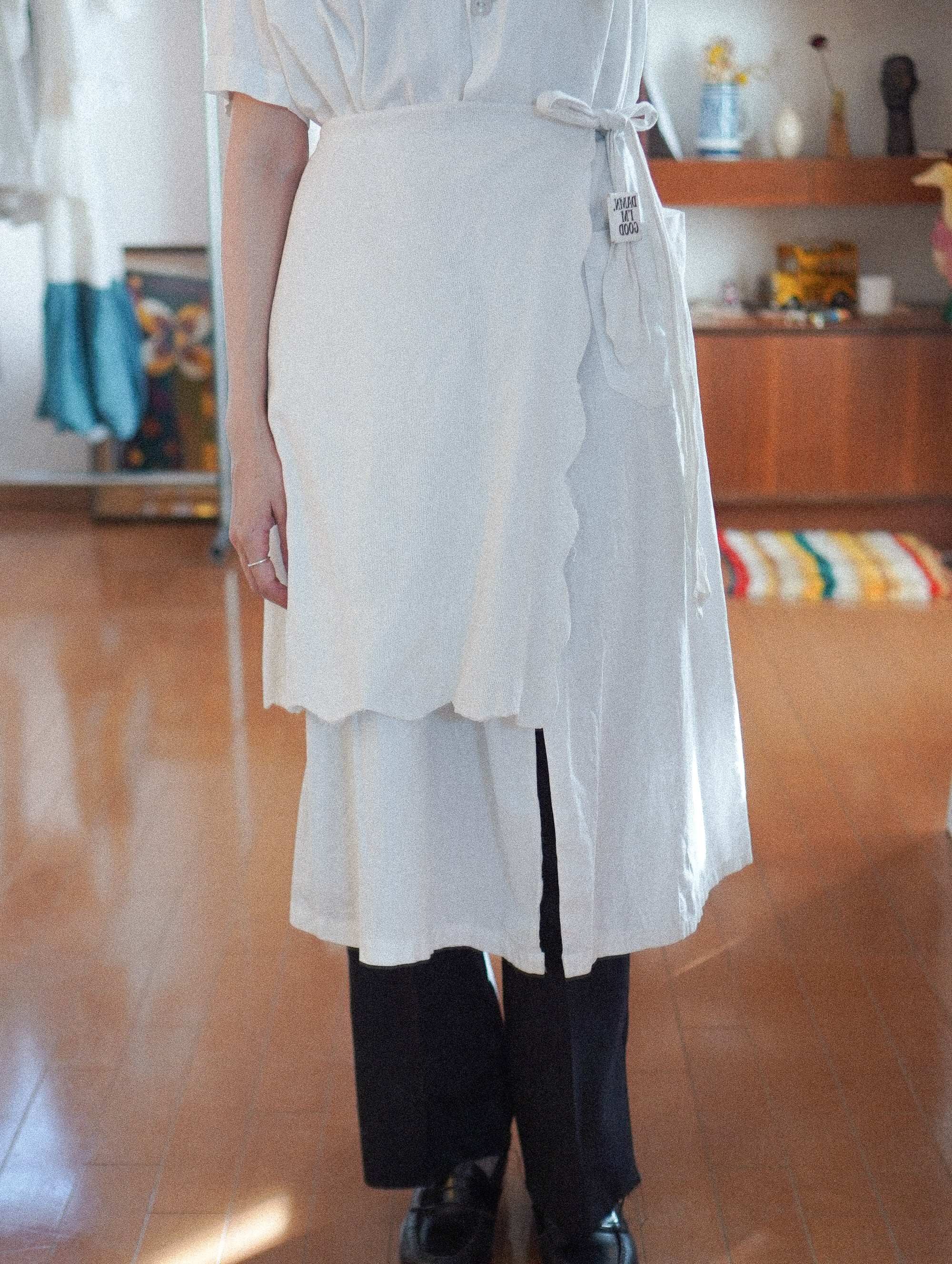 端のスカラップカットは手作業で施されたような素朴さがあり、ゆらゆらしたラインがコーデにやわらかさをプラスしてくれます。