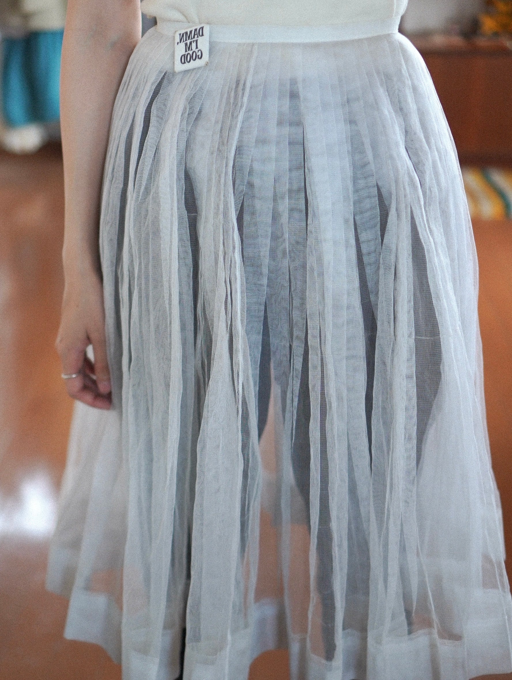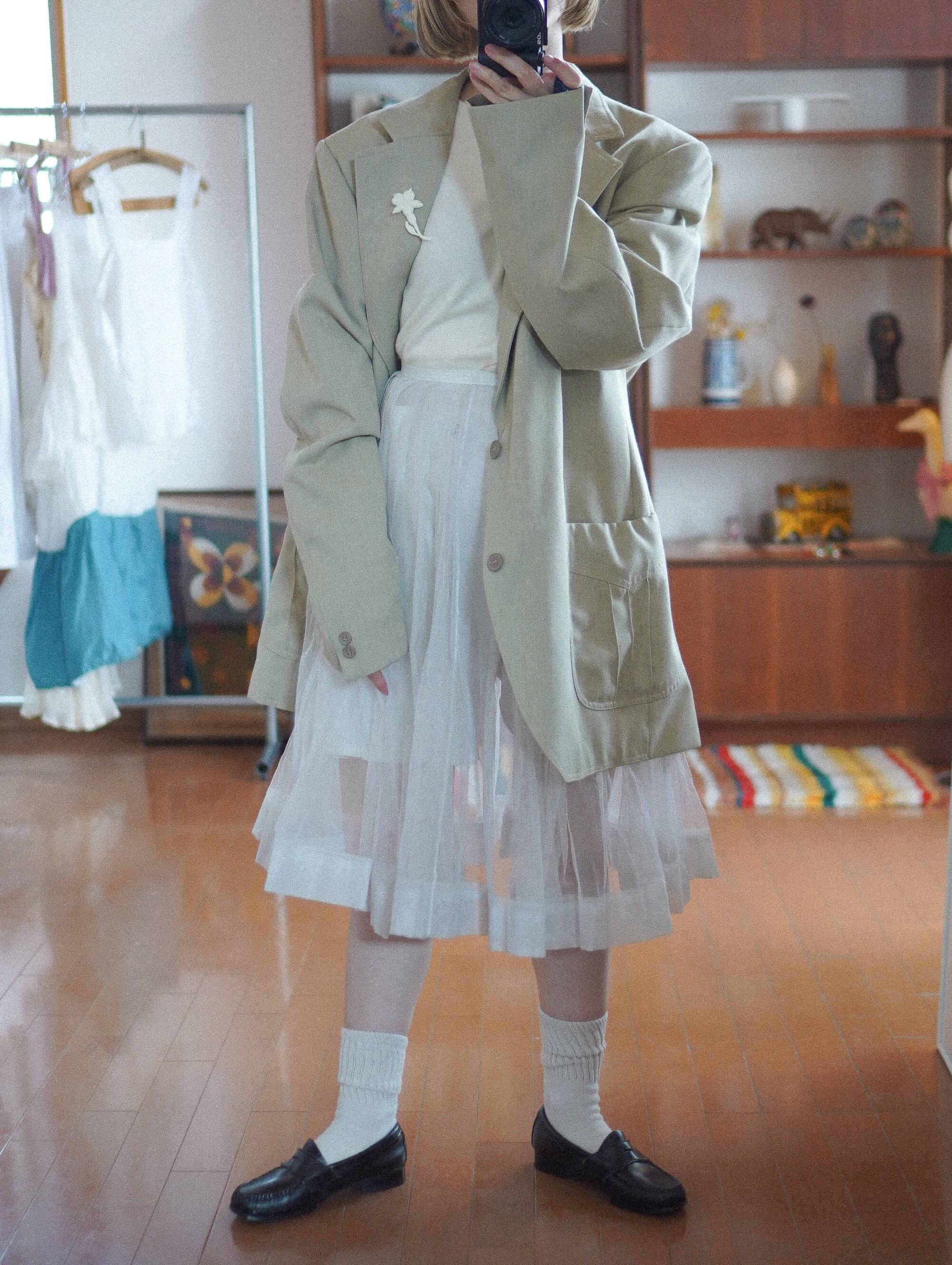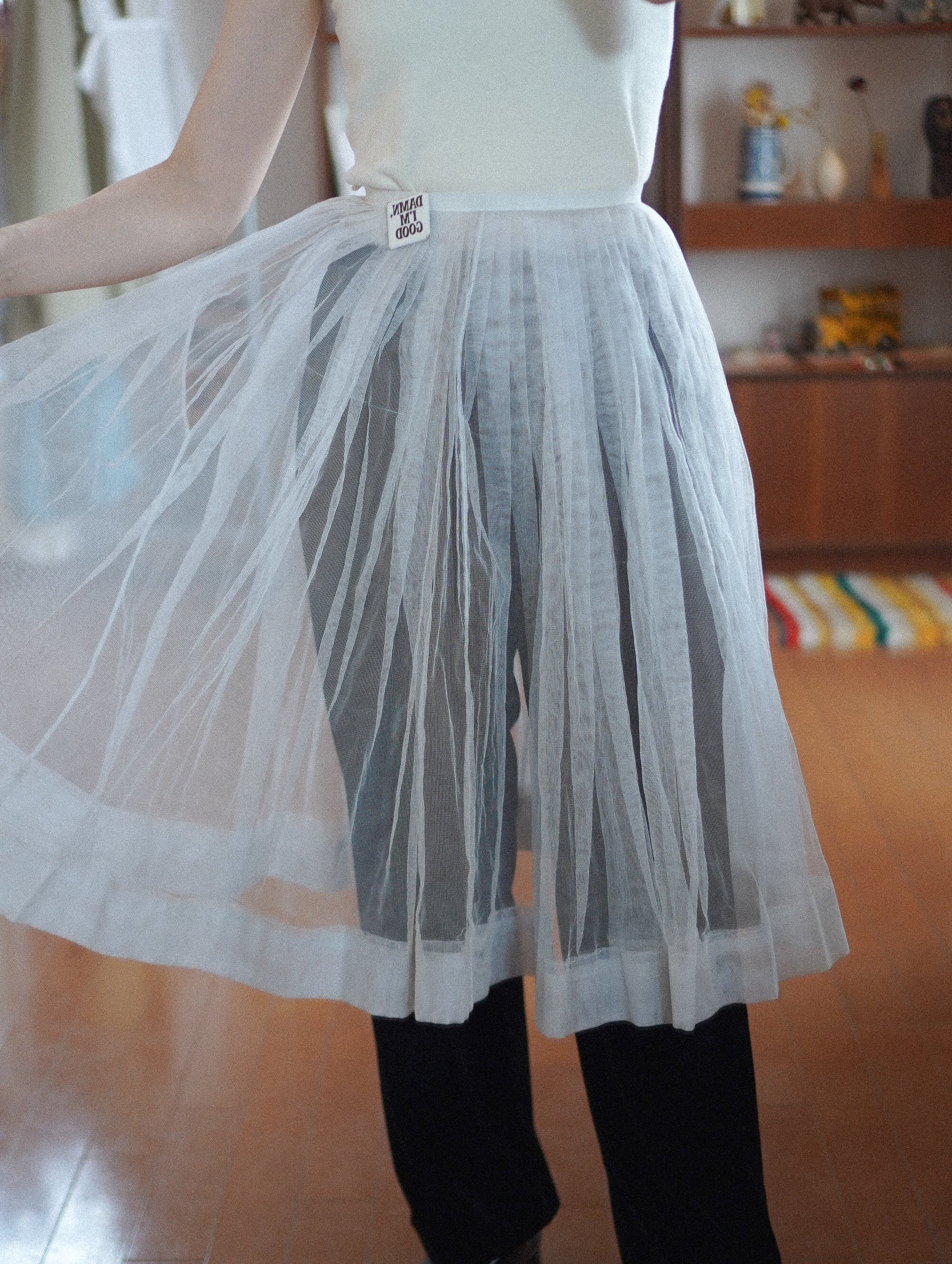 パンツやTシャツと合わせたスタイリングにも、トップスとしても楽しめます。静かな魅力を持つアンティークの一着です。/antique gauze cotton skirt
