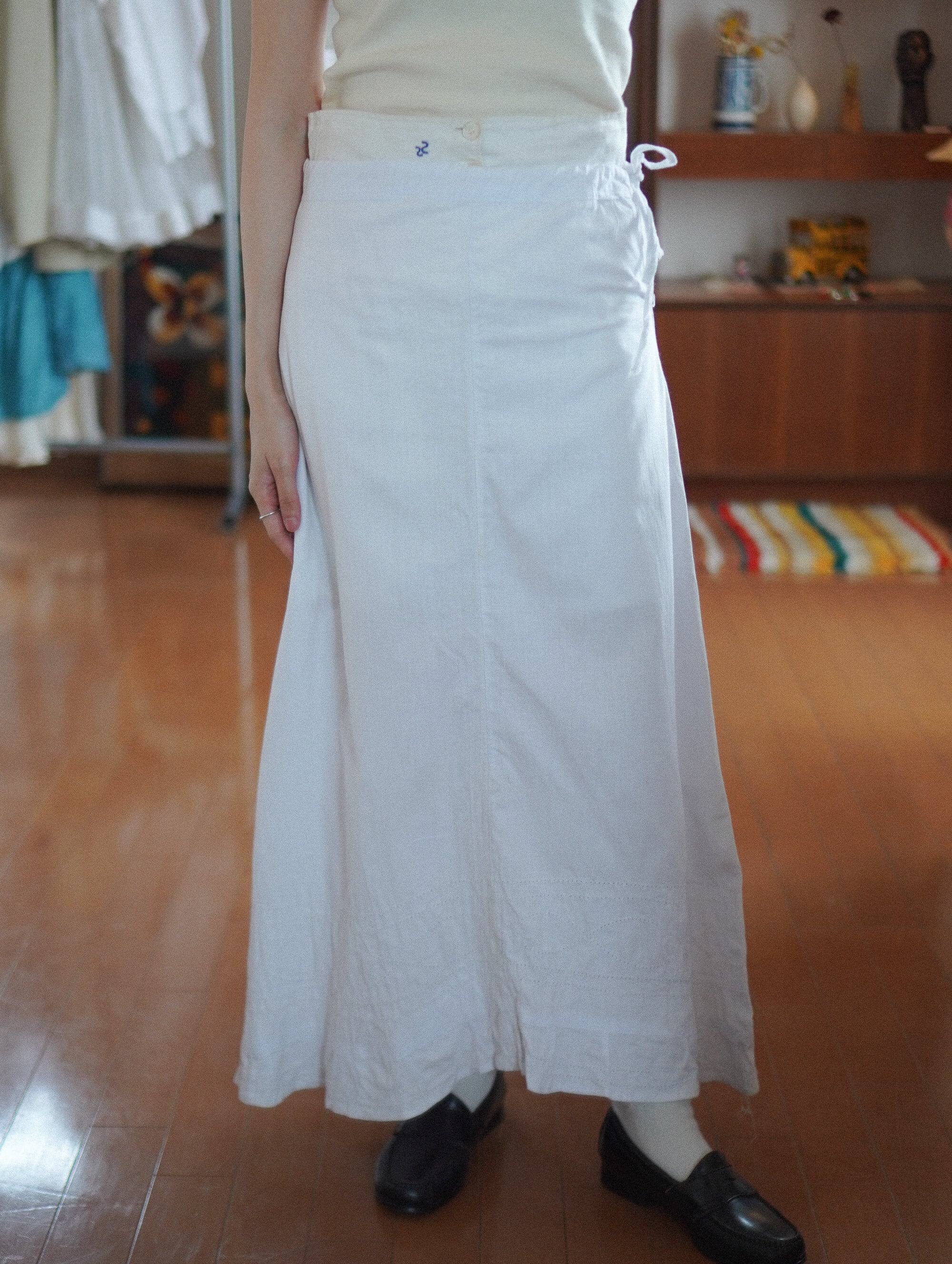 やわらかく乾いた質感が心地よい、1900年代頃のアンティークコットンスカート。