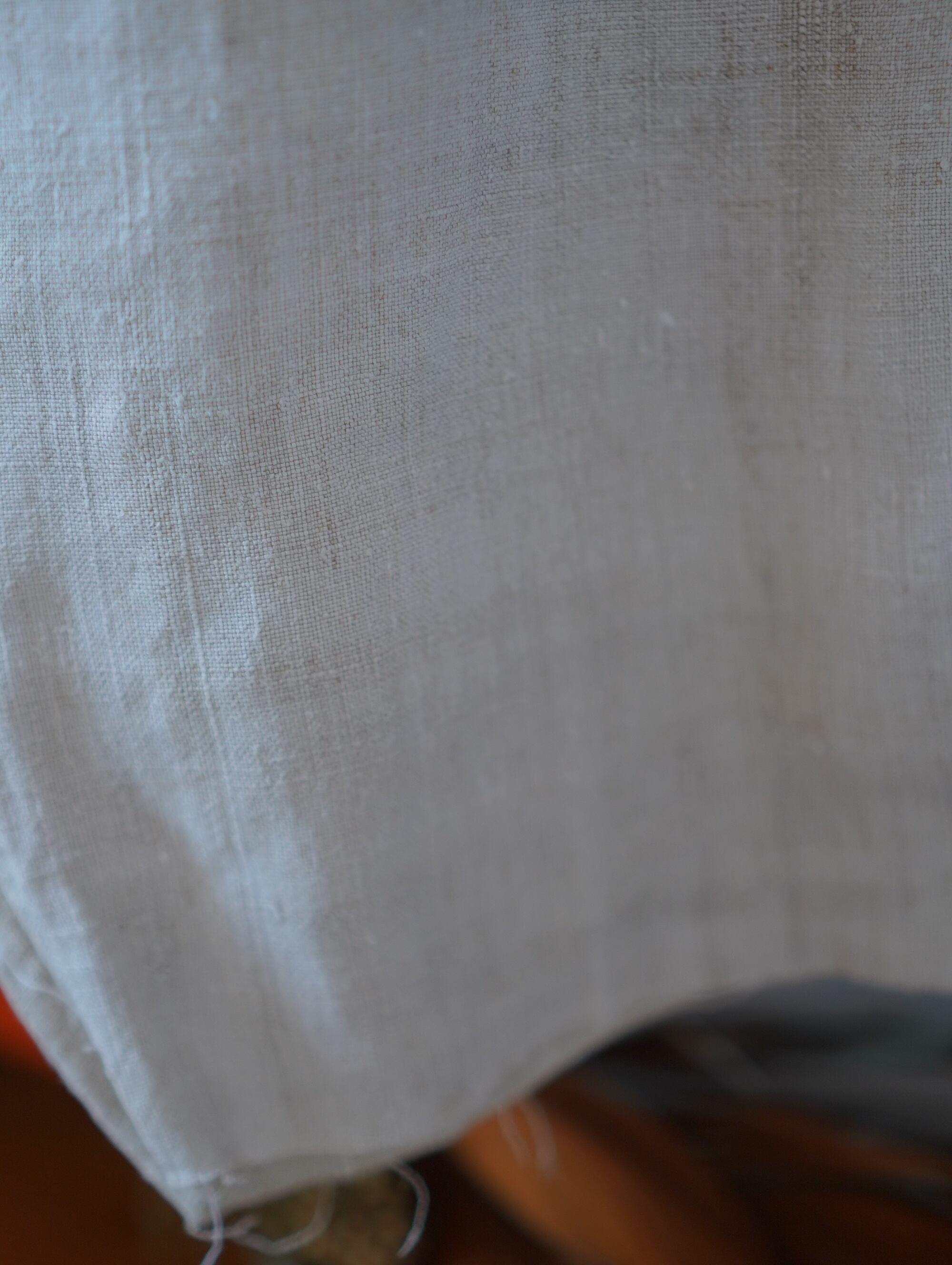 手織りリネンならではの、ざらっとした質感と自然なムラ感がたまらなくキュートなアンティークパンツ。