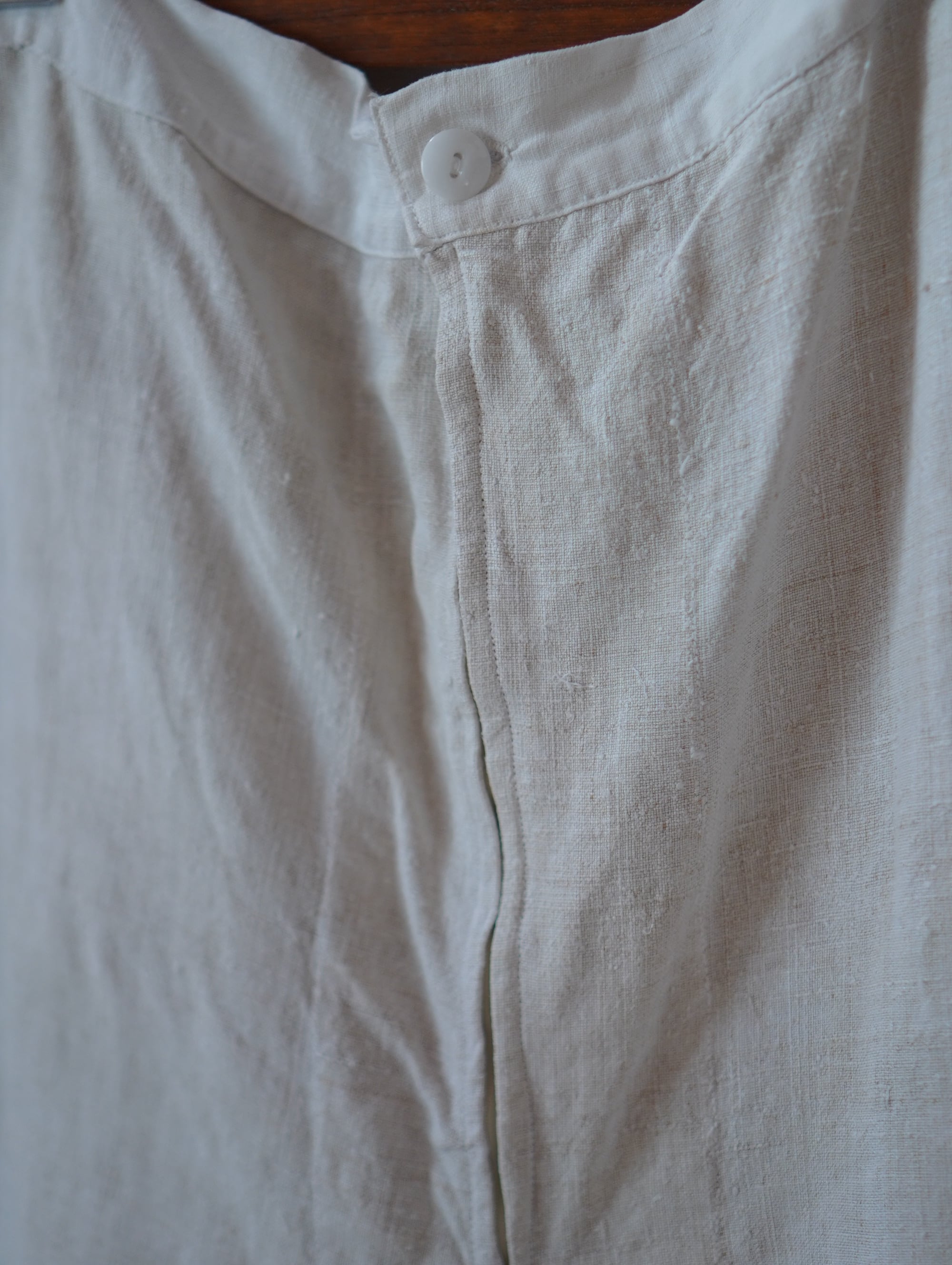 ゆるっとしたシルエットで、手作り感がたまらなく愛おしいです。/antique homespan linen remake pants