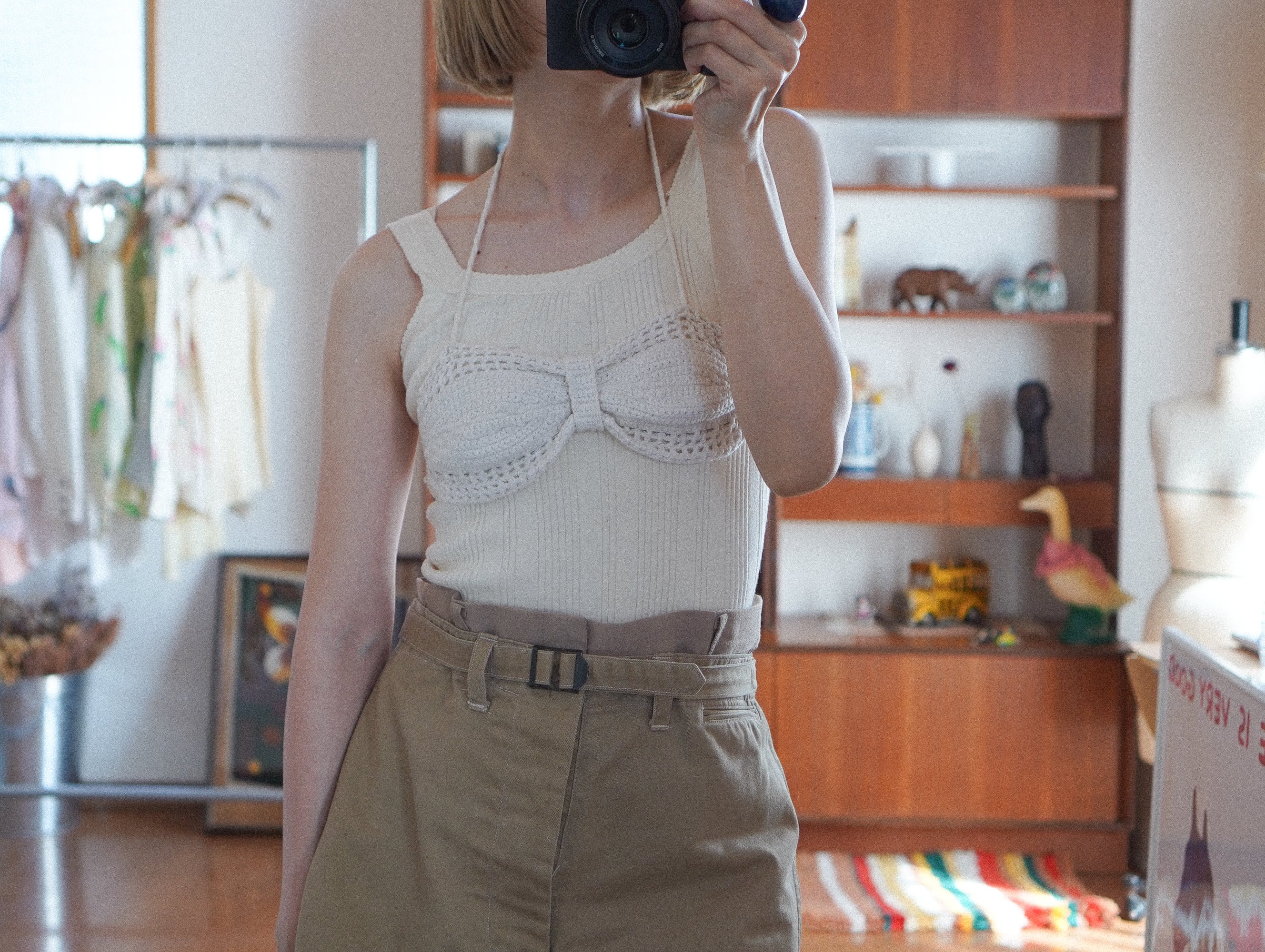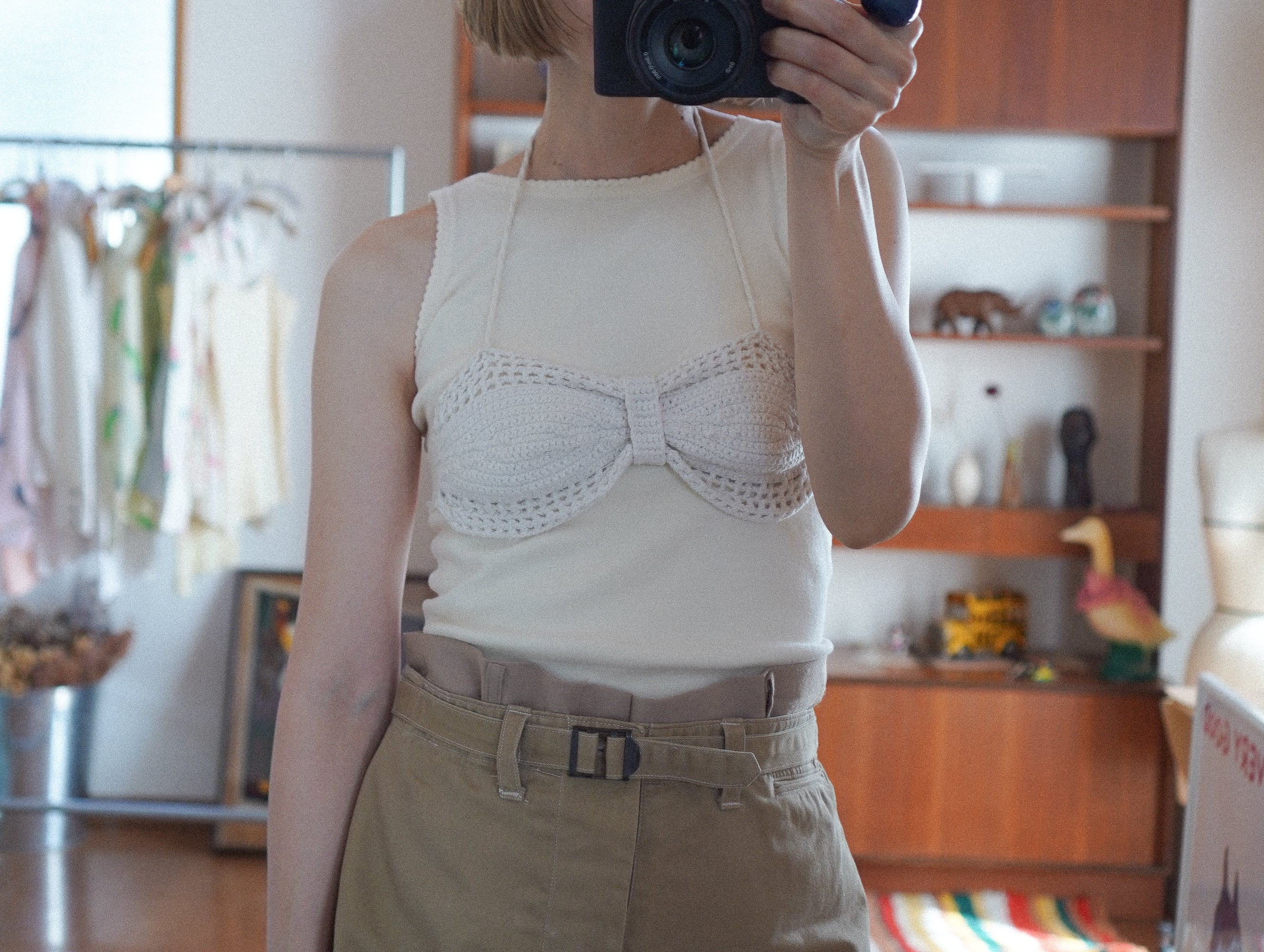 ころんと立体的なカップと、やわらかな編み地が愛おしいハンドメイドのクロシェブラトップ。